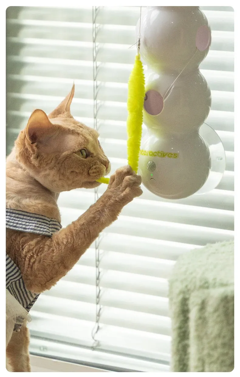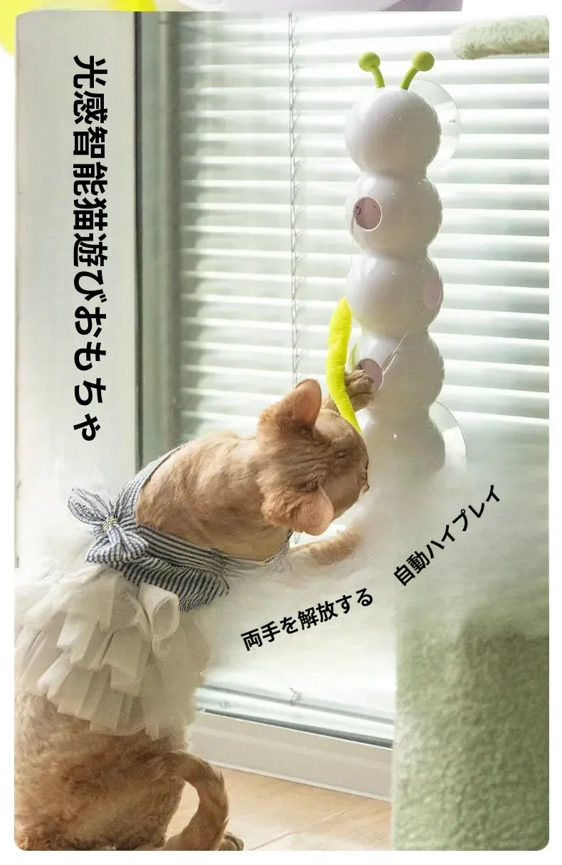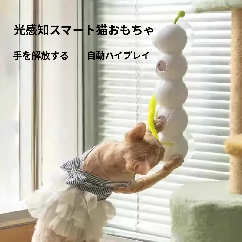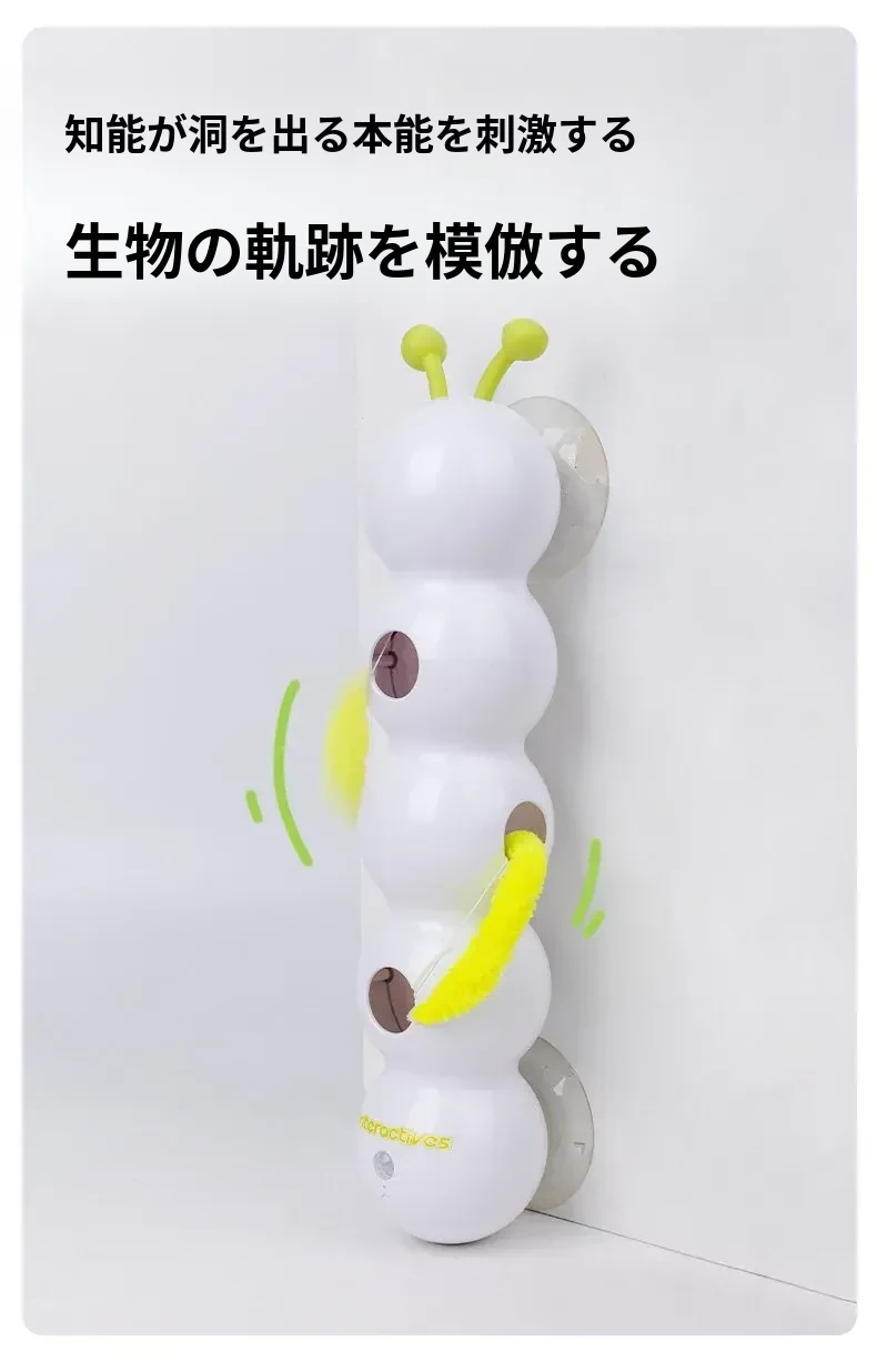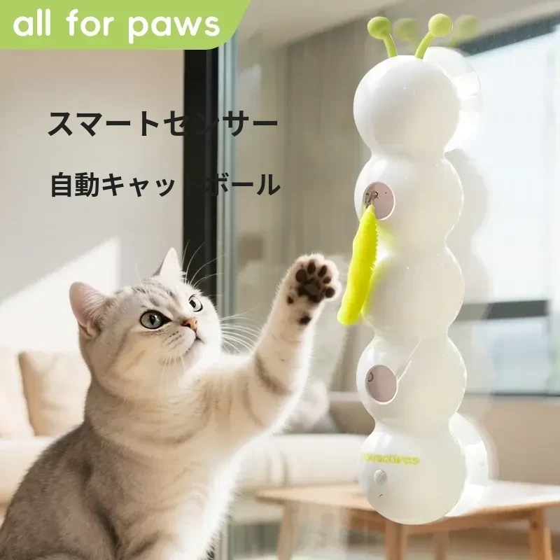 AFP電動キャットトイ 毛虫フェザー吸盤付き 自動センサー付き猫じゃらし - 猫ちゃんのハートをつかむおもちゃ!遊びながら運動不足解消、楽しいひとときを提供します!