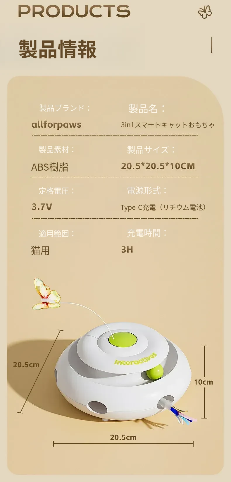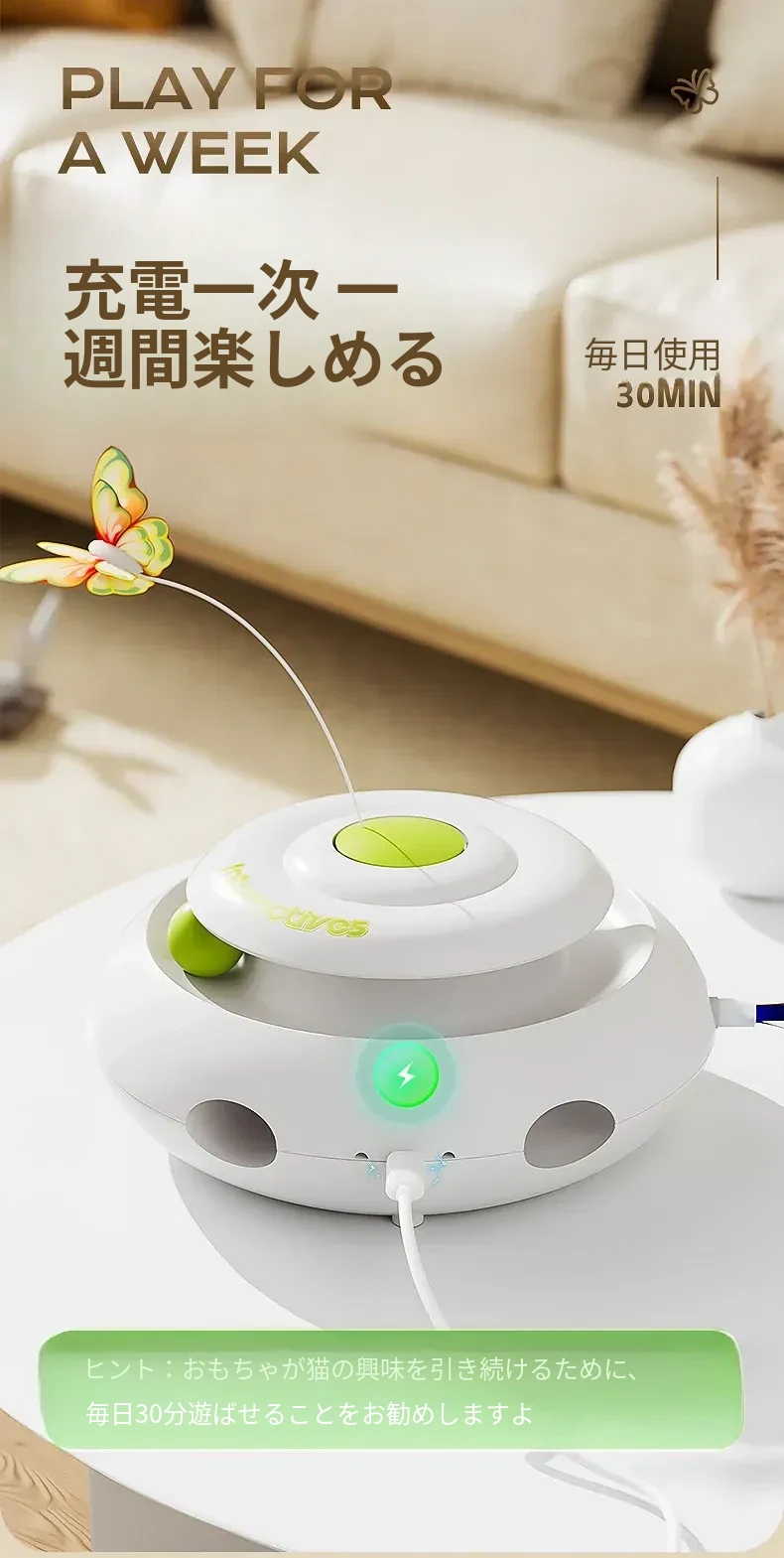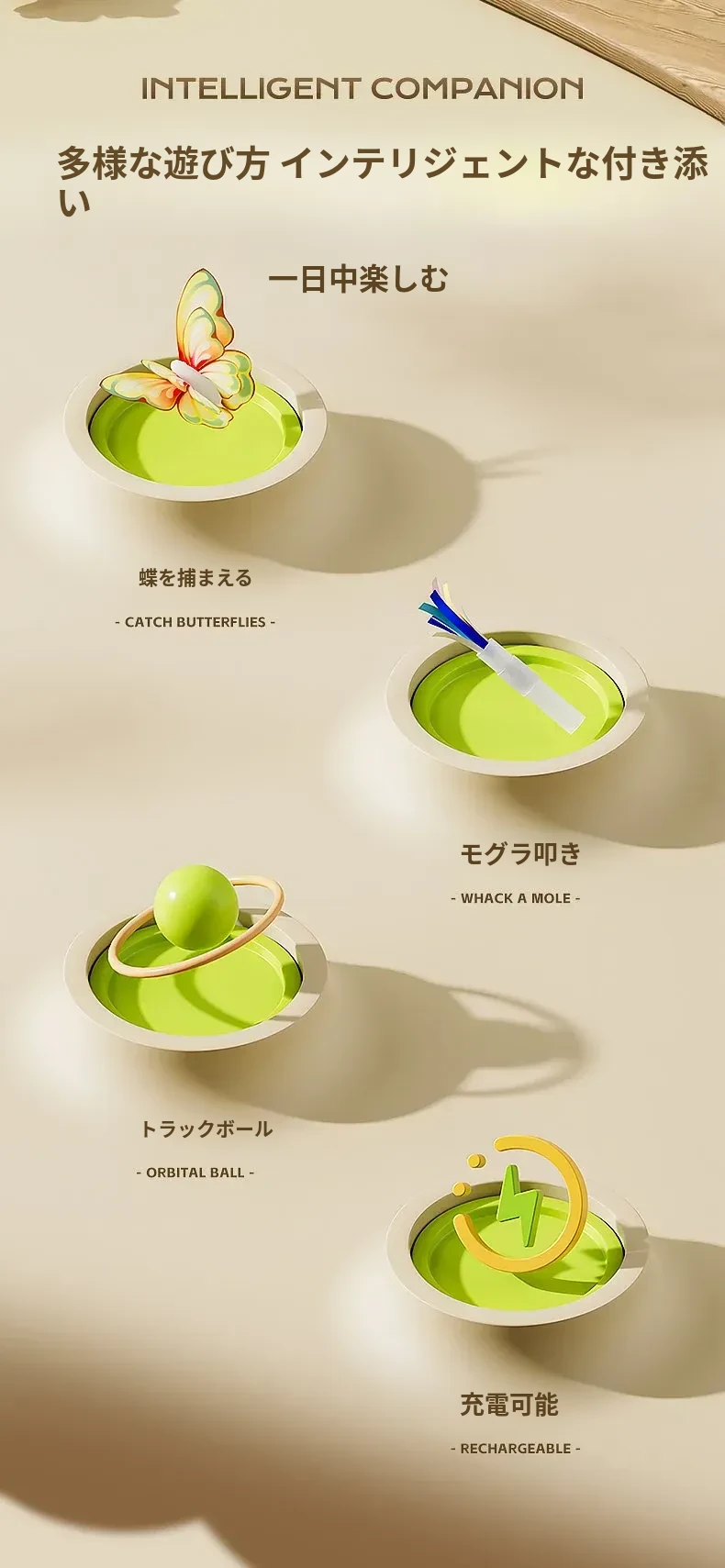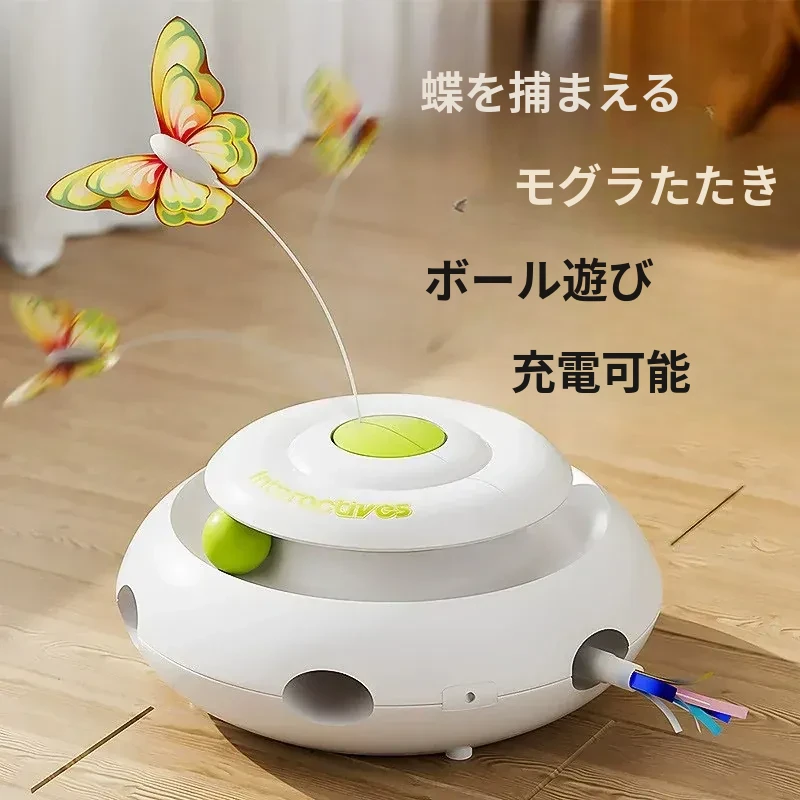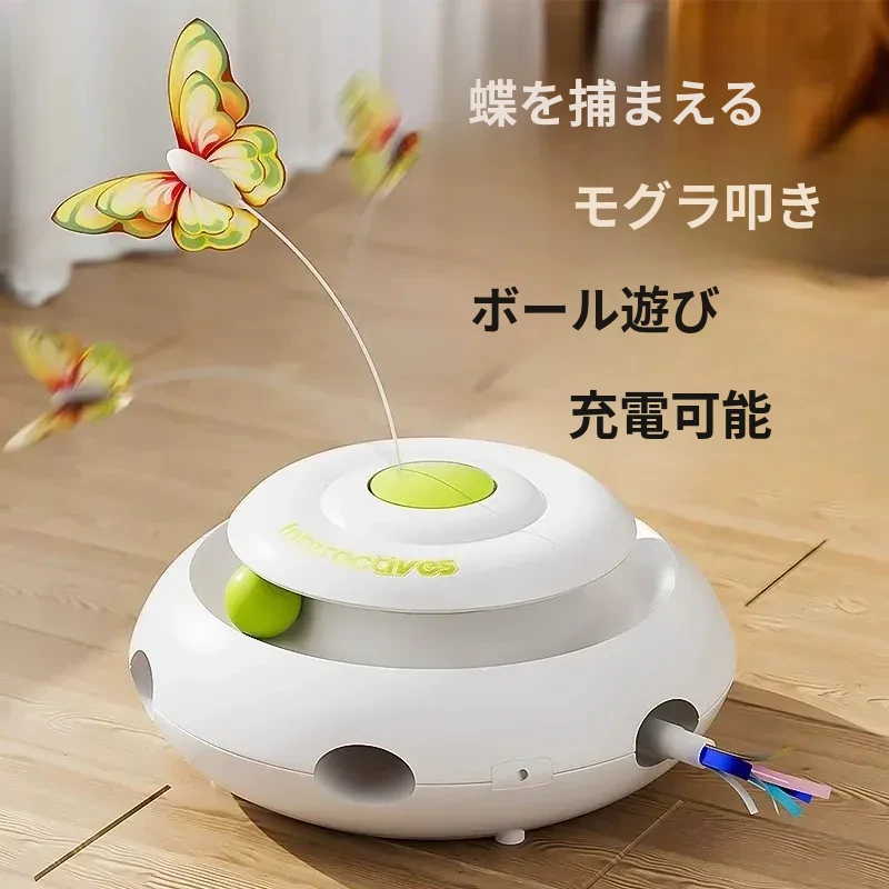 多機能充電タイプ【モグラ叩き+蝶捕り+猫回転盤+センサー起動停止+データケーブル付き】