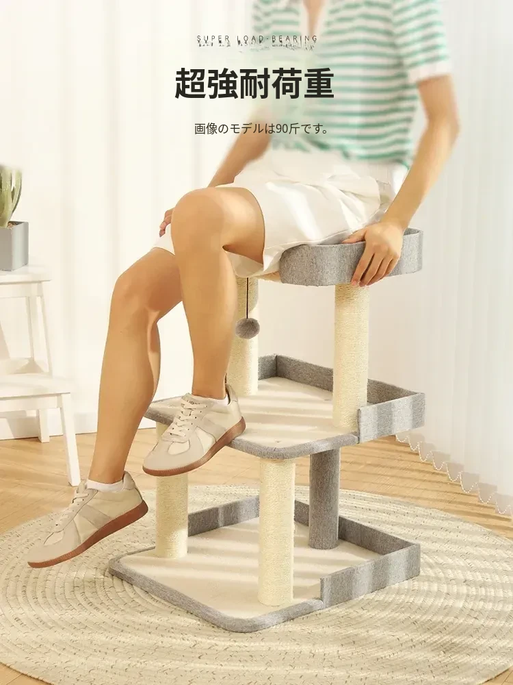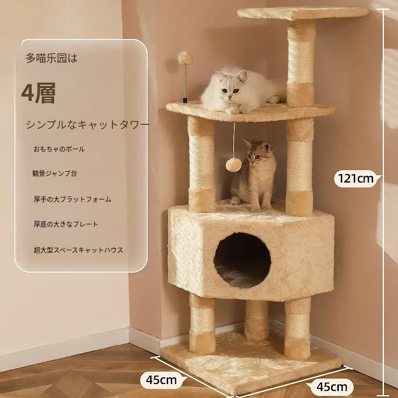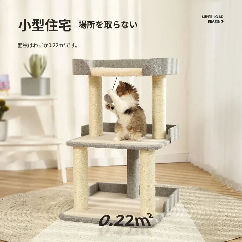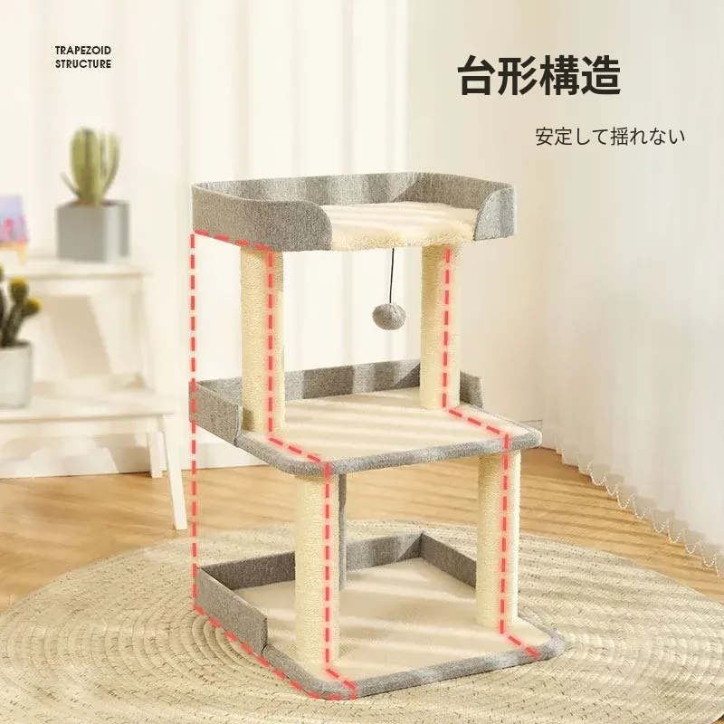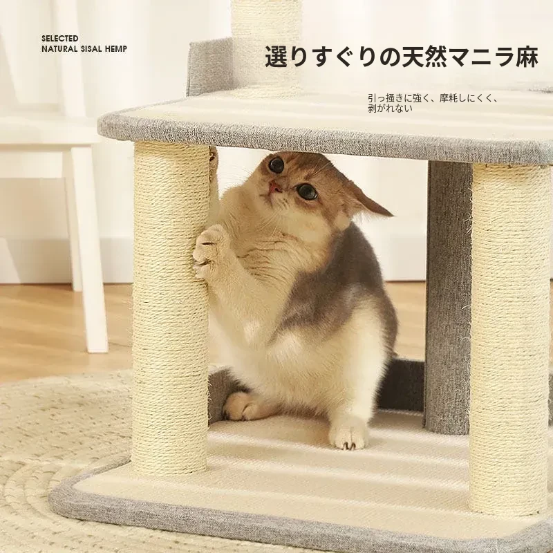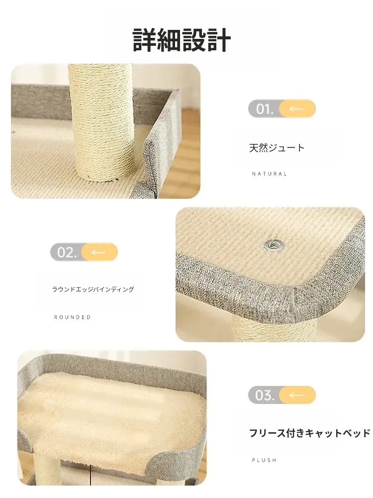 猫用多機能キャットタワー|爪とぎ・ベッド・ハンモックが一体化!四季を通じて快適に使えるコンパクト設計で、小スペースでも大満足のキャットハウス!猫ちゃんの運動不足解消に最適です!