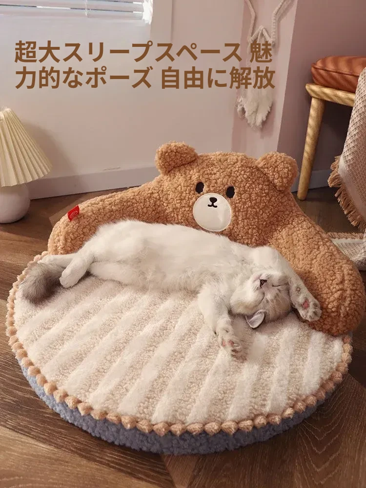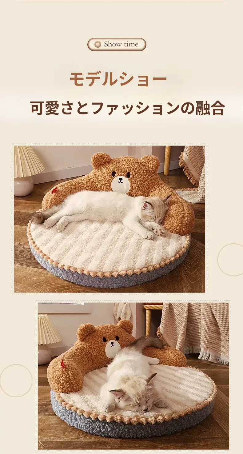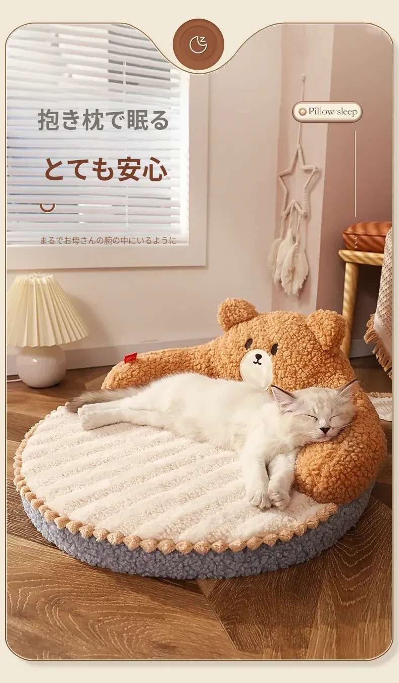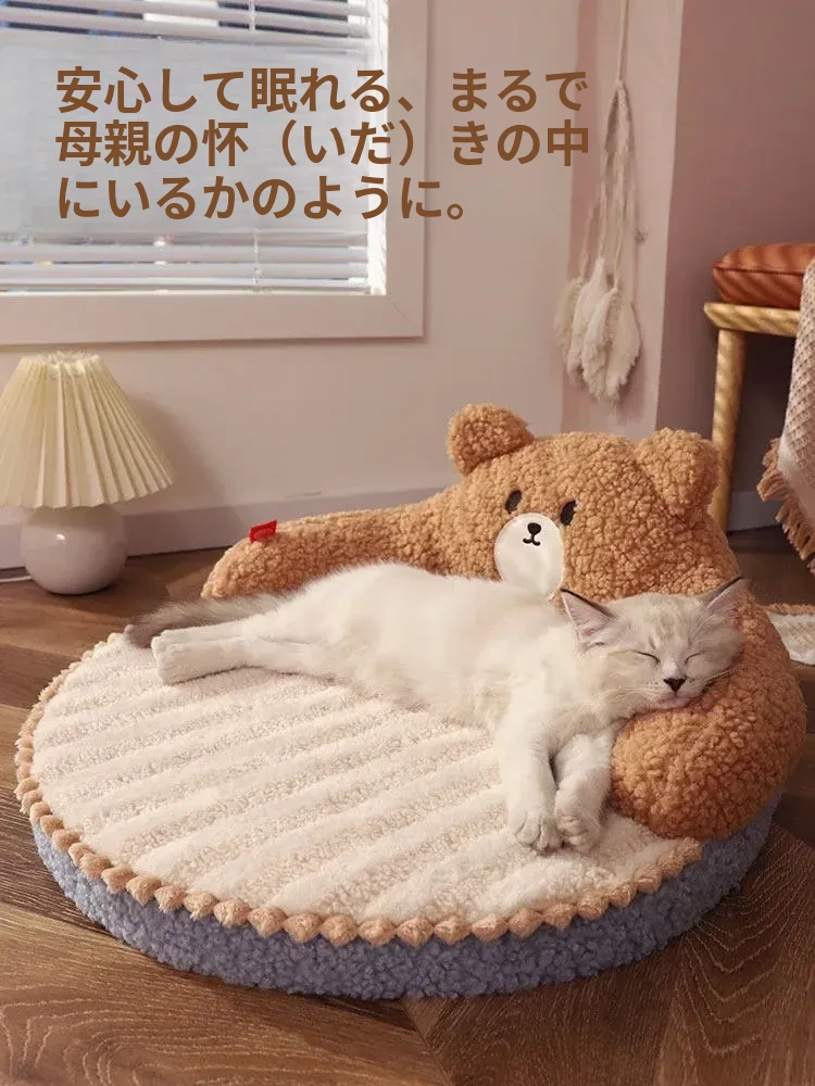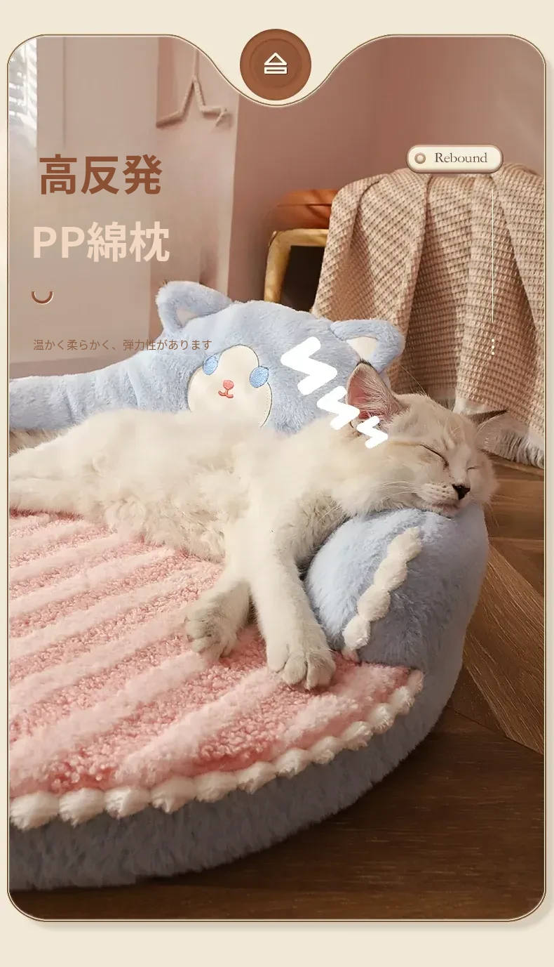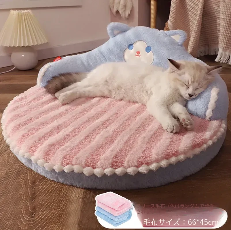 四季使える猫用ベッド - 幼猫のための暖かい冬の寝具、取り外し可能な洗濯可能なマット、ペットの快適さを追求した冬用保温猫ベッド!