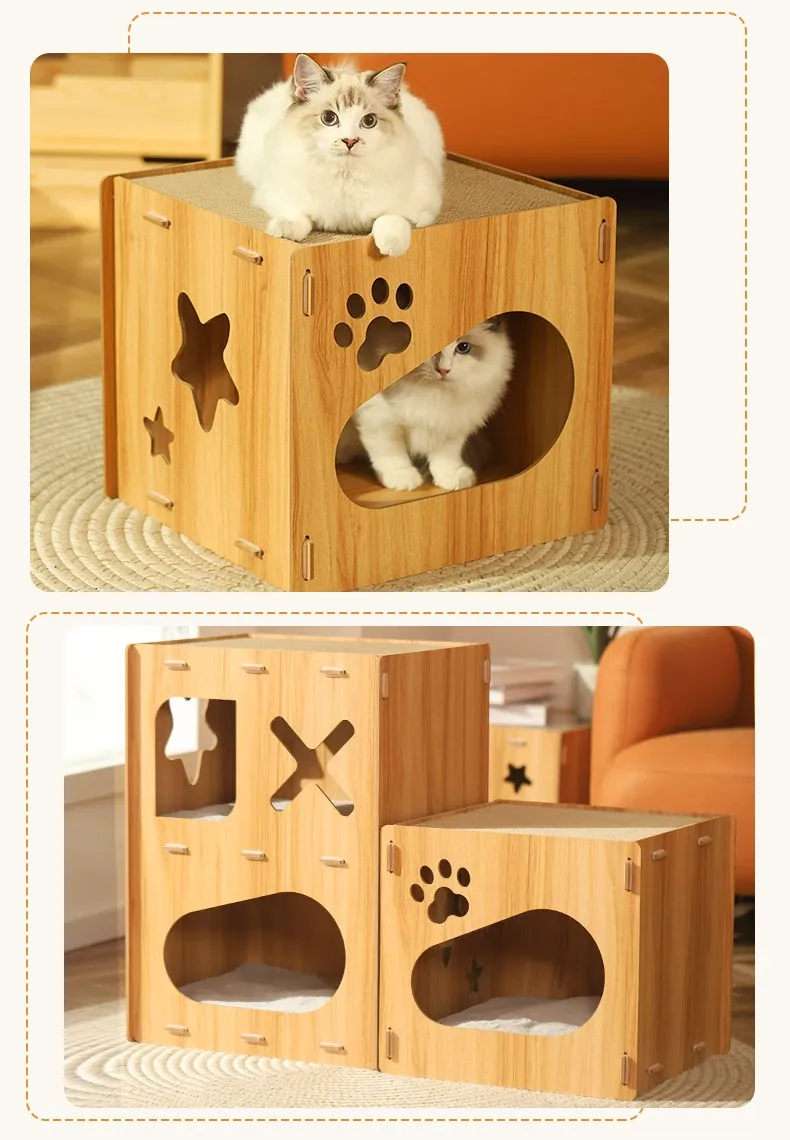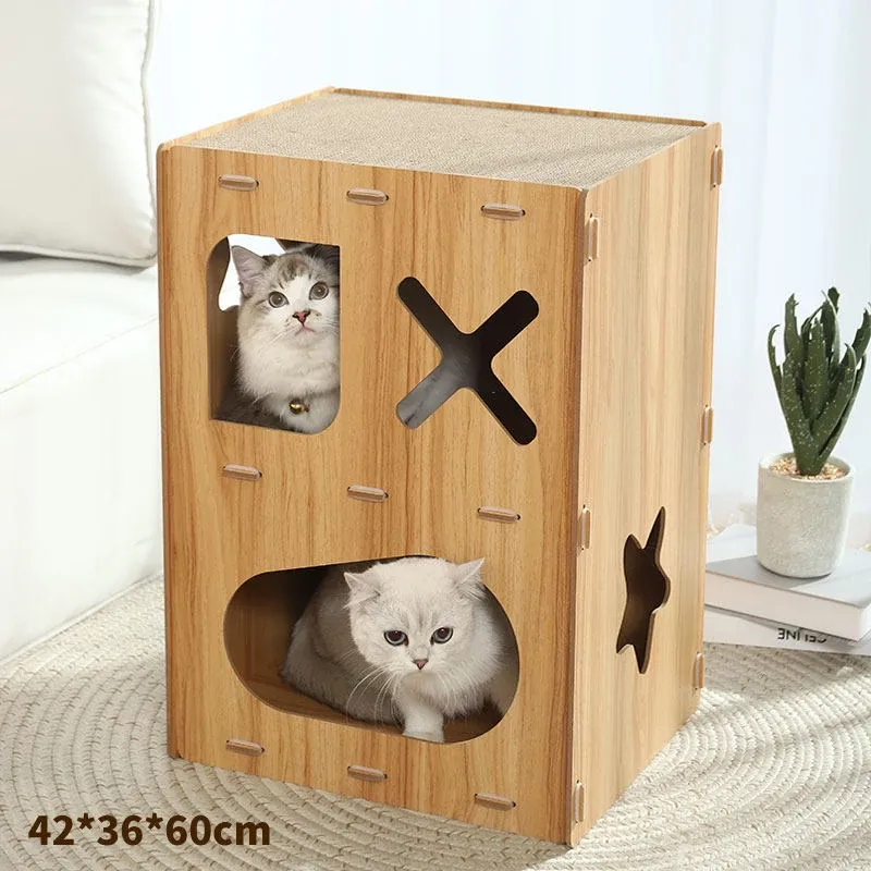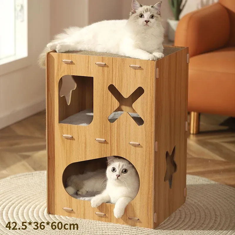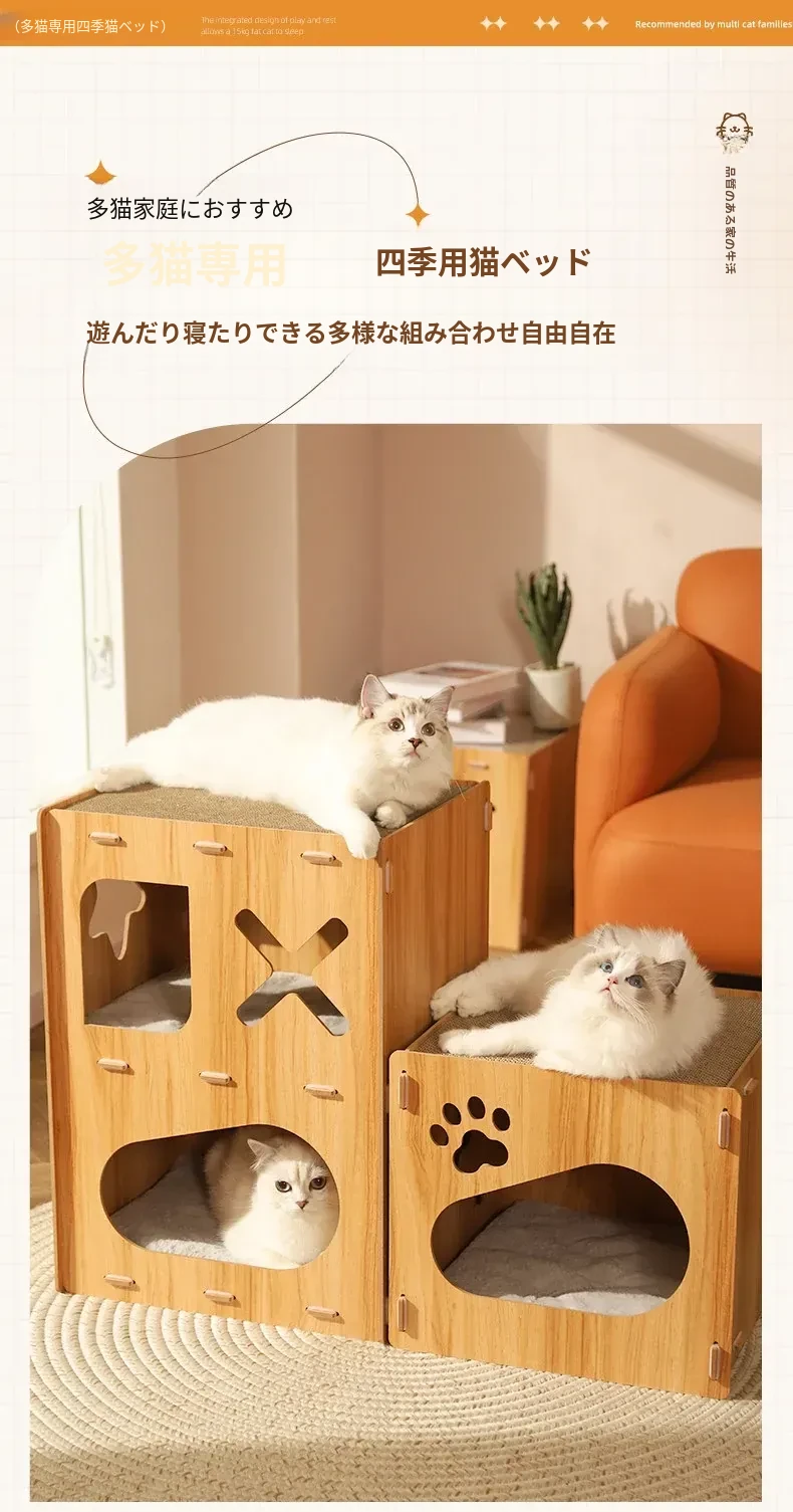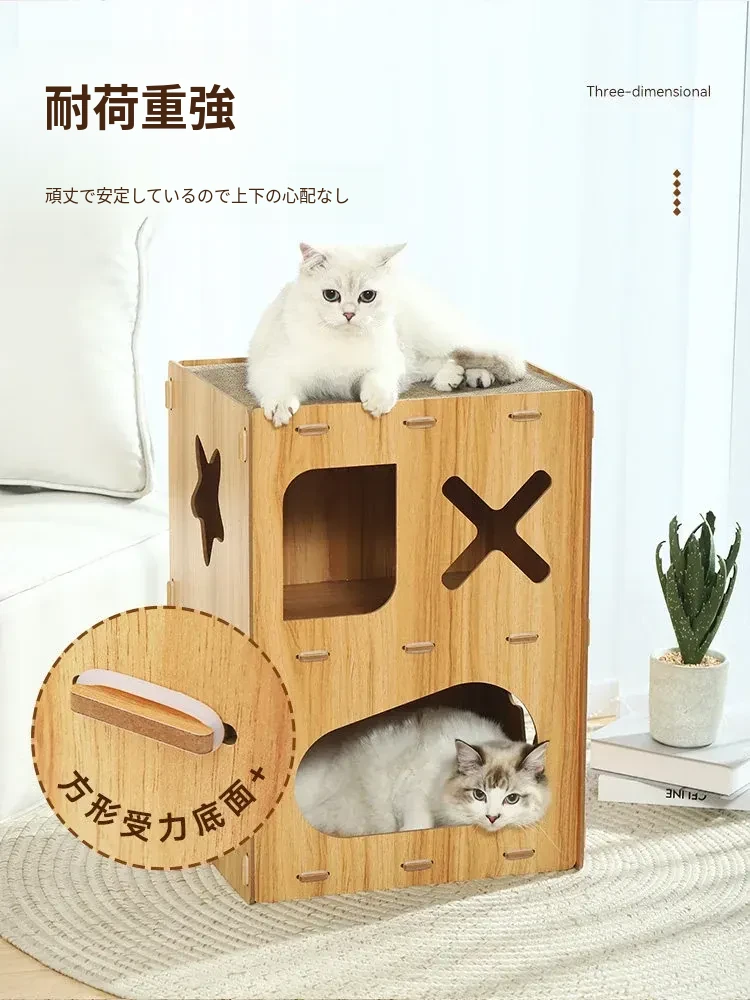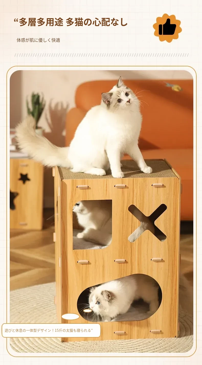 魔方ダブルレイヤー四季猫ハウス-猫爪研ぎ付き