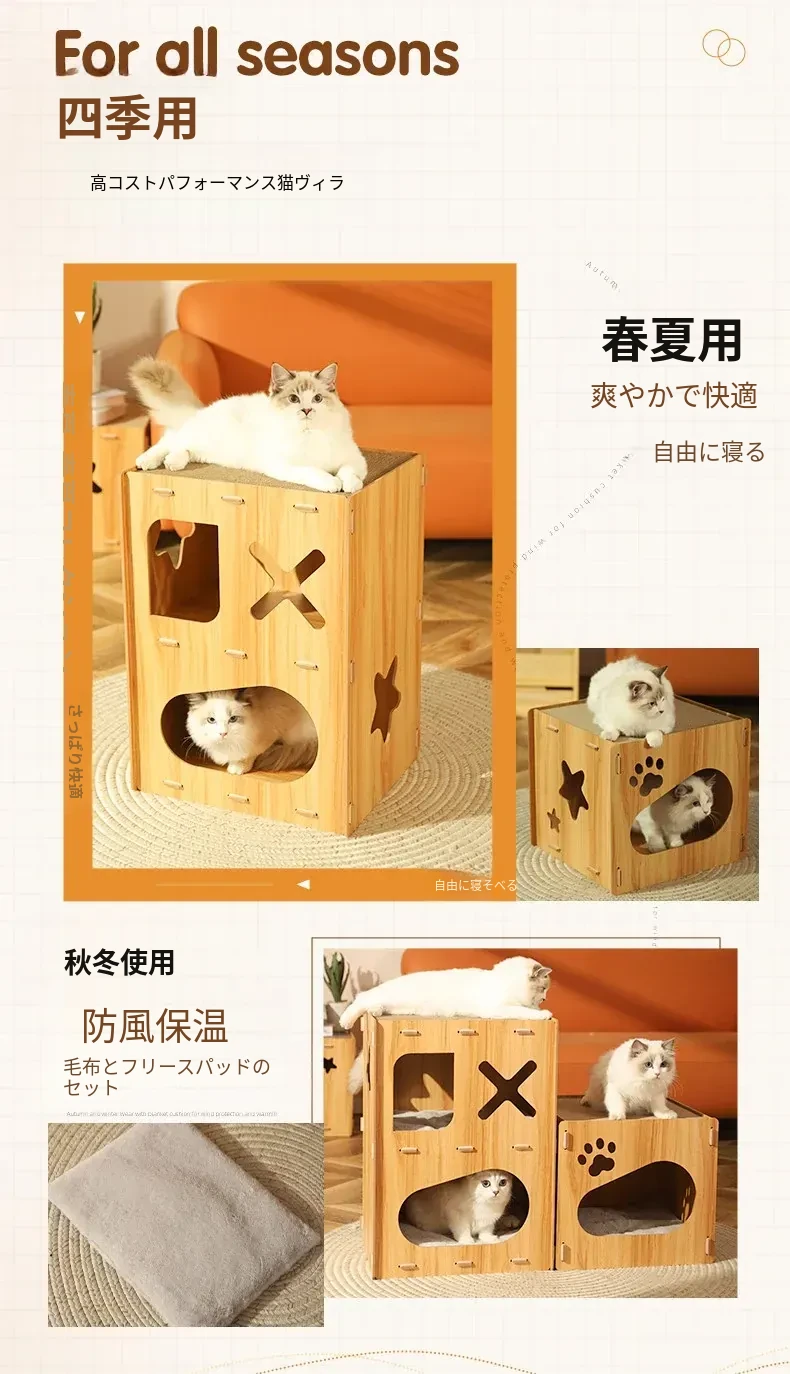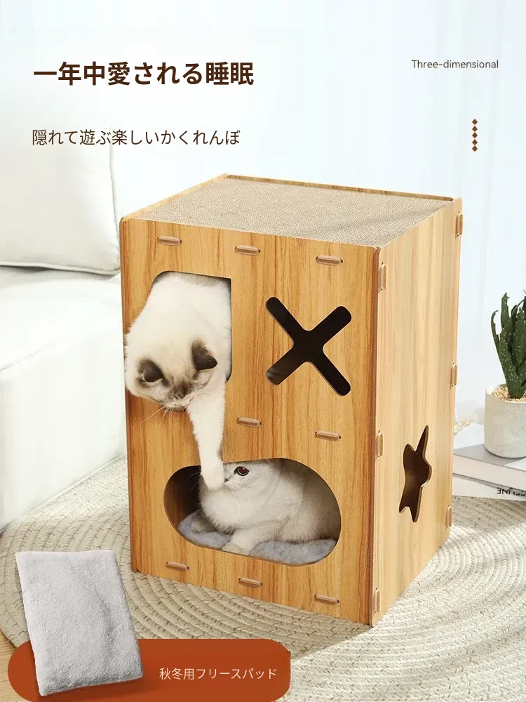 寝ることも爪を研ぐこともできる-四季用猫ハウス(在庫あり即発送)