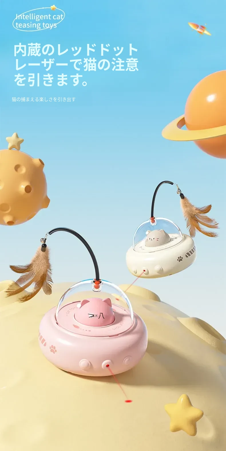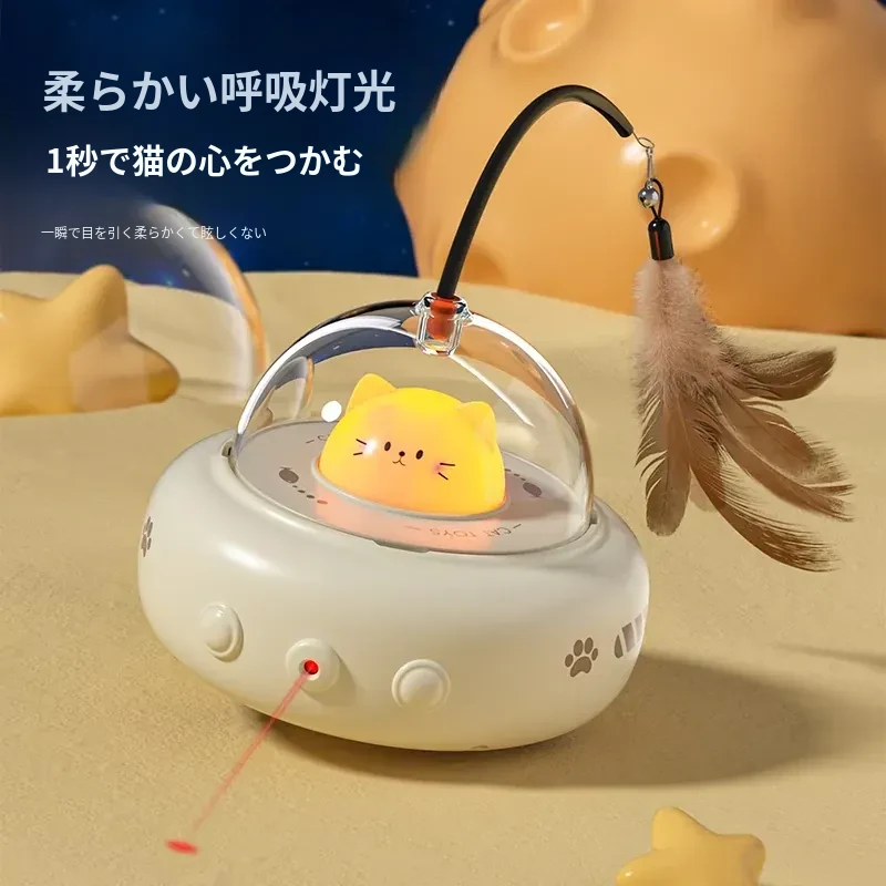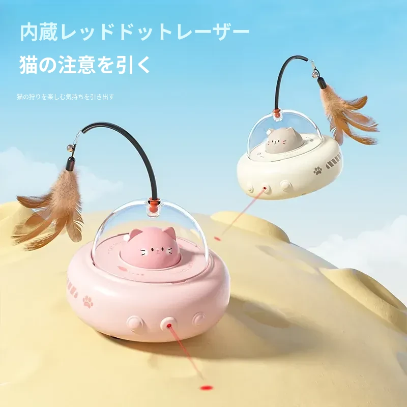自動猫じゃらし電動おもちゃ!猫ちゃんも夢中になる羽根付きレーザーポインターで体力消耗!賢いランニングカーで遊びながら運動不足解消!