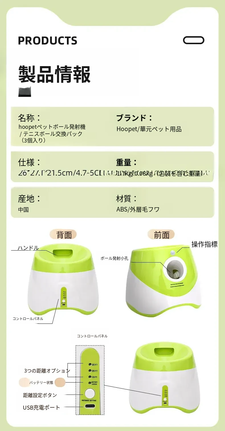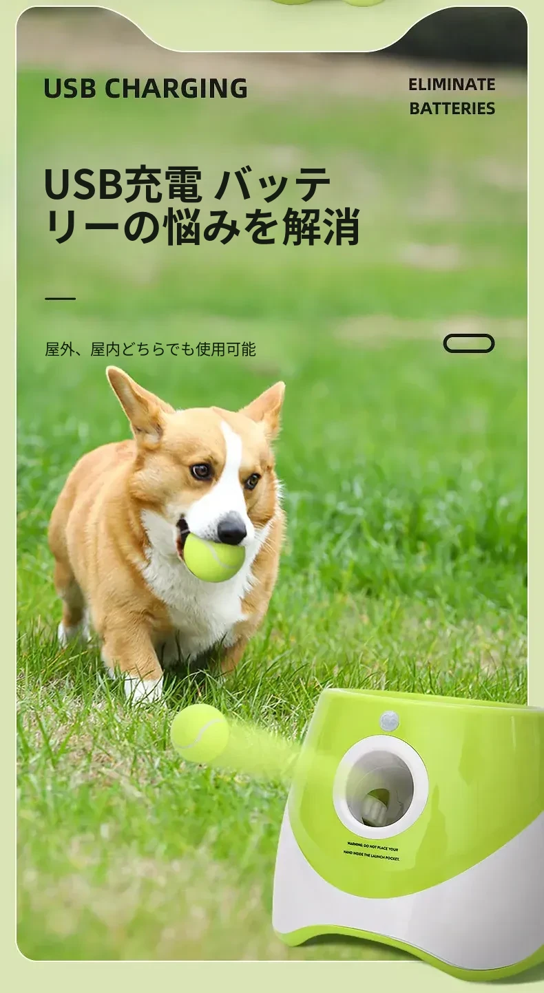 ペット用ボール発射機|愛犬が夢中になる自動ボール投げ器|耐噛性ボール付き|お散歩のお供に最適な楽しいおもちゃ!