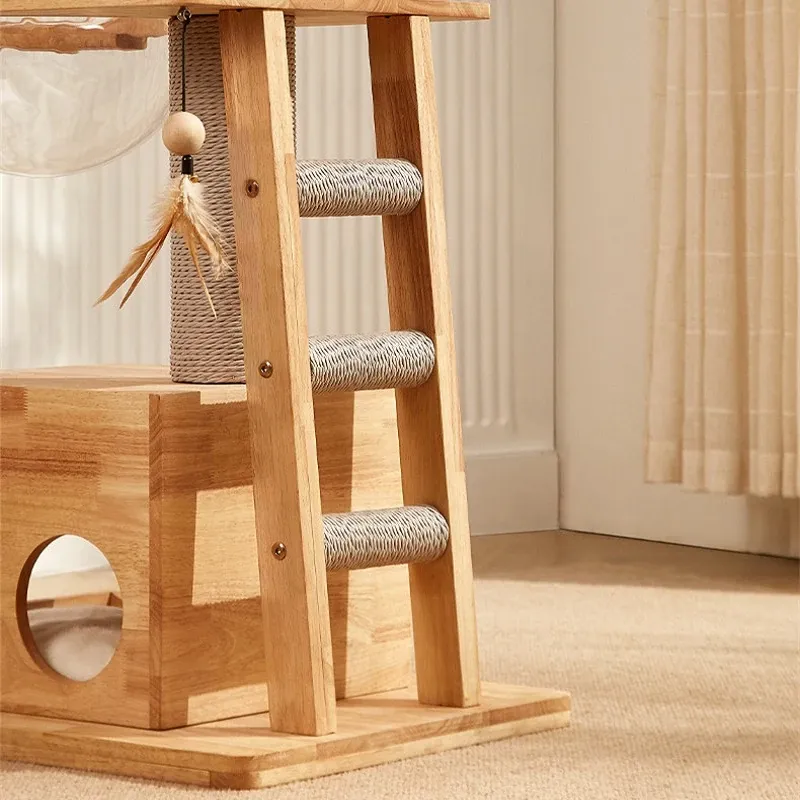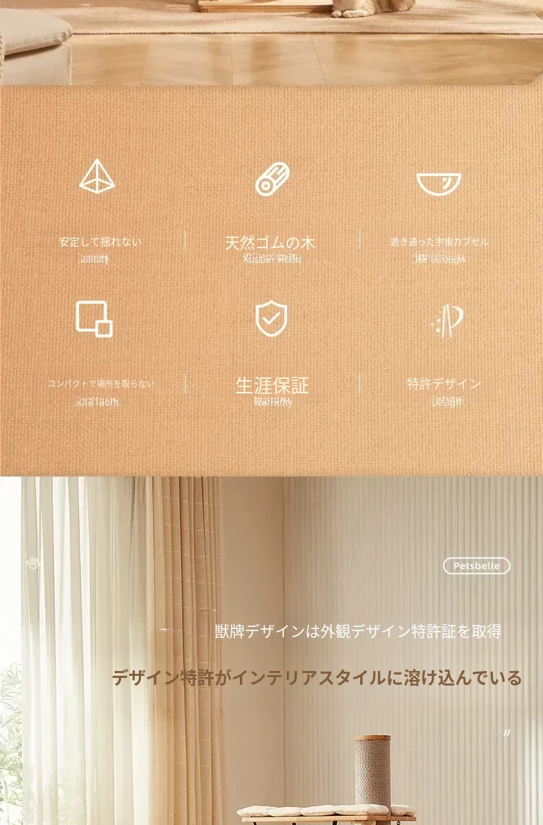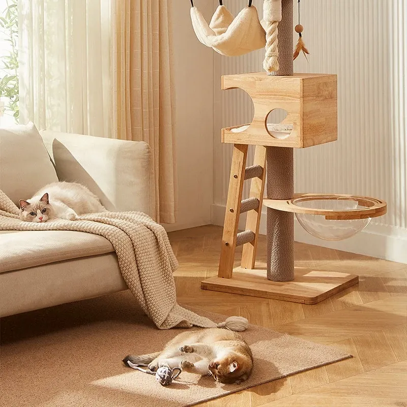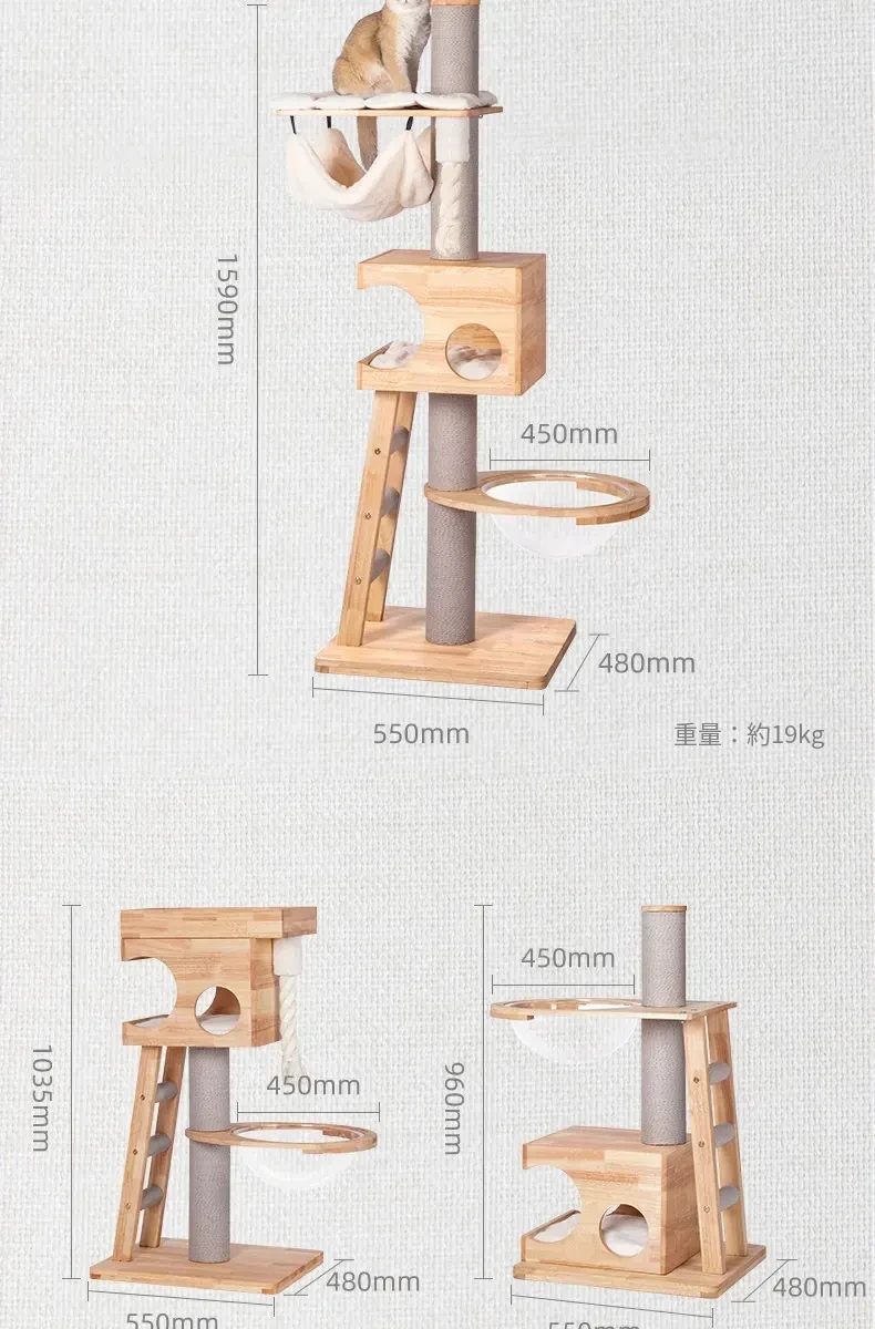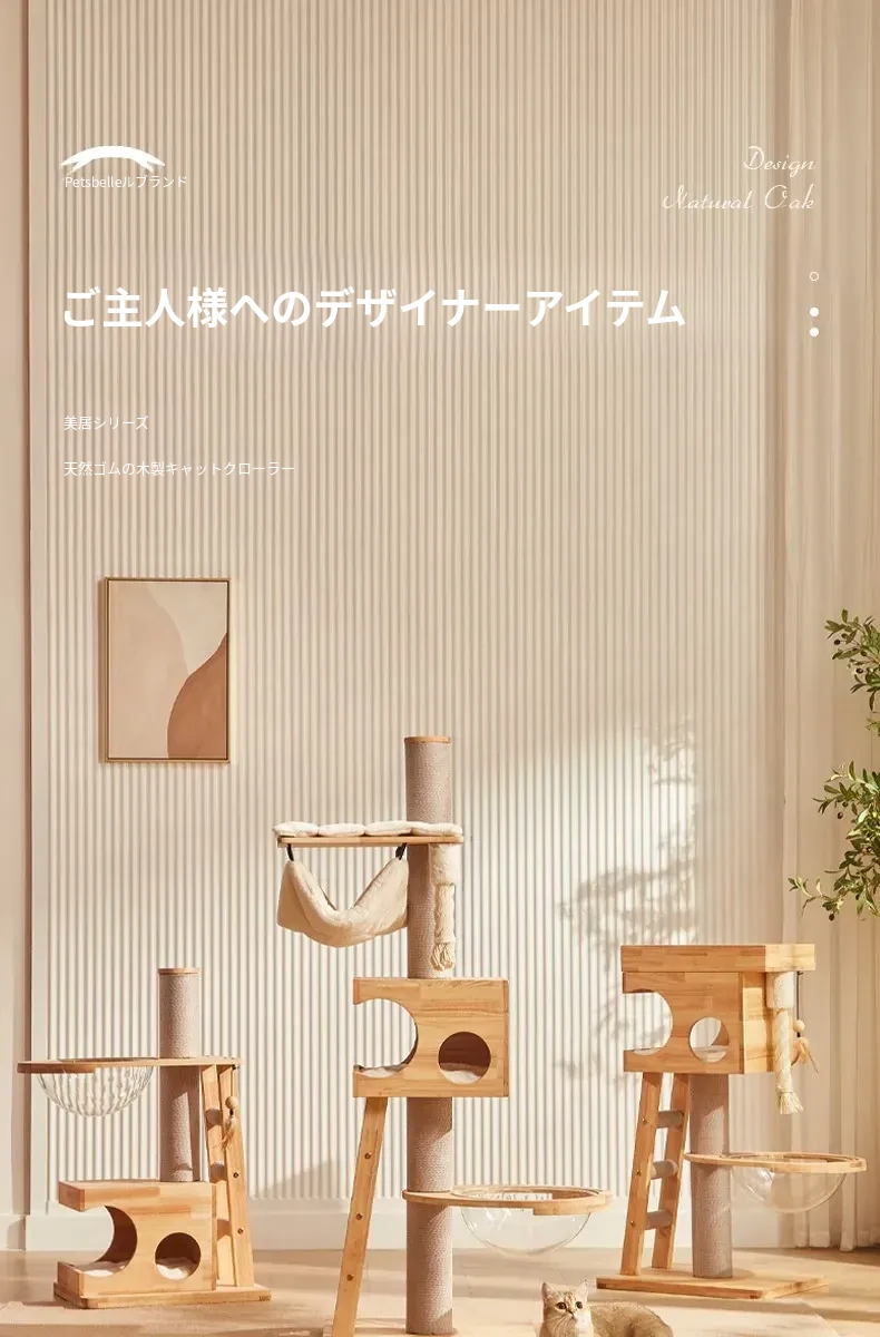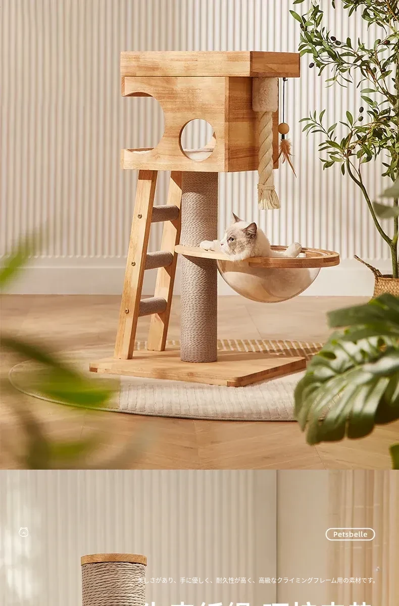 「獣牌メイジュウキャットタワー:省スペースのキャットハウス&キャットツリー一体型!おしゃれなデザインの木製キャットタワーで、愛猫の遊び場とくつろぎスペースを提供します。小型猫にぴったりのキャットクローラー付き!」