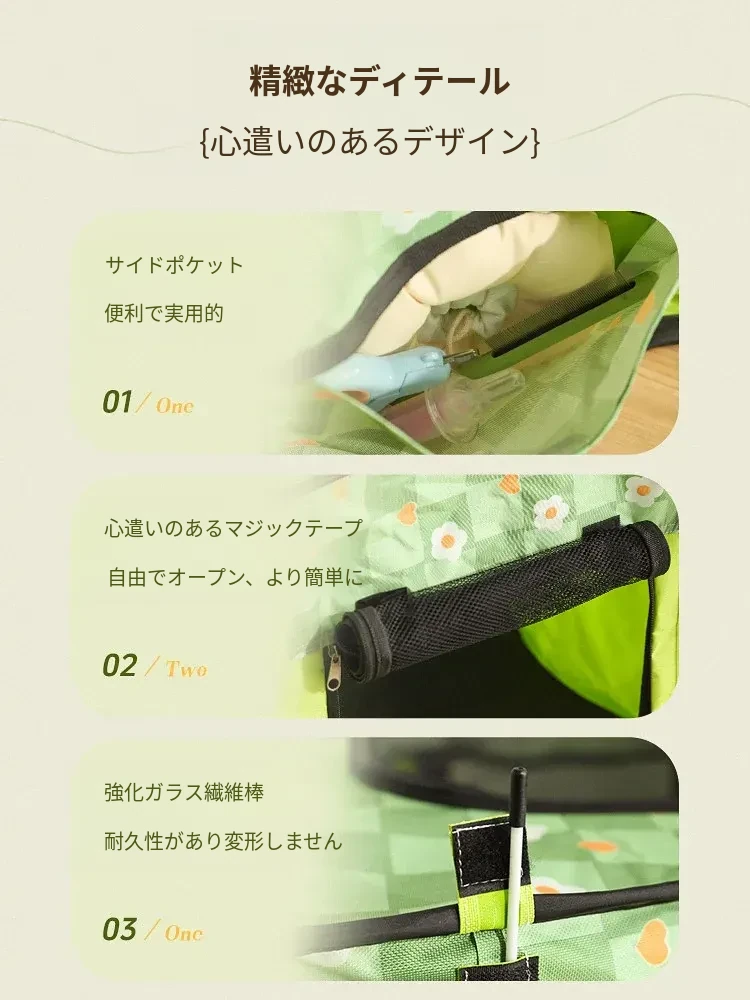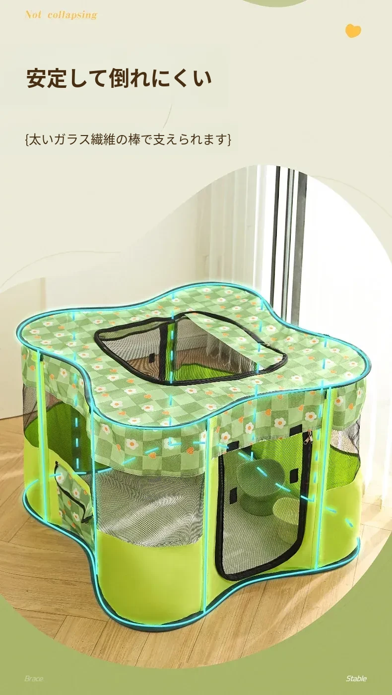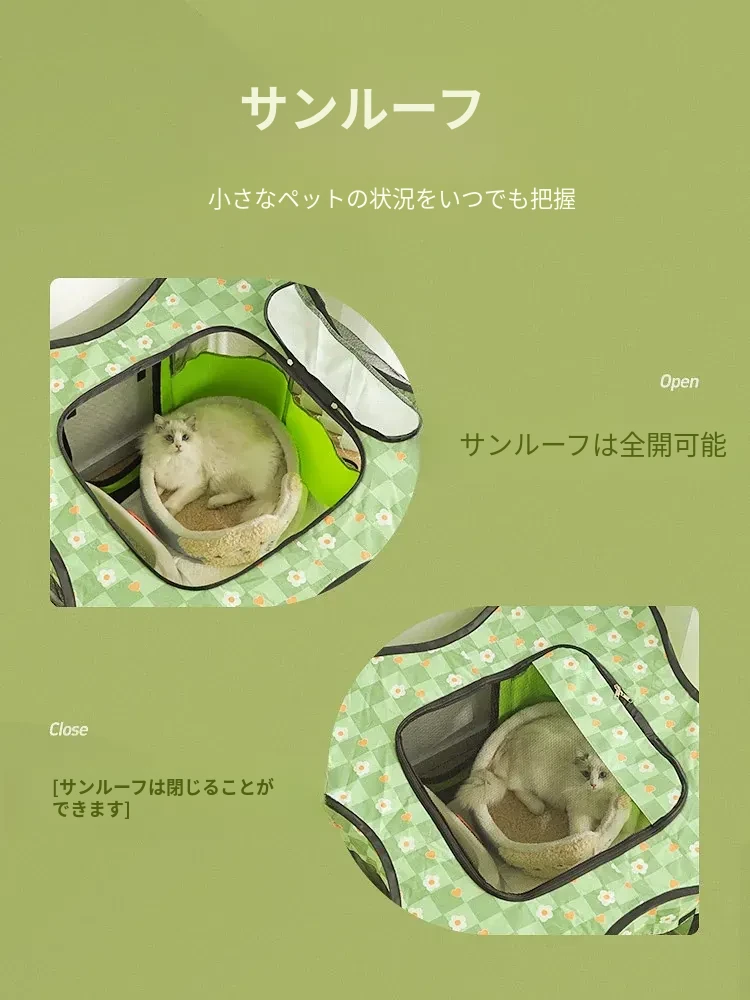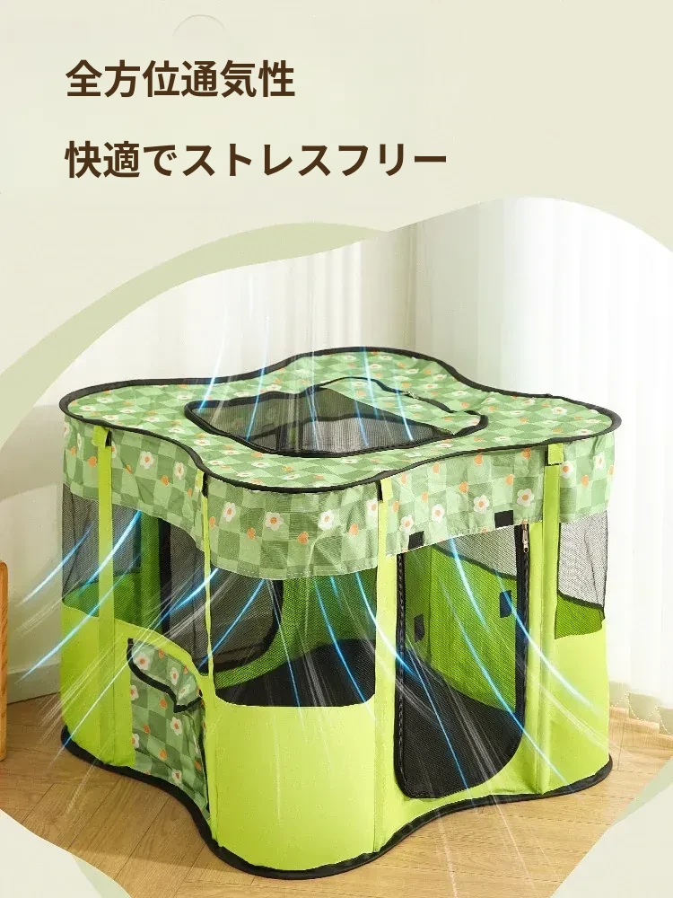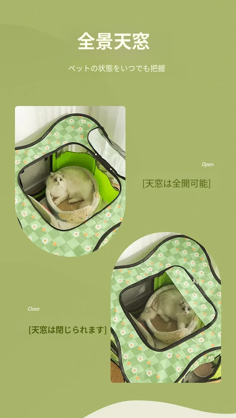 花柄グリーンキャット産室【四方囲い五面通気性+側面ポケット】