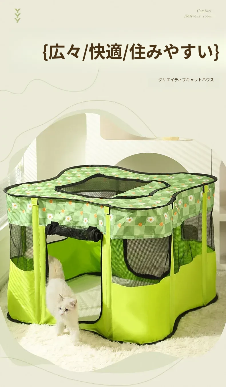 猫ちゃんの出産準備に最適!封閉式テント型出産ボックスセット - 快適な猫用産房と待機スペースで、安全に赤ちゃんを迎えましょう!