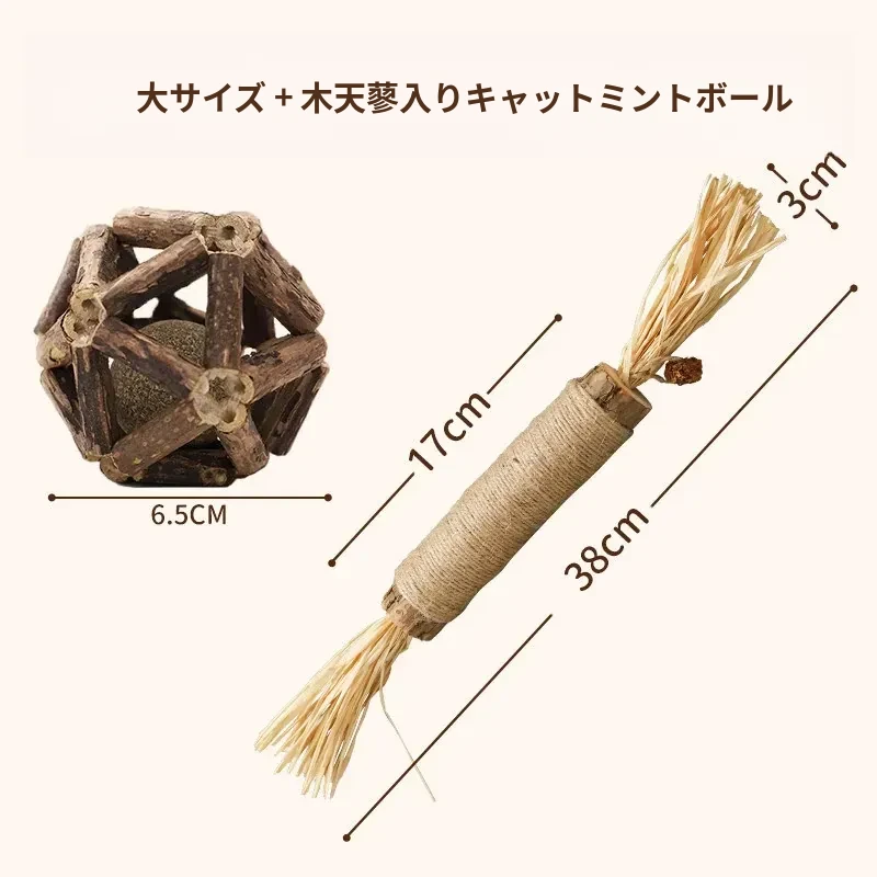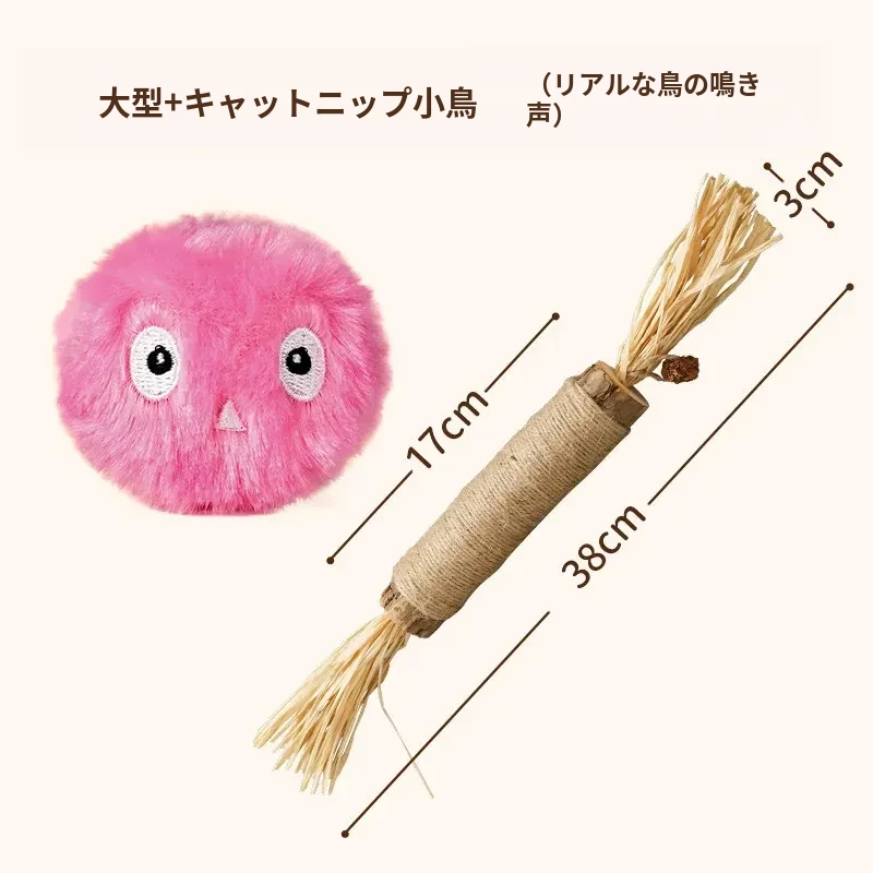 大サイズ+8元で小鳥の鳴き声ボール(触れると鳴る キャットミント付き)