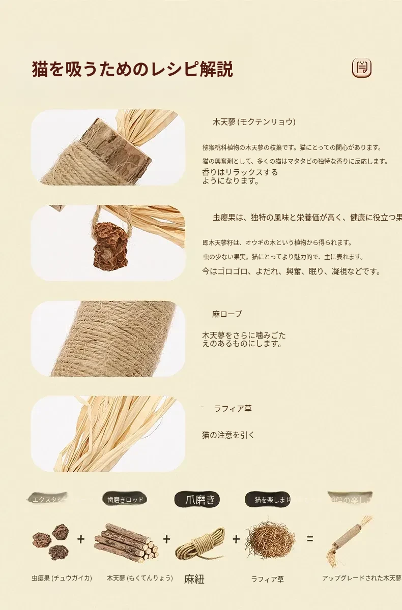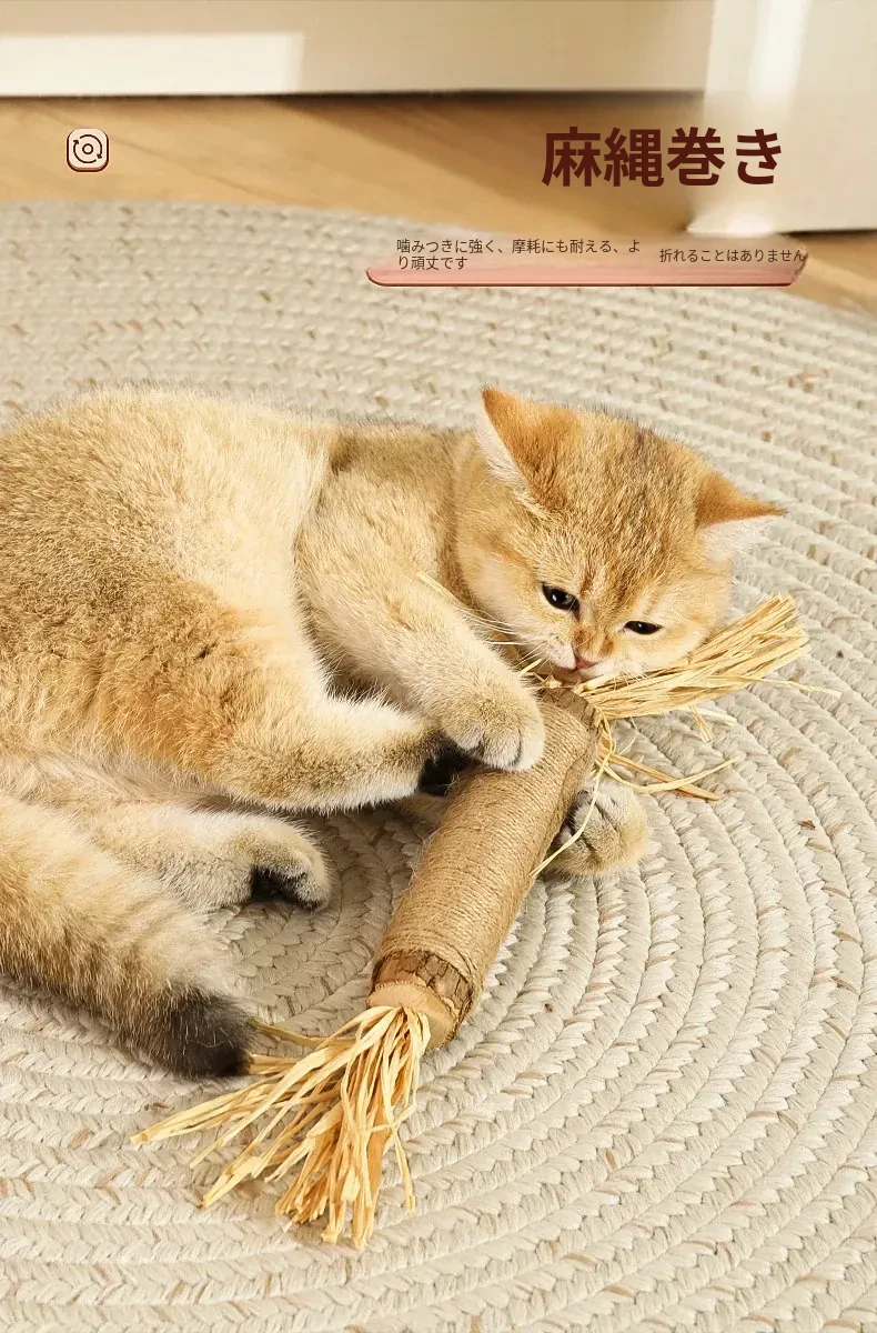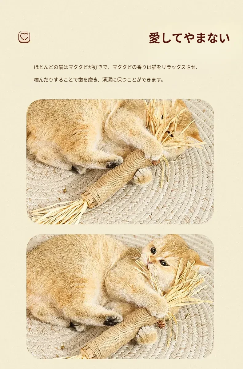 猫のおもちゃ 猫じゃらし 天然マタタビ付き 歯磨きスティック 子猫・幼猫用 楽しく遊べるおもちゃ!ストレス解消&自分で楽しめる猫のお友達!