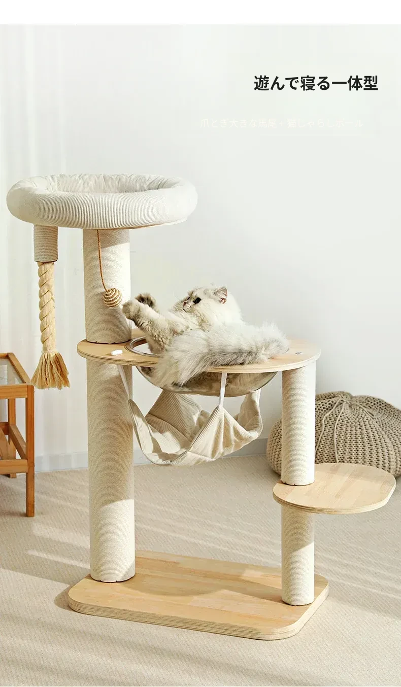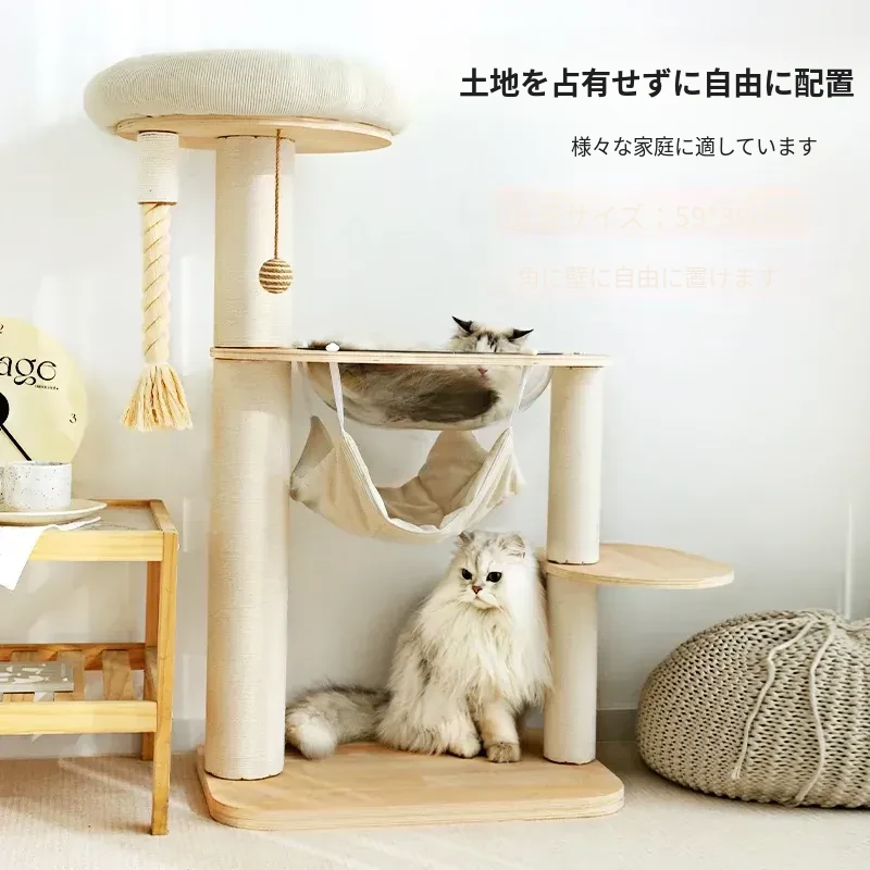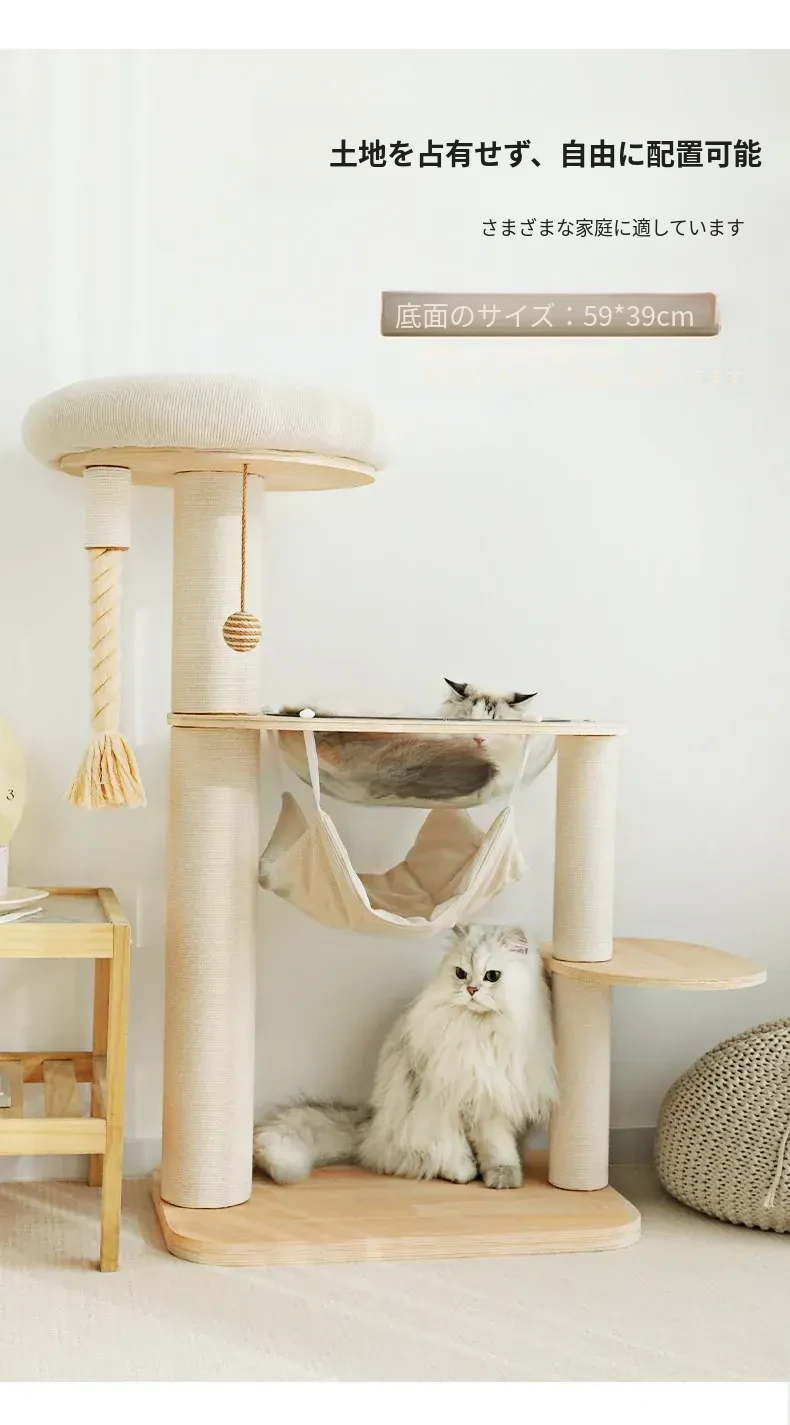 省スペース設計のキャットタワー!小型住宅向けの猫用ハウス、ジャンプ台、爪とぎ機能を兼ね備えた多機能キャットクライミングフレーム。愛猫のための最適な遊び場を提供します!