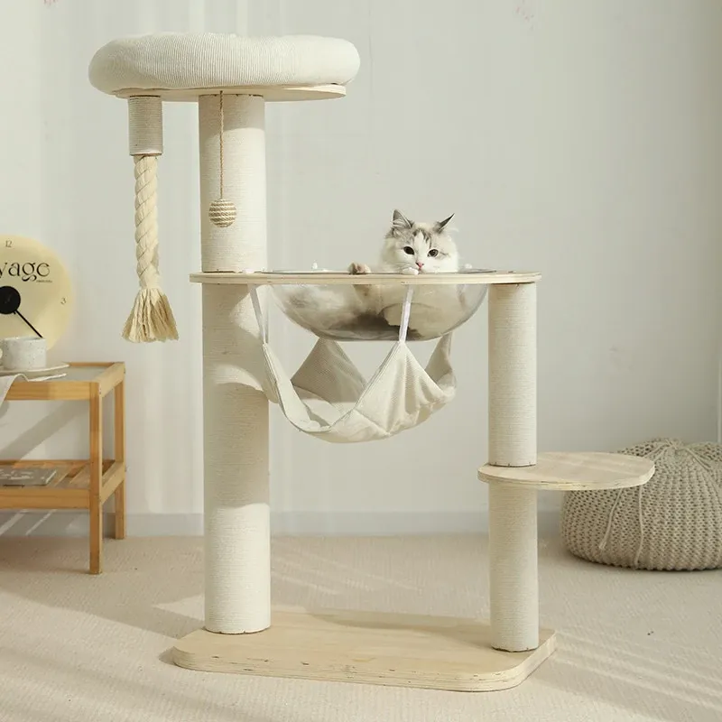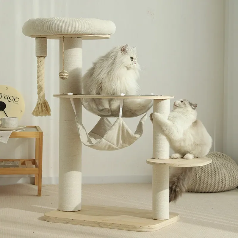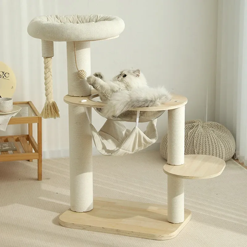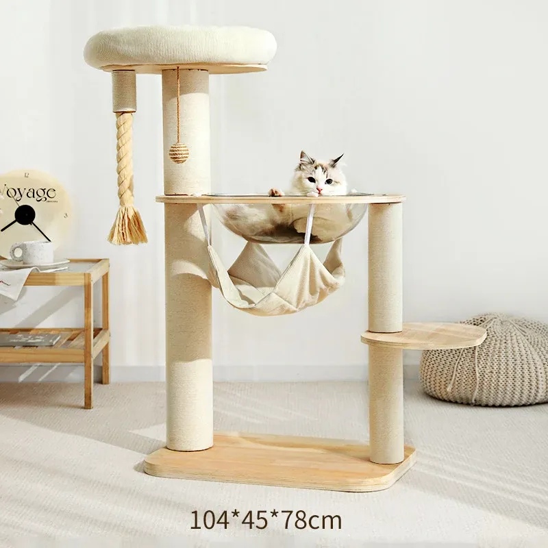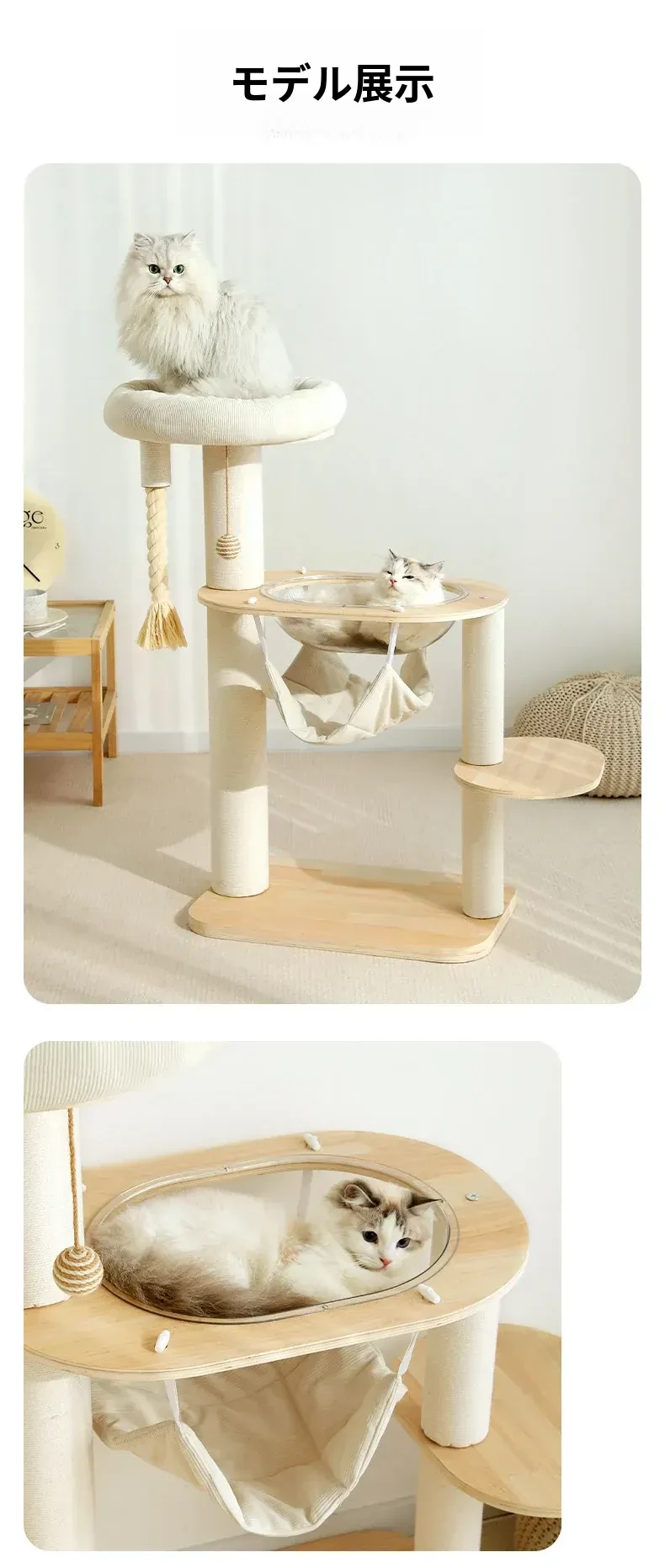 省スペース設計のキャットタワー!小型住宅向けの猫用ハウス、ジャンプ台、爪とぎ機能を兼ね備えた多機能キャットクライミングフレーム。愛猫のための最適な遊び場を提供します!