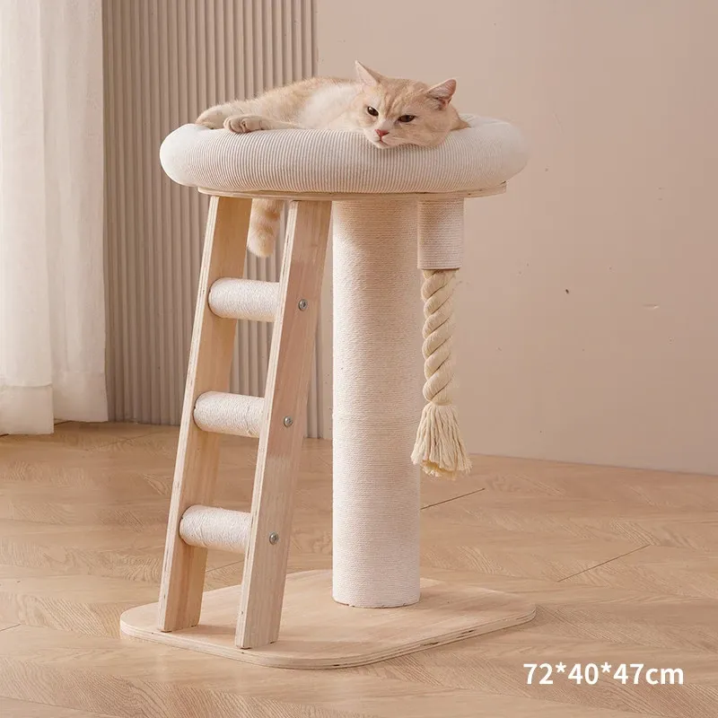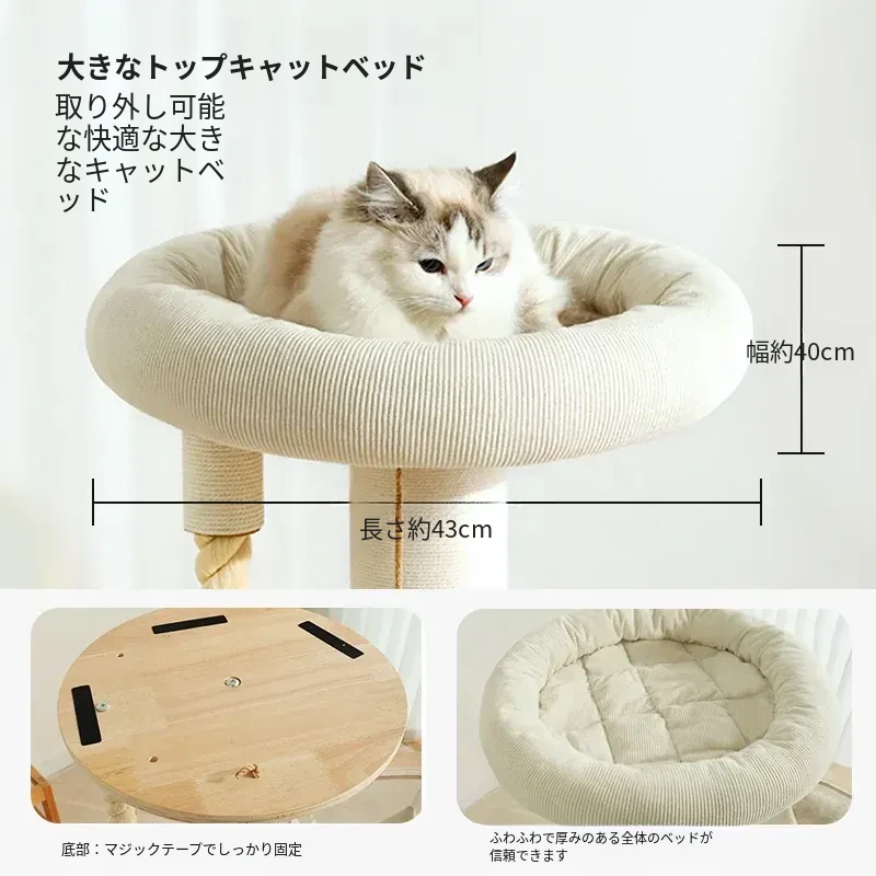 太い猫ハウス付きキャットタワー[シンプル版][大きなキャットハウス+大きな爪研ぎ+登り階段]72*40*47cm
