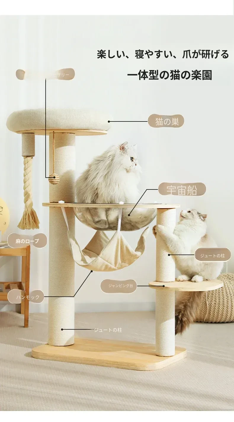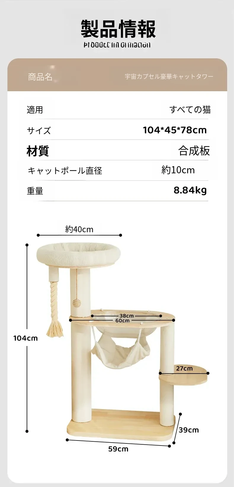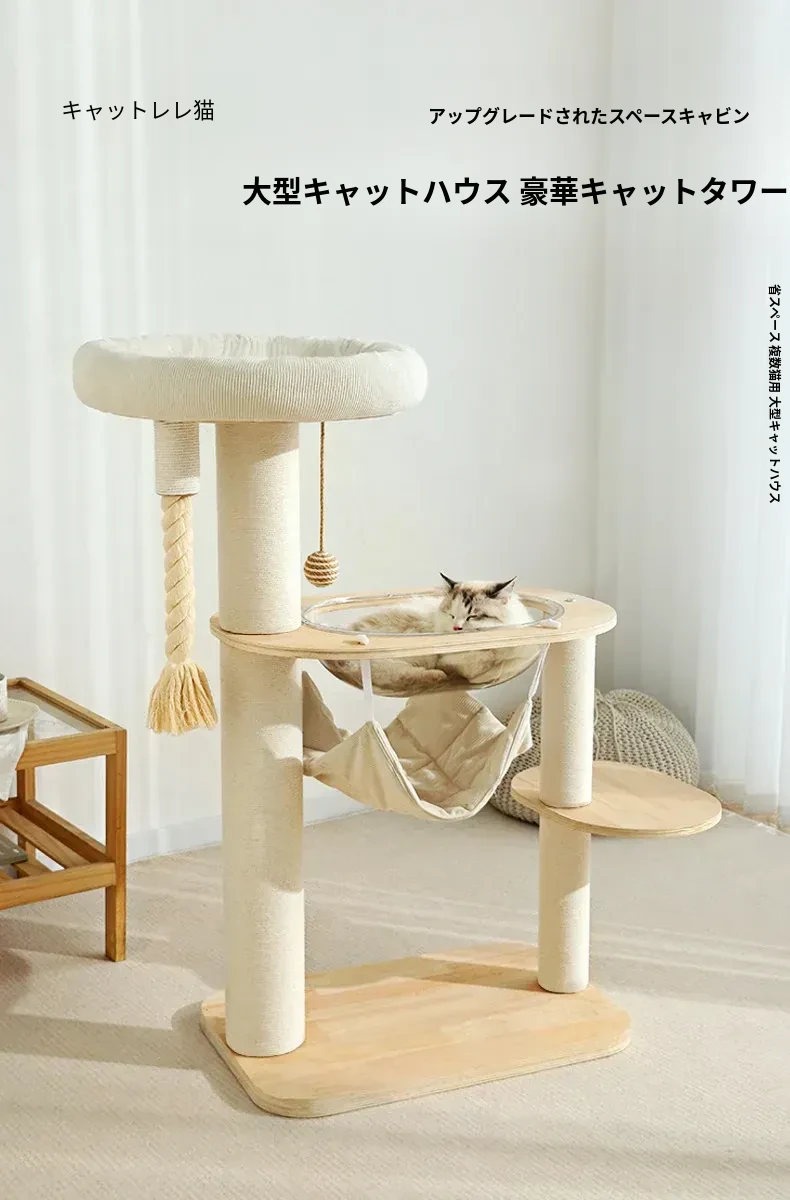 多機能キャットタワー[豪華版][大きなキャットハウス+宇宙船+大きなプラットフォーム+大きな爪研ぎ柱]