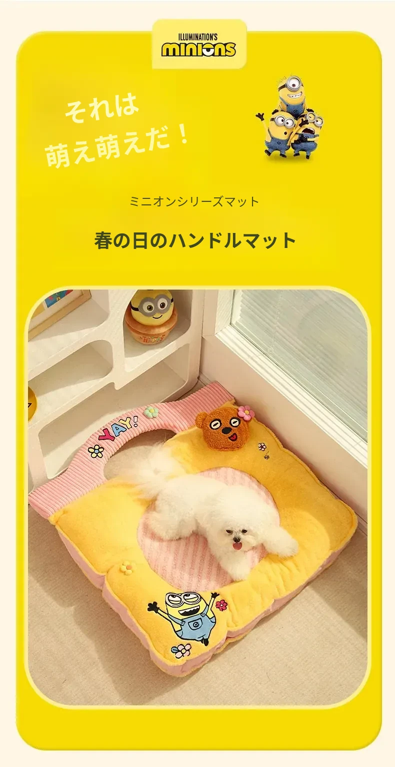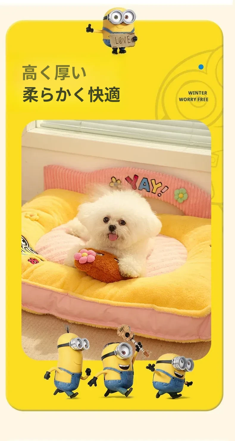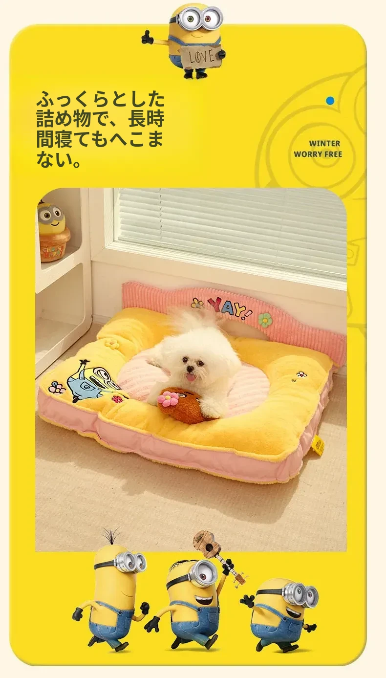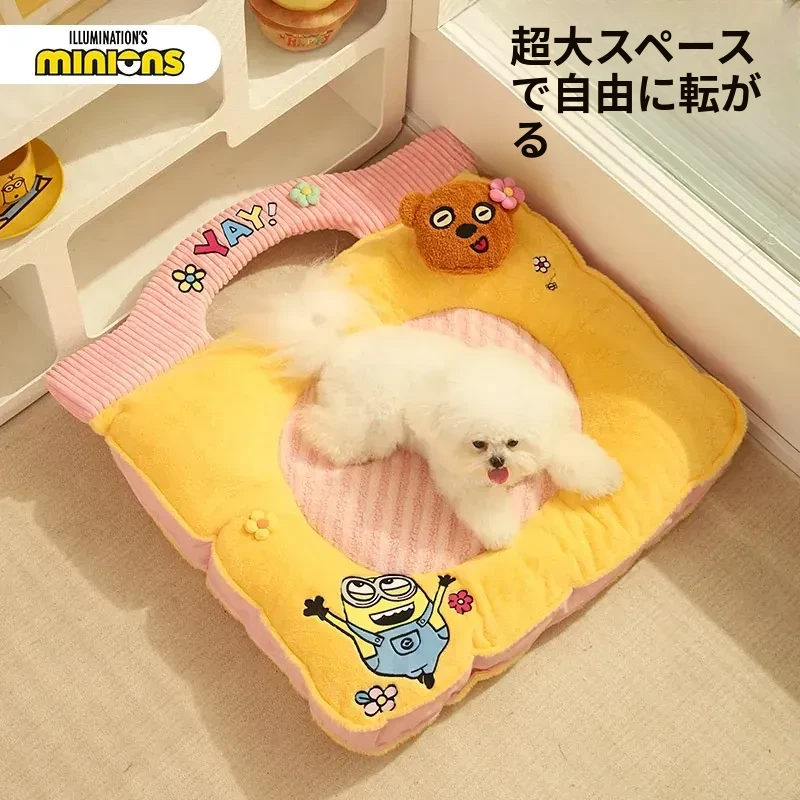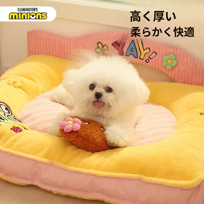 ミニオンデザインの猫用クッション - 秋冬にぴったりな保温性抜群の厚手ペットソファ。汚れに強く、小型犬や猫が快適に眠れる優れた寝具です!