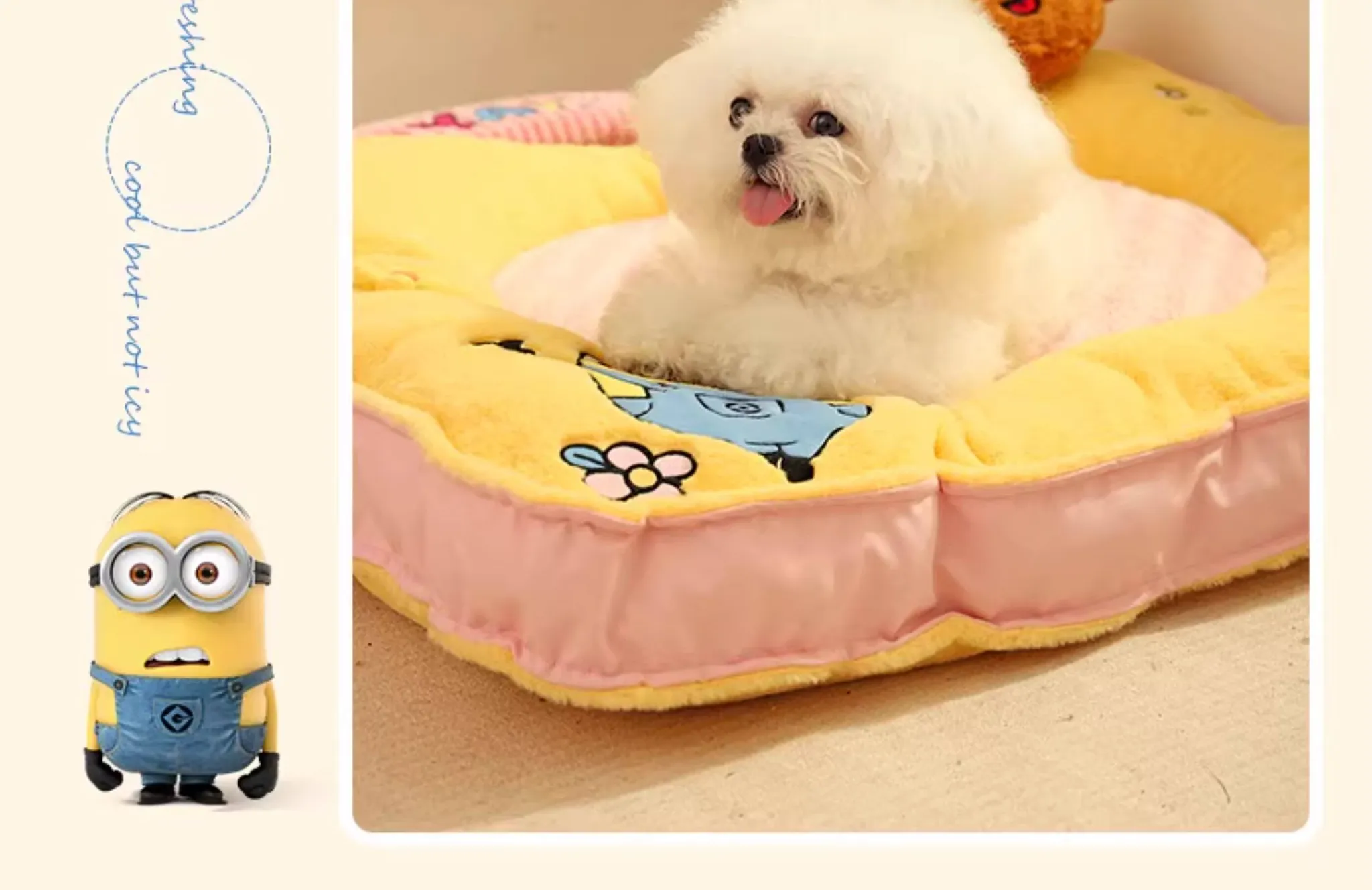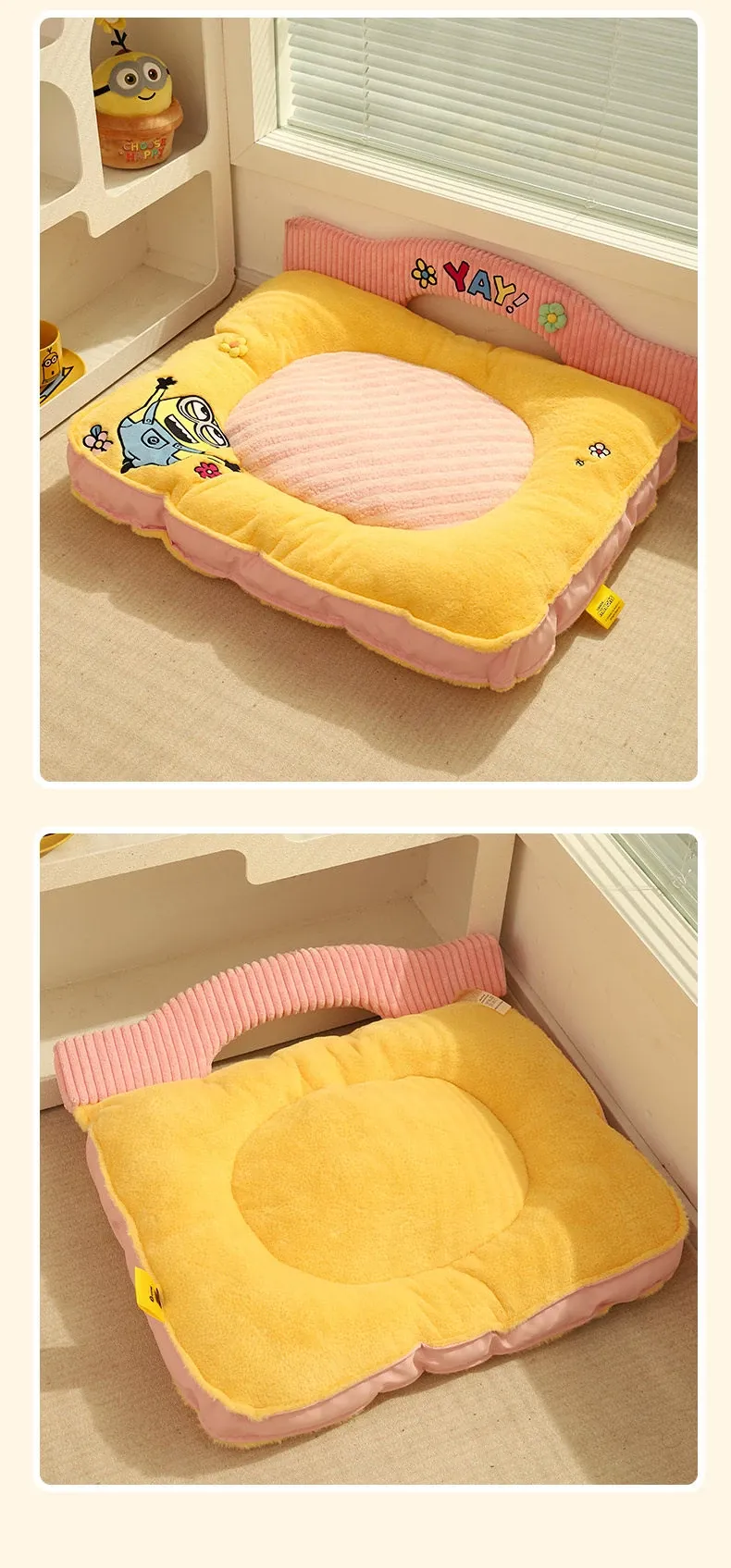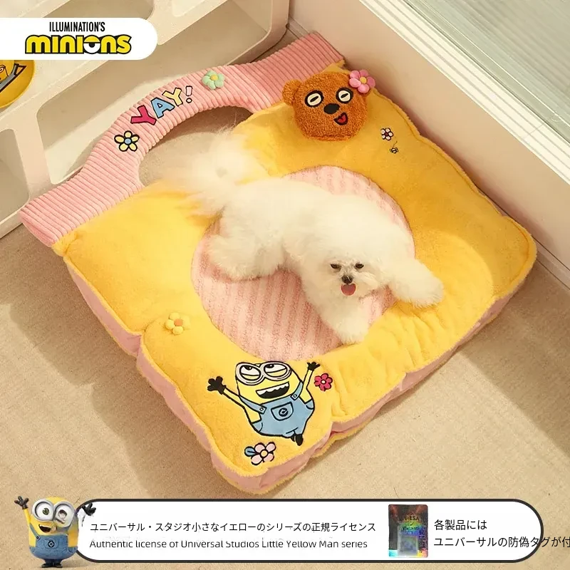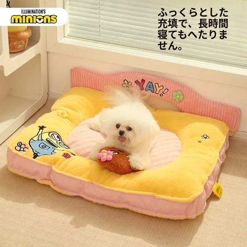 ミニオンデザインの猫用クッション - 秋冬にぴったりな保温性抜群の厚手ペットソファ。汚れに強く、小型犬や猫が快適に眠れる優れた寝具です!