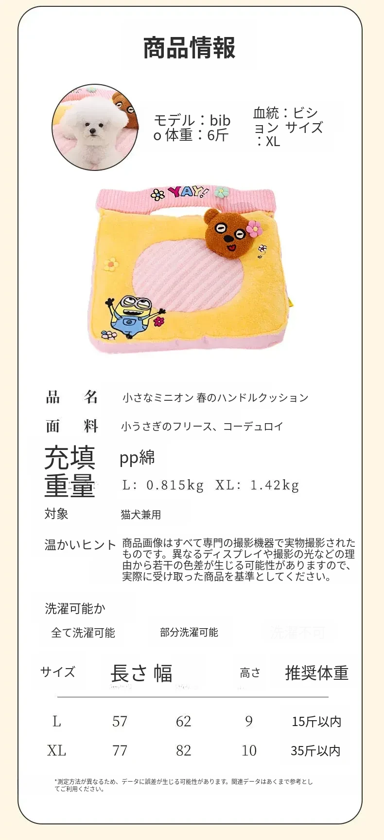 XL:長さ77*幅82*高さ10CM【推奨体重35斤以内】