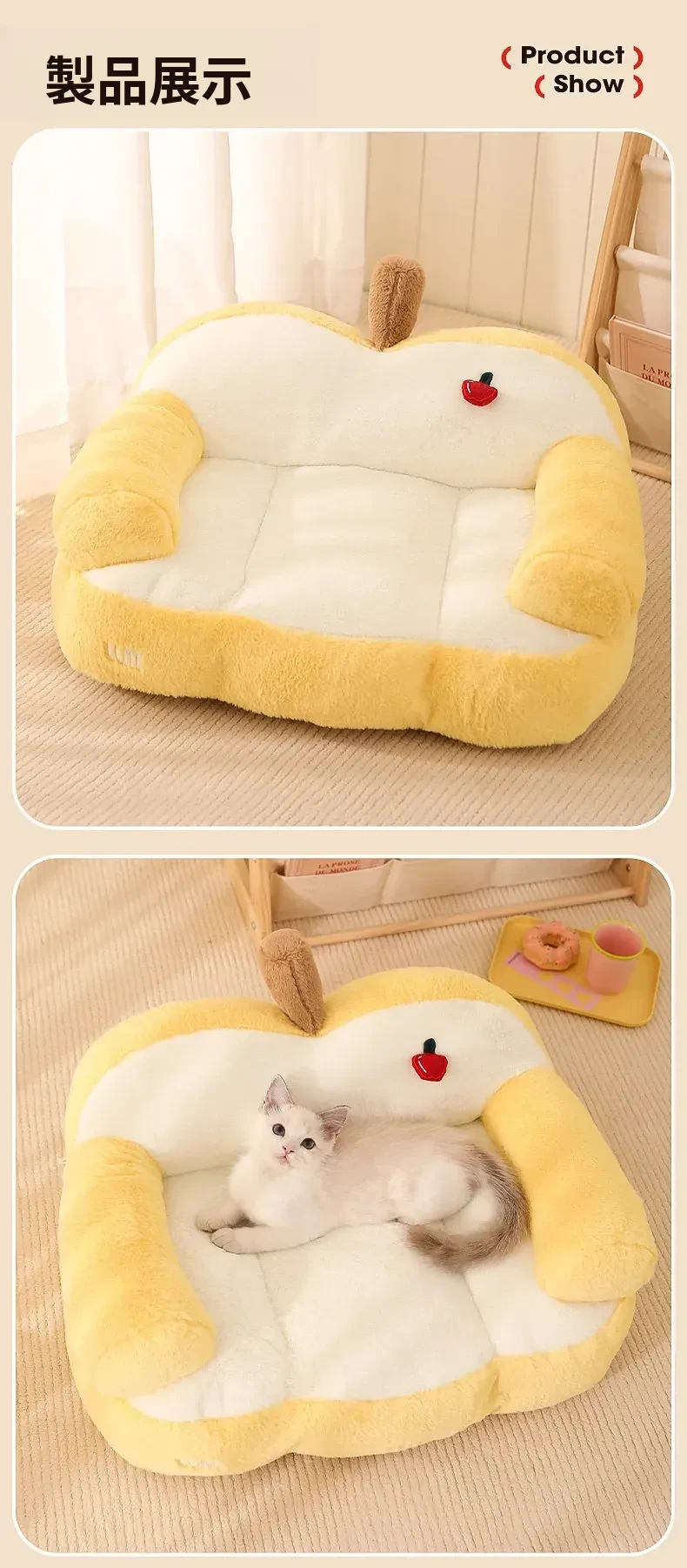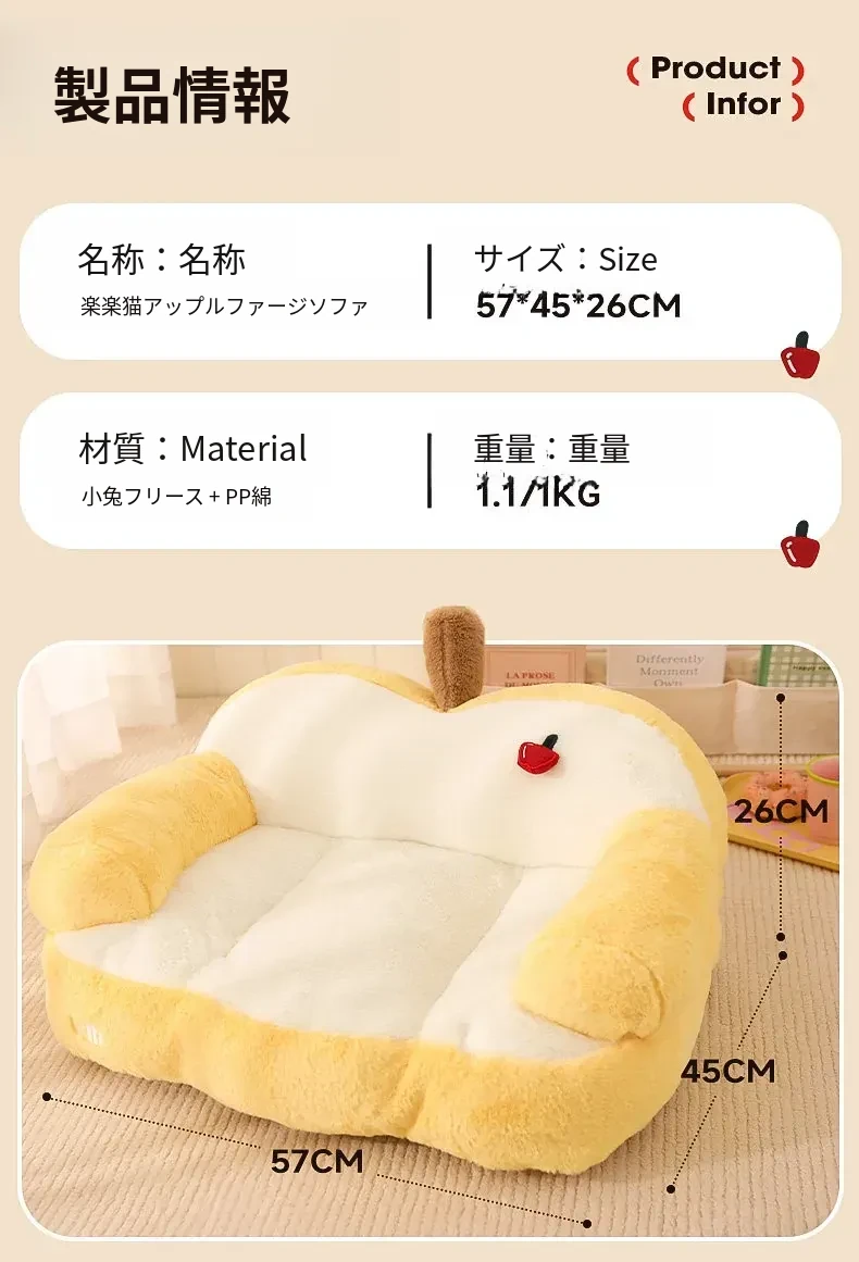 アップルフリースペットソファ【全分解洗濯可】 アップグレード版ウサギフリース保温タイプ