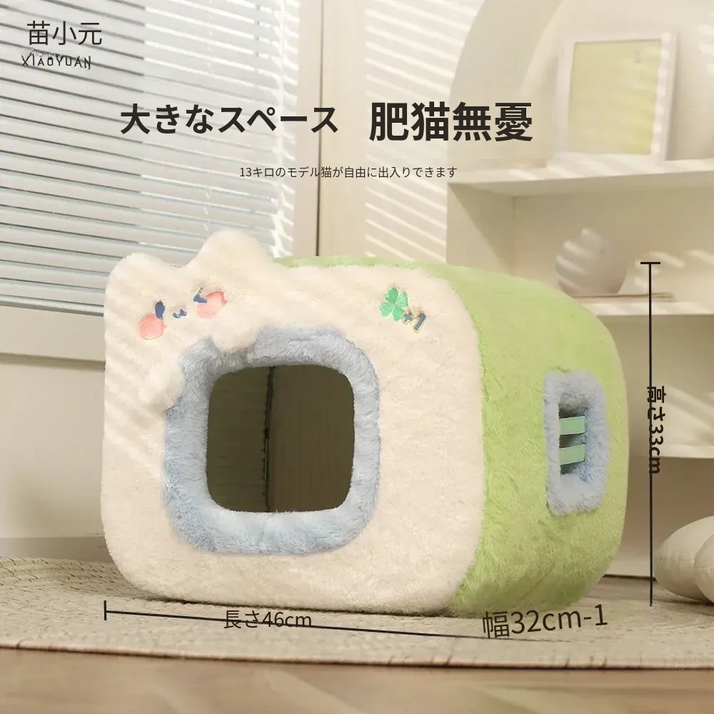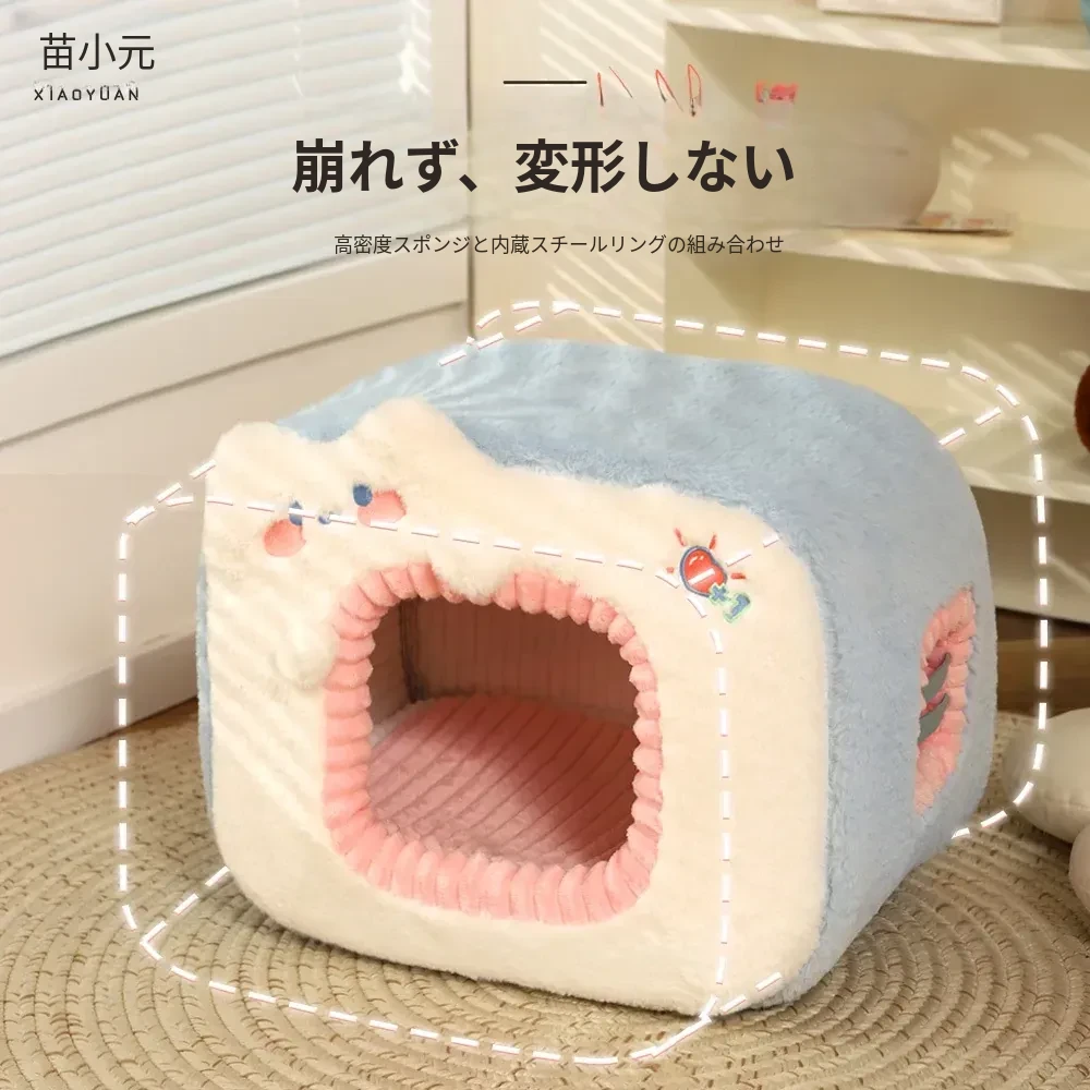 冬にぴったり!喵小元の猫用暖かいベッド - 四季使えるペット用品、ふわふわマットで快適な眠りを実現。寒い季節も安心してお休みできる猫ハウス。