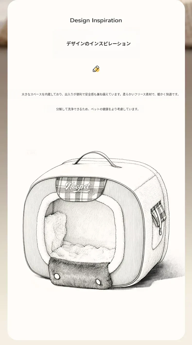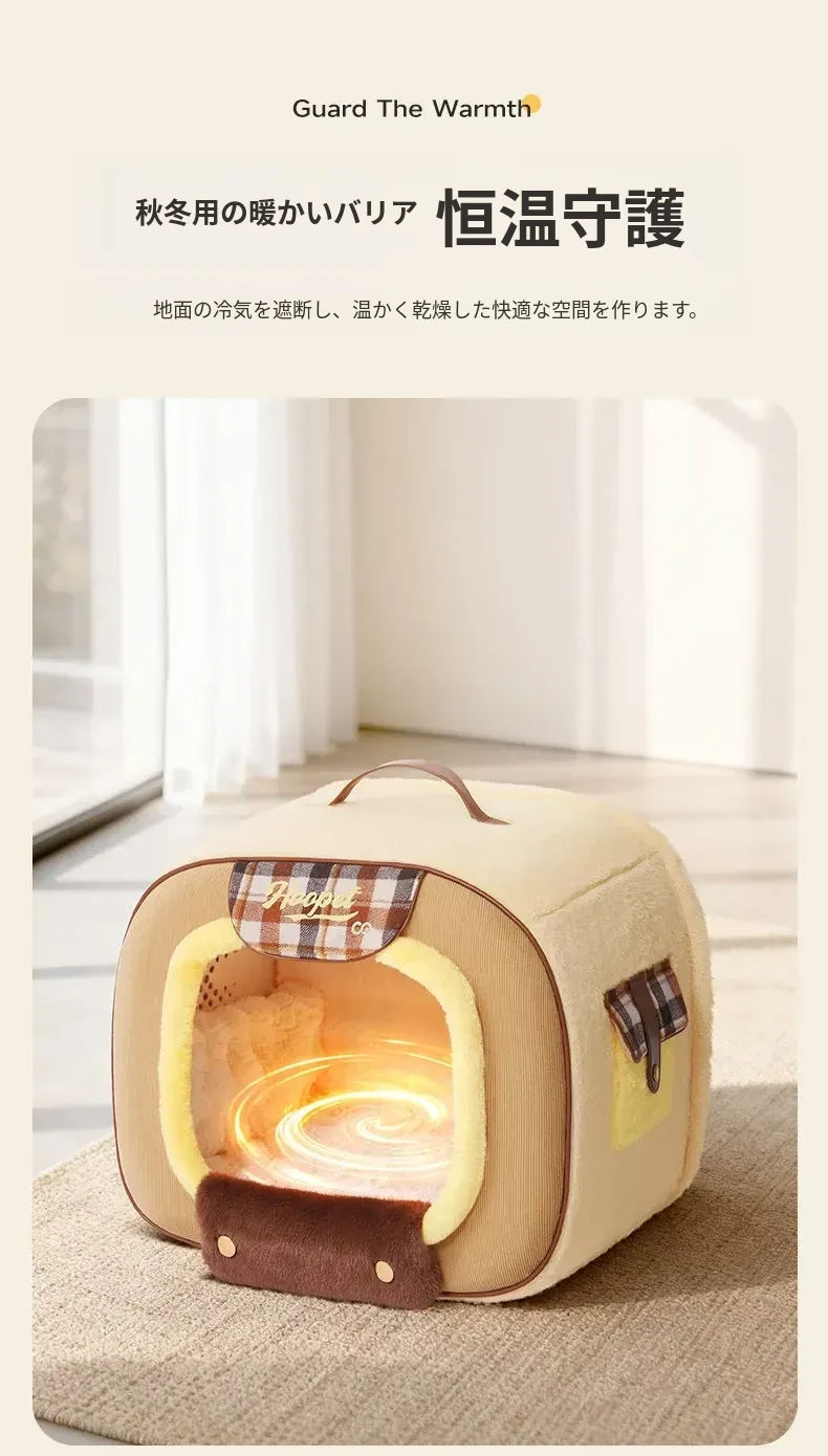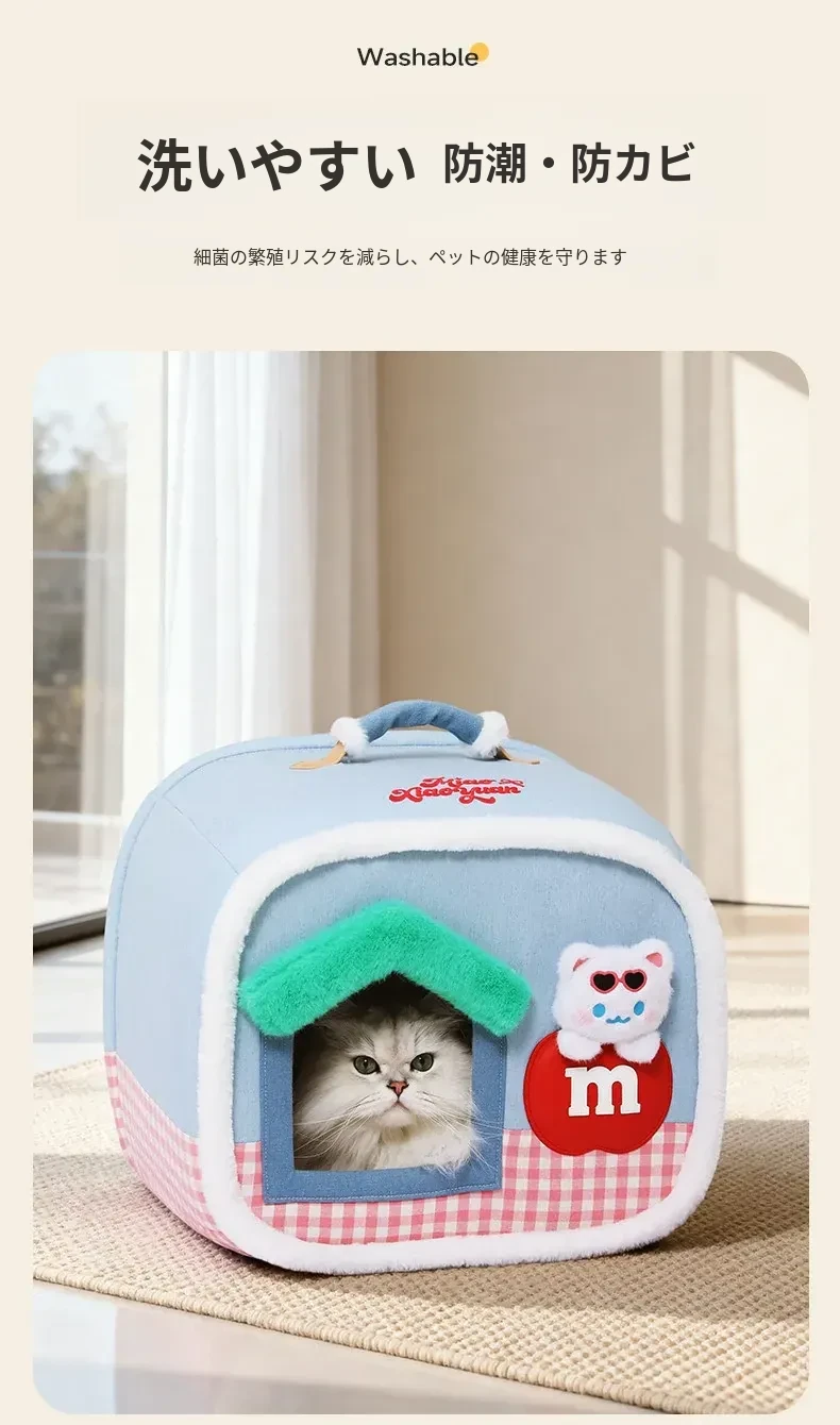 安心してくつろげる!喵小元の閉じたデザインの猫ハウス - 洗える冬用ペットハウスで、寒い季節もぬくもりを提供。猫ちゃんの安全感を守り、快適な空間を演出します!