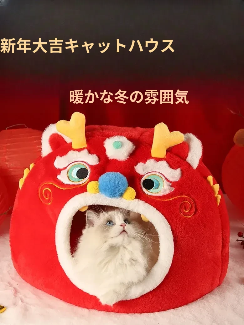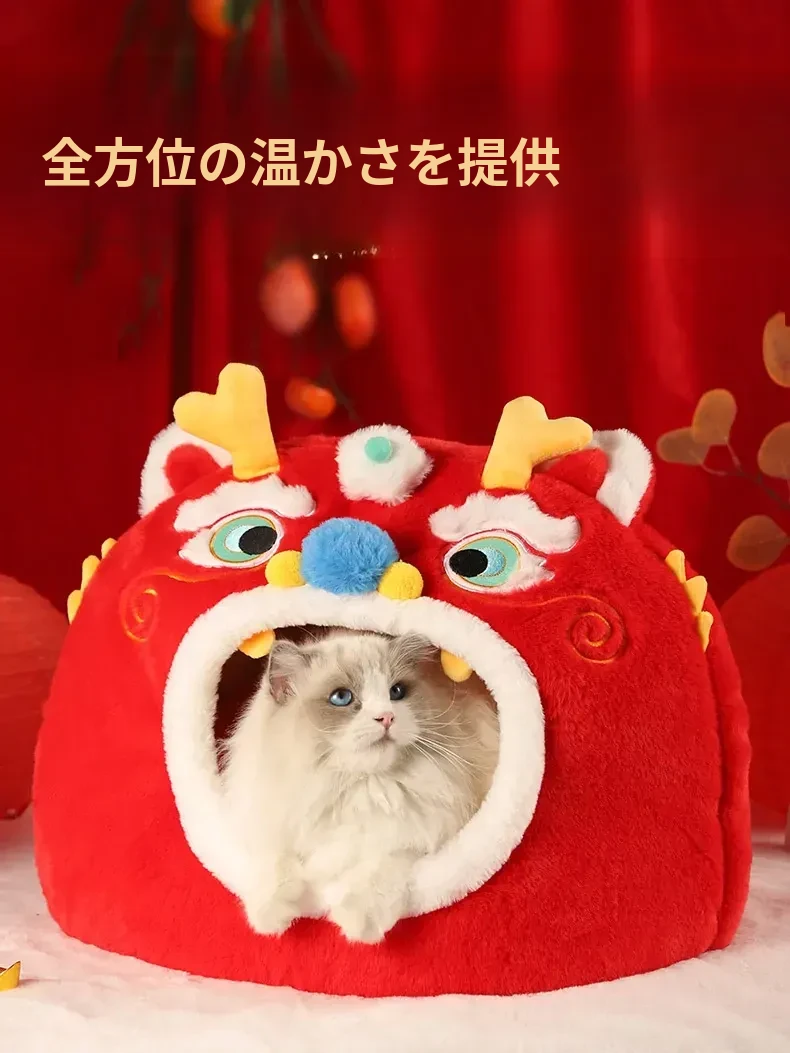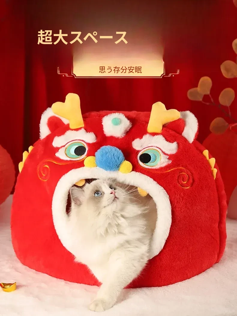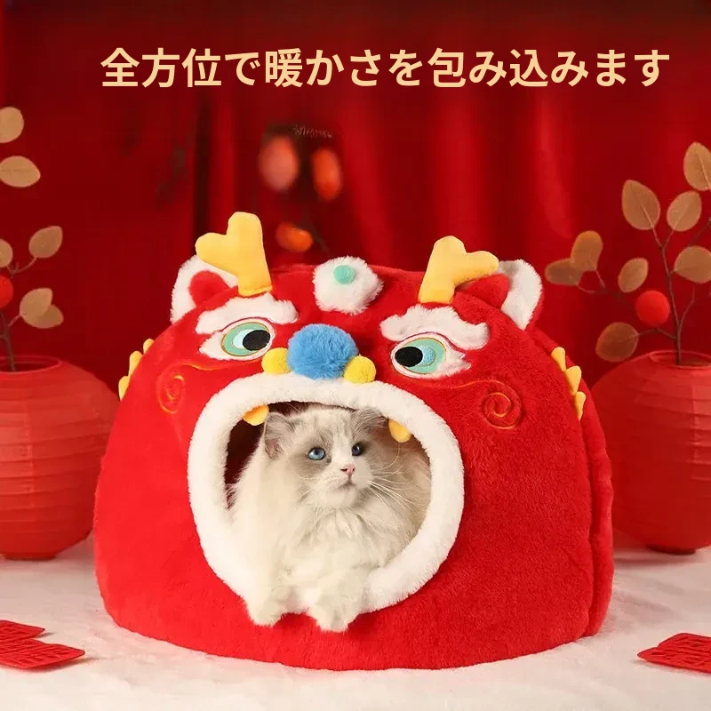新年限定!暖かい冬の猫の隠れ家 - 四季兼用の快適な猫ベッド、愛猫を包み込む封閉式デザインで、寒い冬でも安心してぐっすり眠れます!