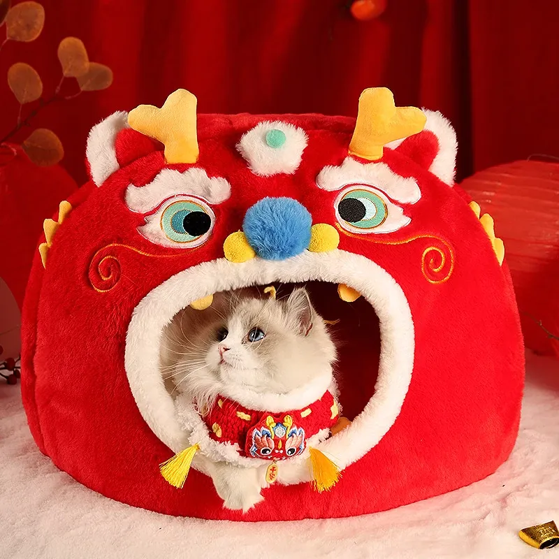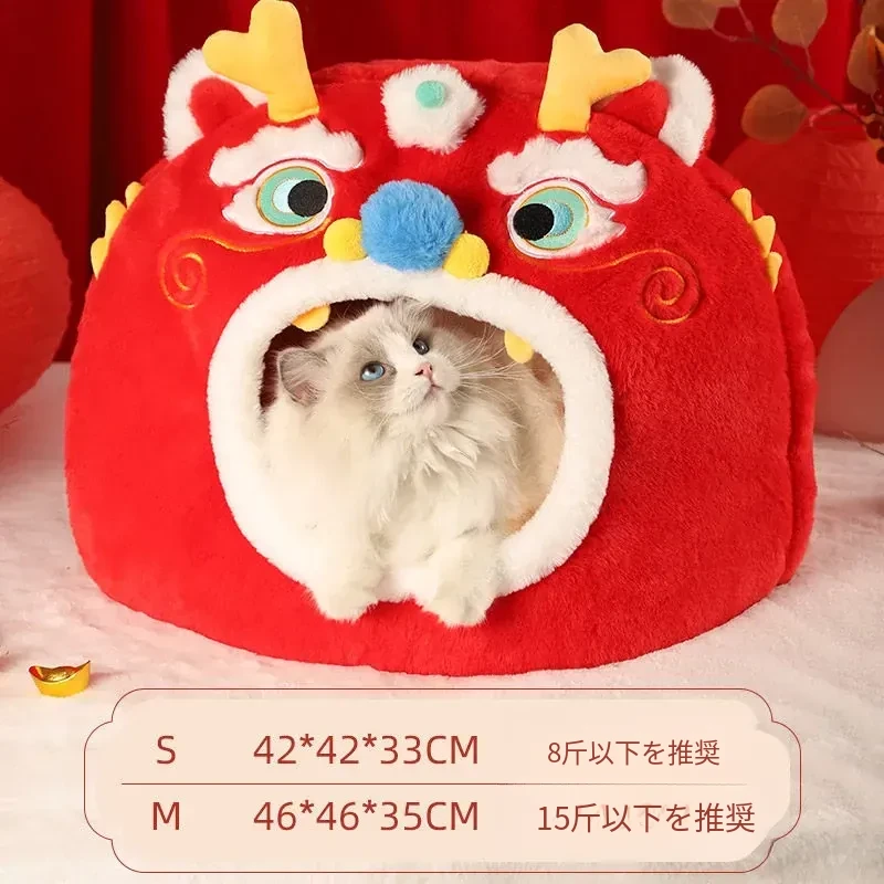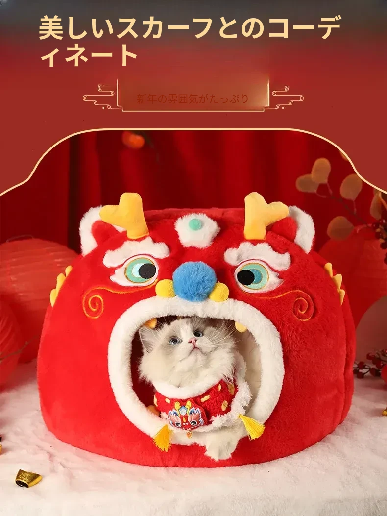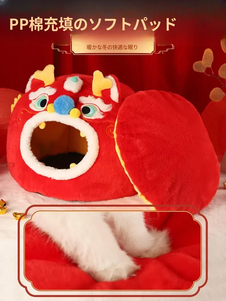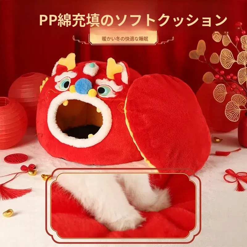 新年限定!暖かい冬の猫の隠れ家 - 四季兼用の快適な猫ベッド、愛猫を包み込む封閉式デザインで、寒い冬でも安心してぐっすり眠れます!