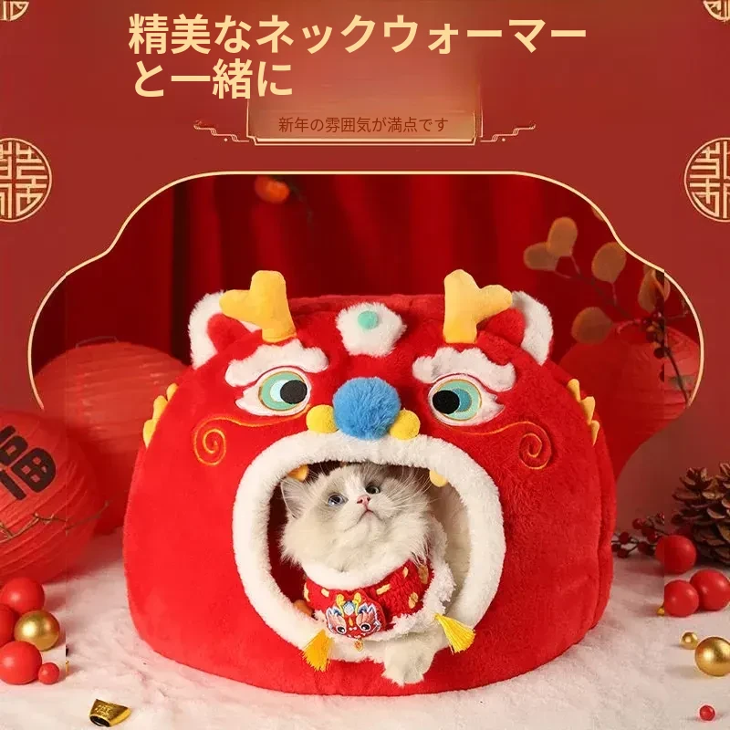 新年猫ベッド+新年マフラー(封閉保温)