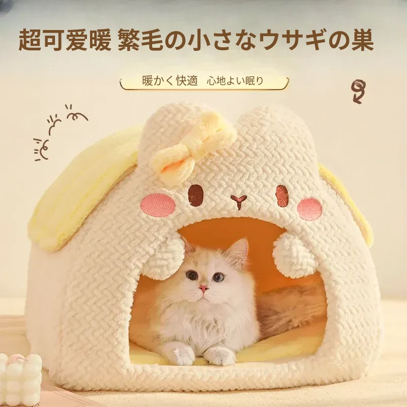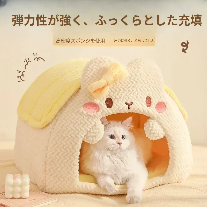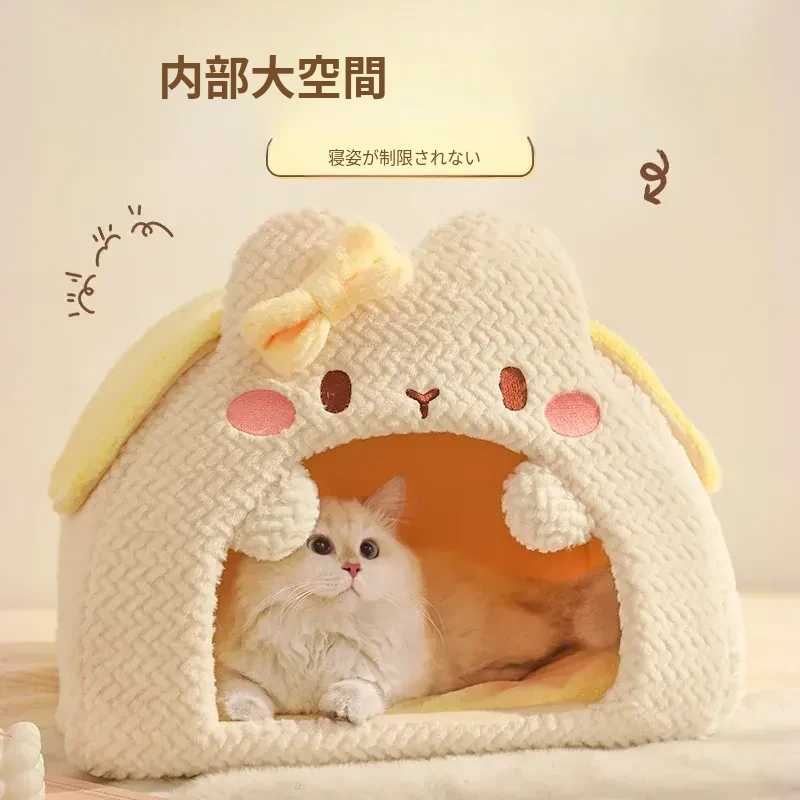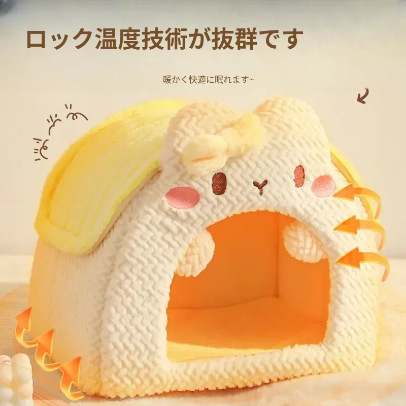冬の寒さから愛猫を守る!安全で快適な封閉式猫窝 - 四季通用のあったかスリーピングマット&猫用寝袋。冬にぴったりの猫の家で、愛猫も安心してぐっすりお休み!