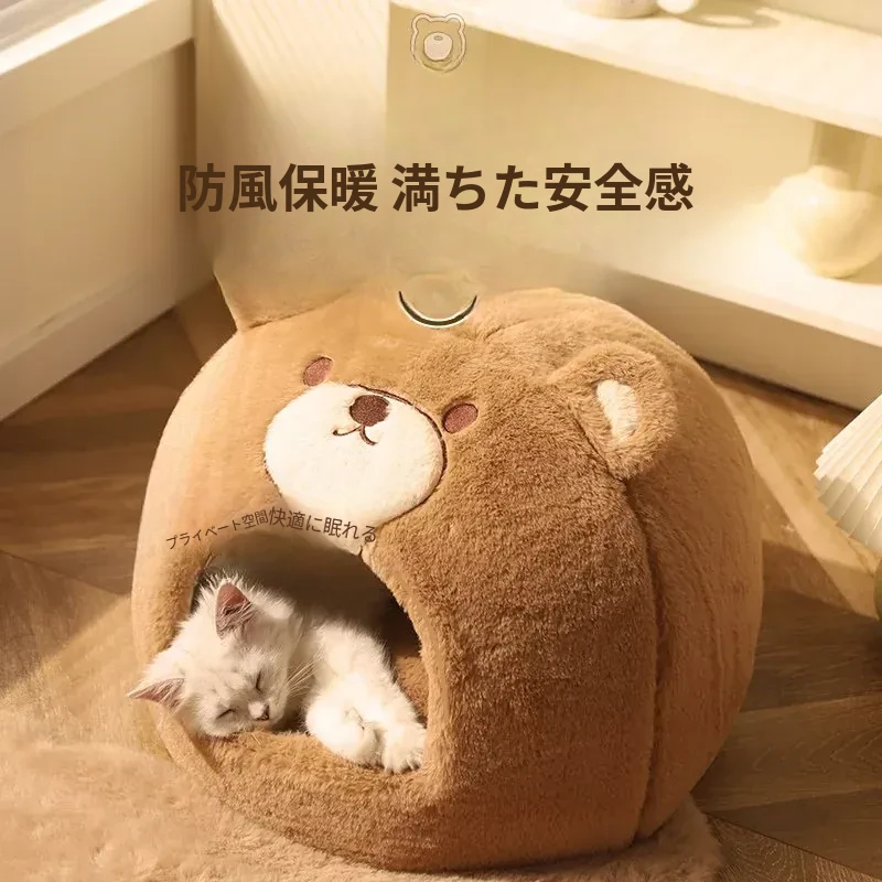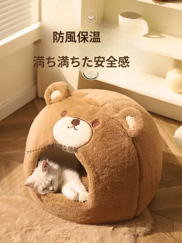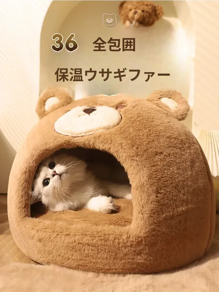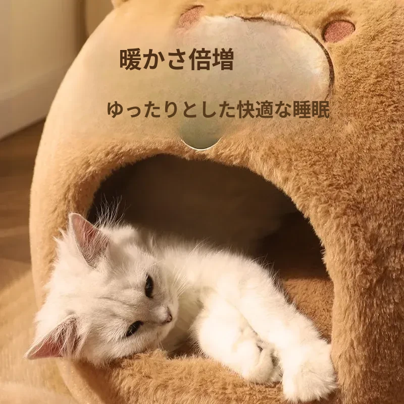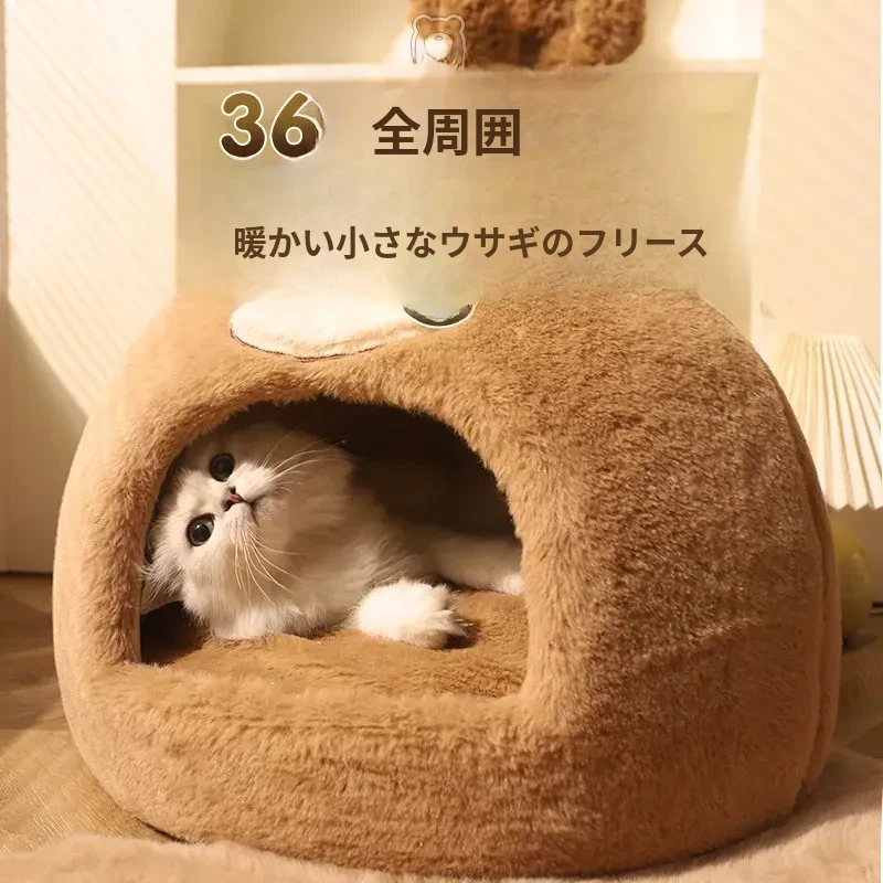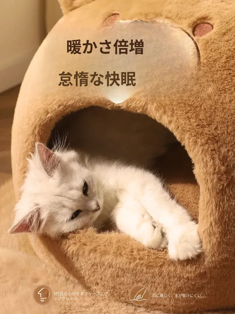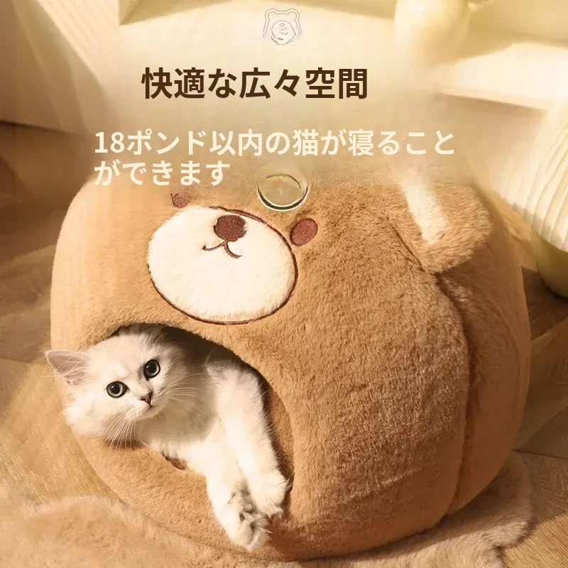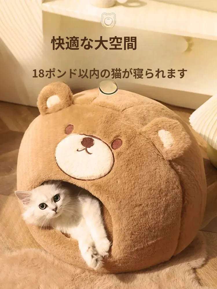 冬の寒さから愛猫を守る!安全感抜群の封閉式猫ベッド。四季通用で、ふかふかのクッション付き。冬の必需品、猫用テントハウスで、愛猫に快適な空間を提供します。