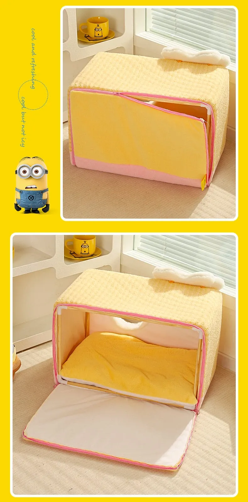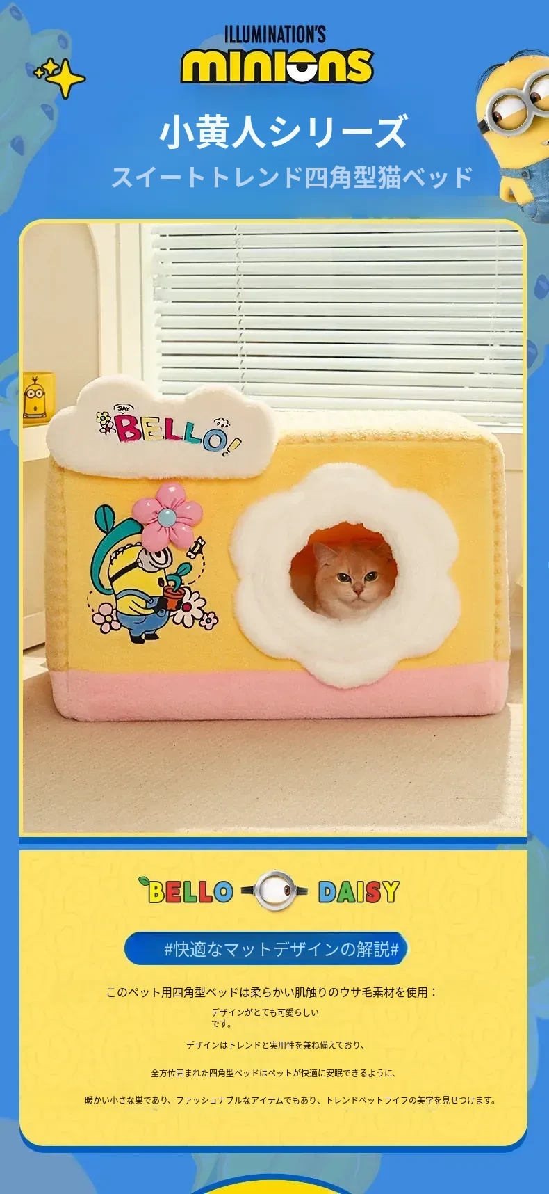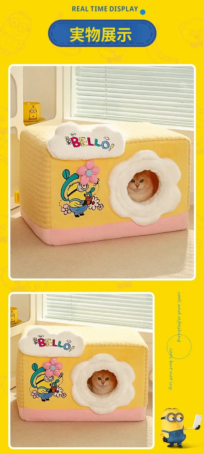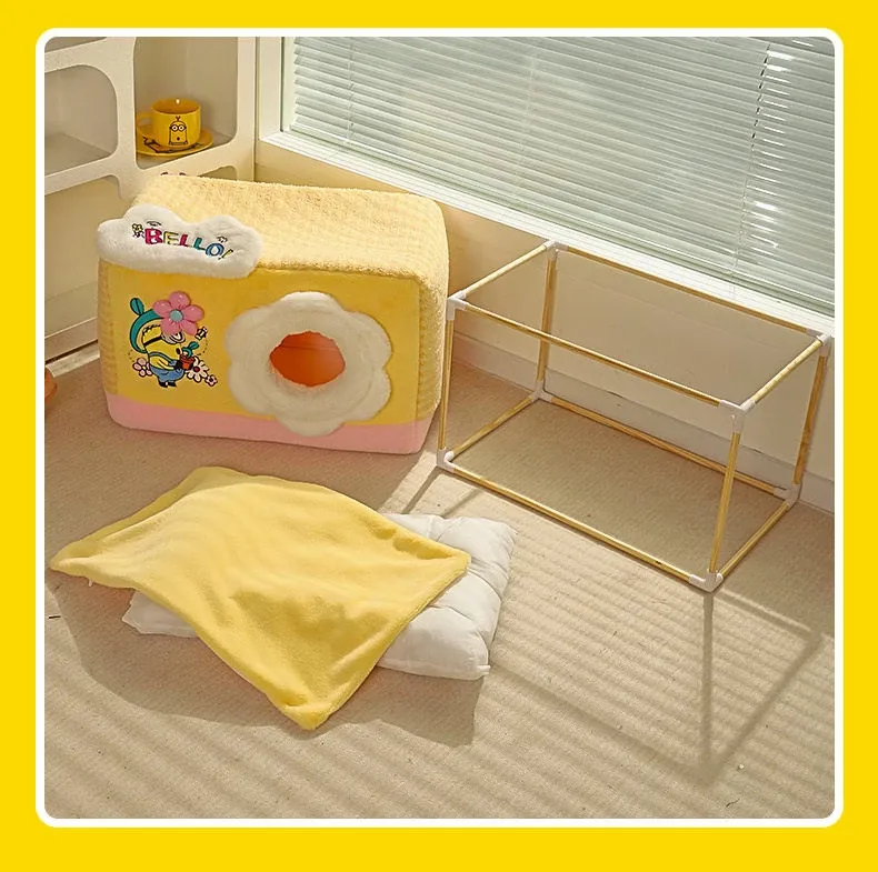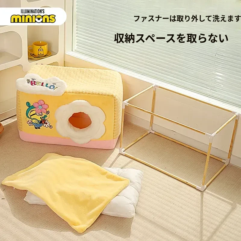 冬の寒さも怖くない!小黄人デザインの厚手封閉式キャットハウスで、子猫に安心感と温かさを提供。あなたの愛猫を守る快適な寝床、冬の必需品です!