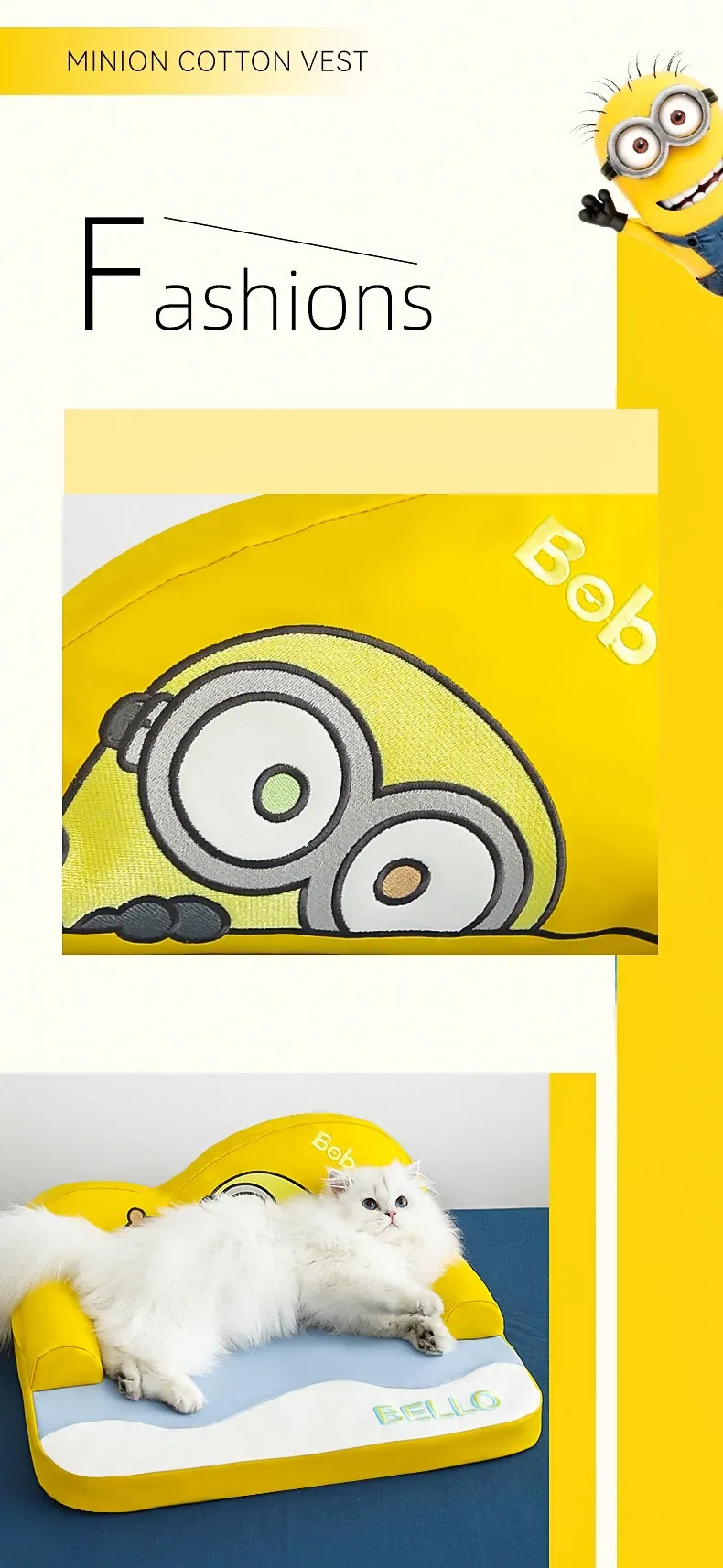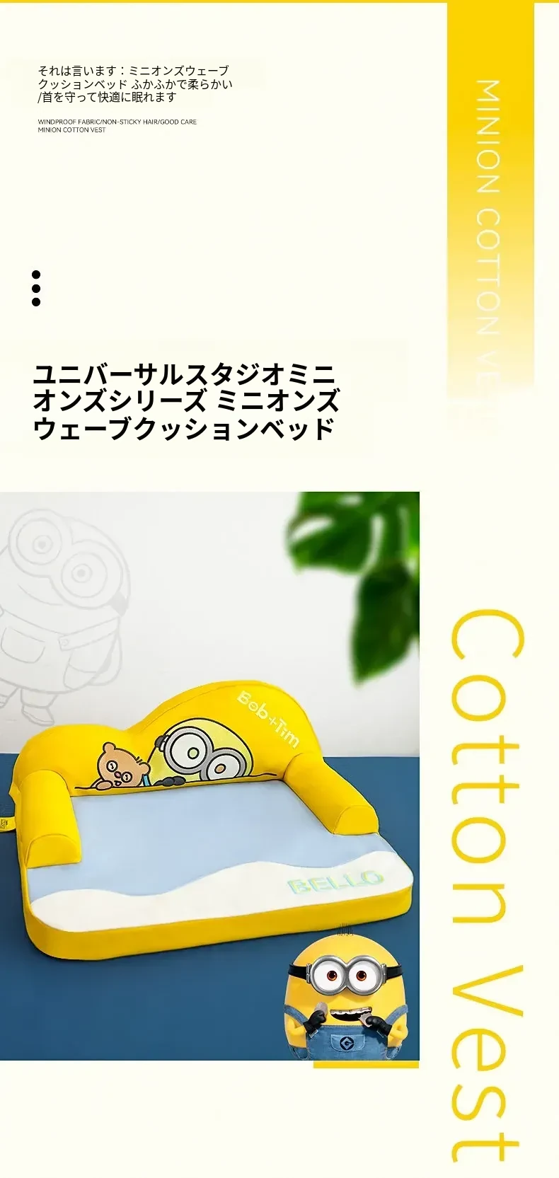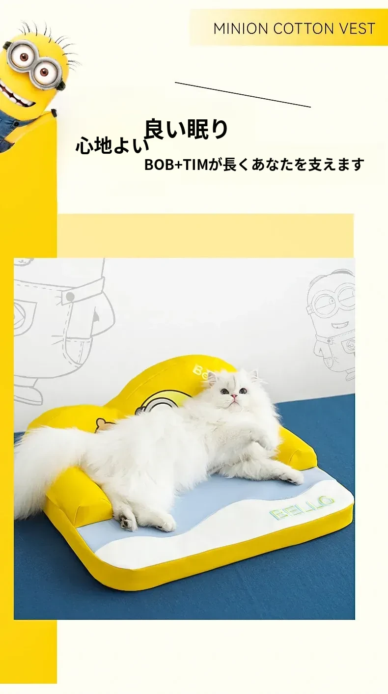 かわいいミニオンデザインの波型クッション!ペット猫のためのふわふわ快適なフロアマット。湿気を防ぎ、愛猫の安眠をサポートする理想的な寝床です。おしゃれで機能的な猫の隠れ家を手に入れましょう!