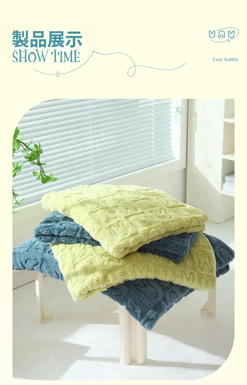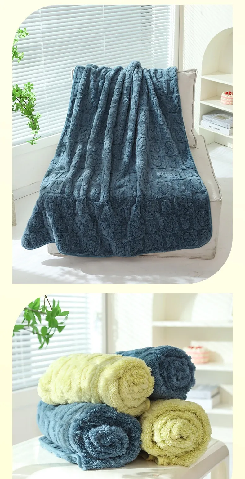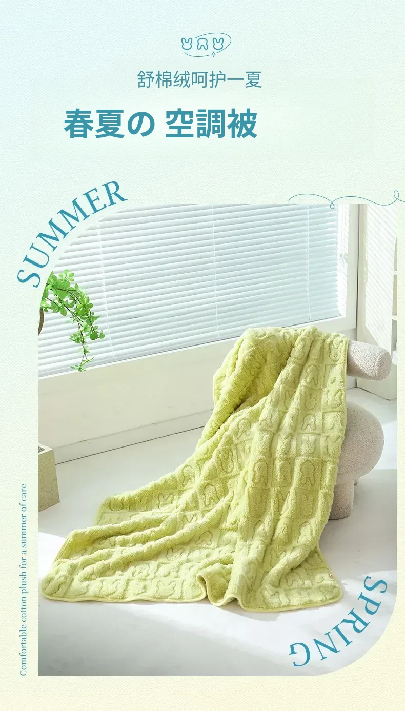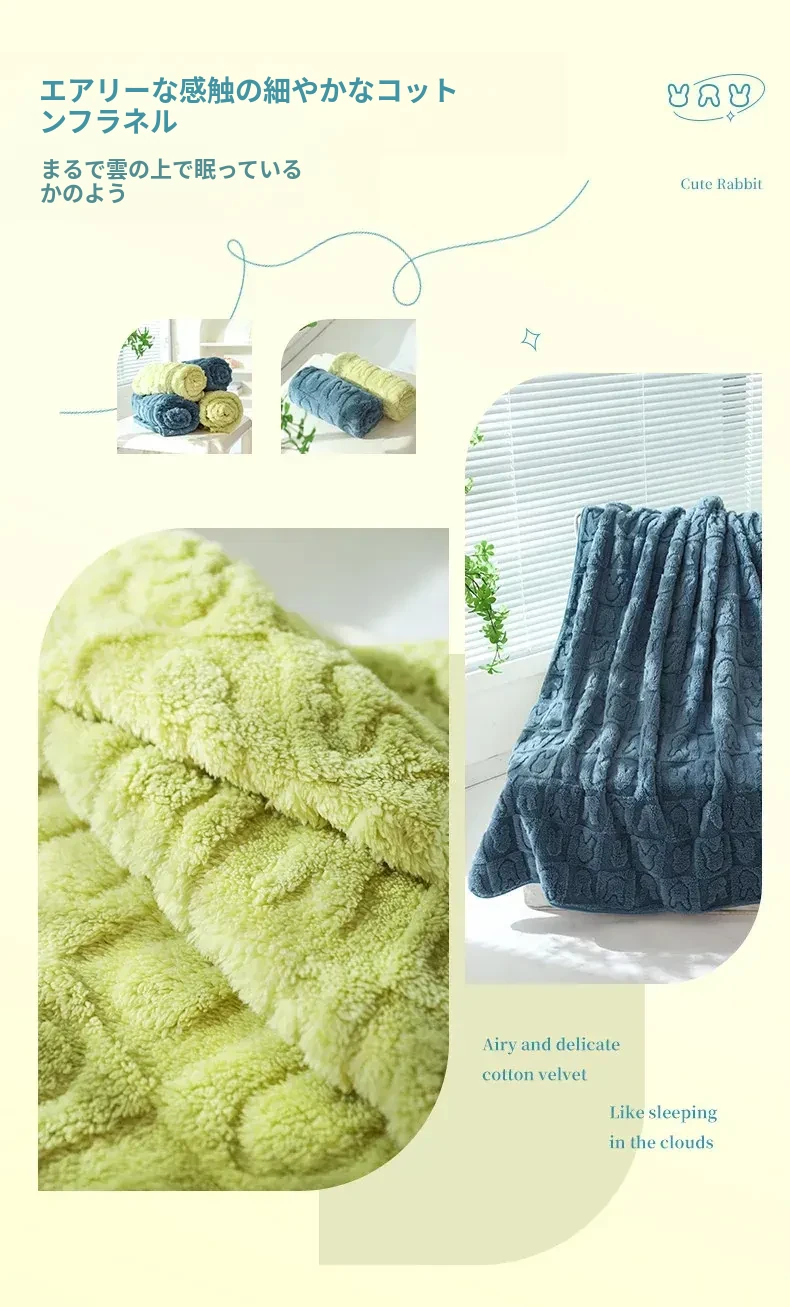 スムースフランネルジャガードウサギブランケット-草緑