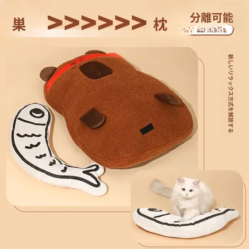 冬の寒さから愛猫を守る!厚手の猫用ベッド、暖かく快適なペットソファ。洗える設計で清潔さをキープ。冬にぴったりの猫マット、あなたの大切な猫ちゃんに最適です!