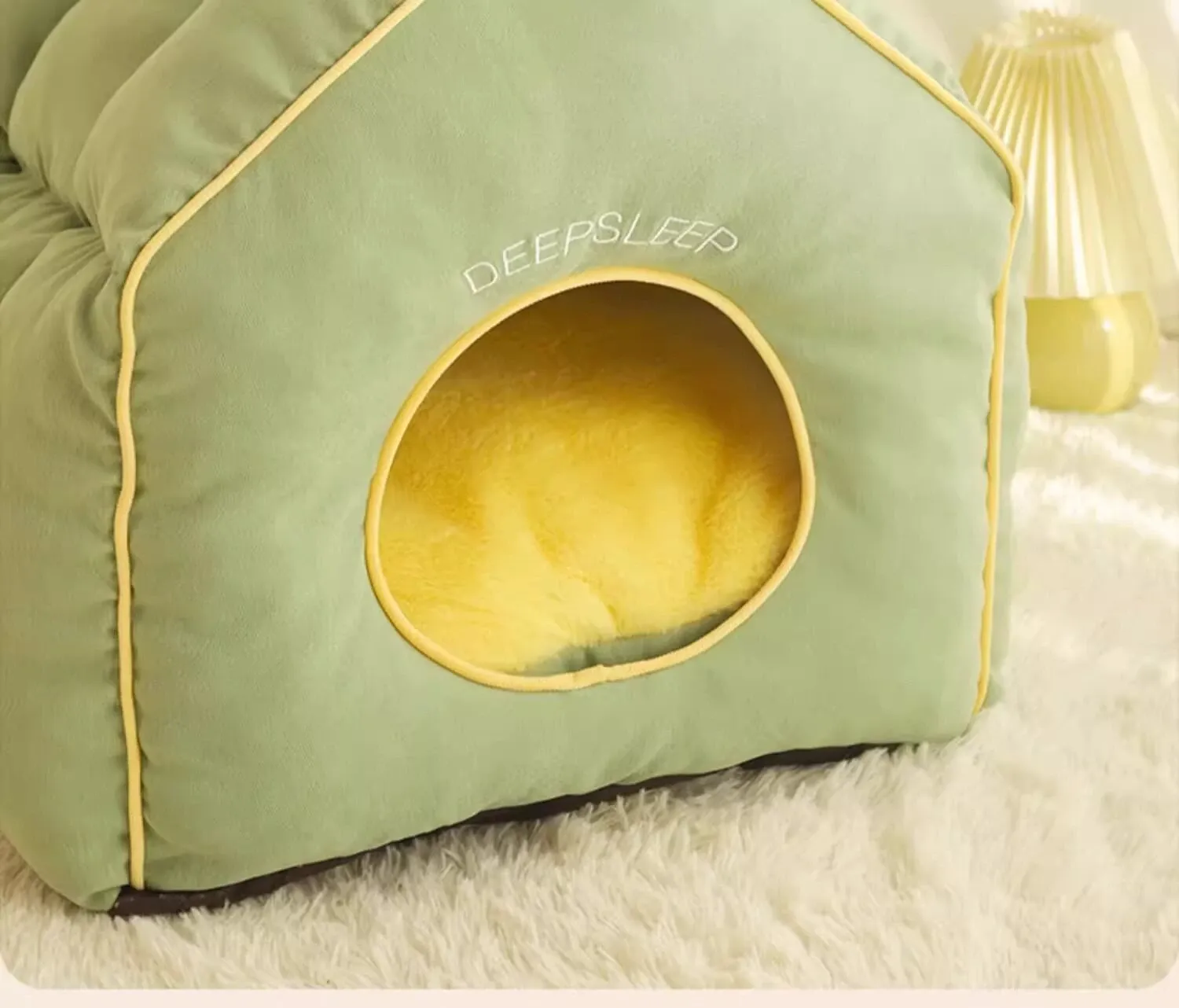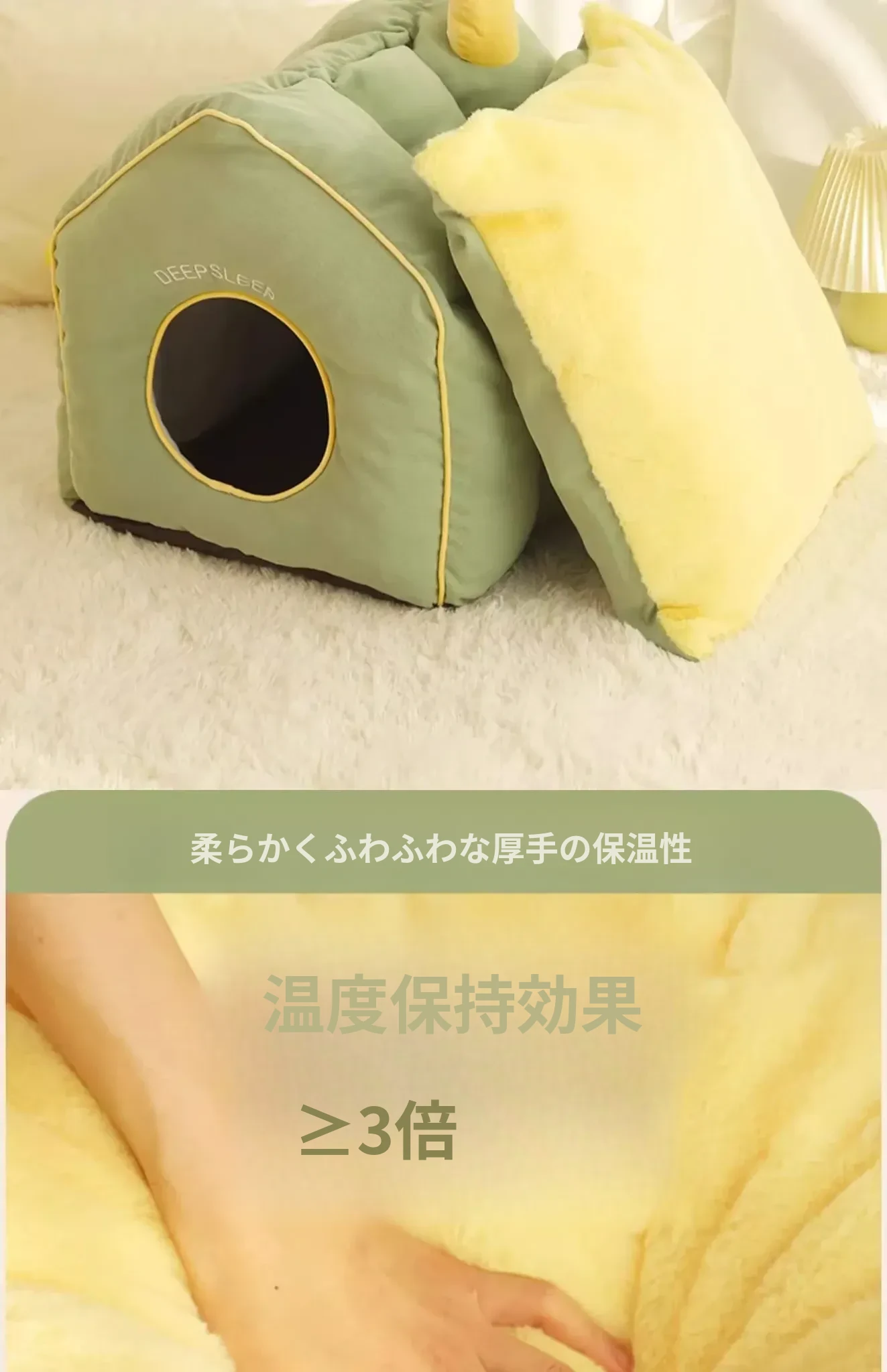 猫用ふかふかハウス(クリームイエロー)【サイズは画像参照 支持棒付き】