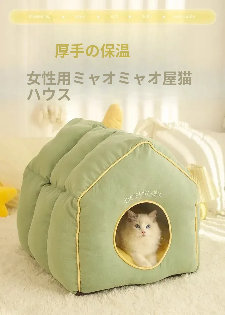 冬の暖かさを保つ!多猫家庭に最適な四季対応の猫ベッド。安心感を与える封閉式デザインで、愛猫を心地よく守ります。