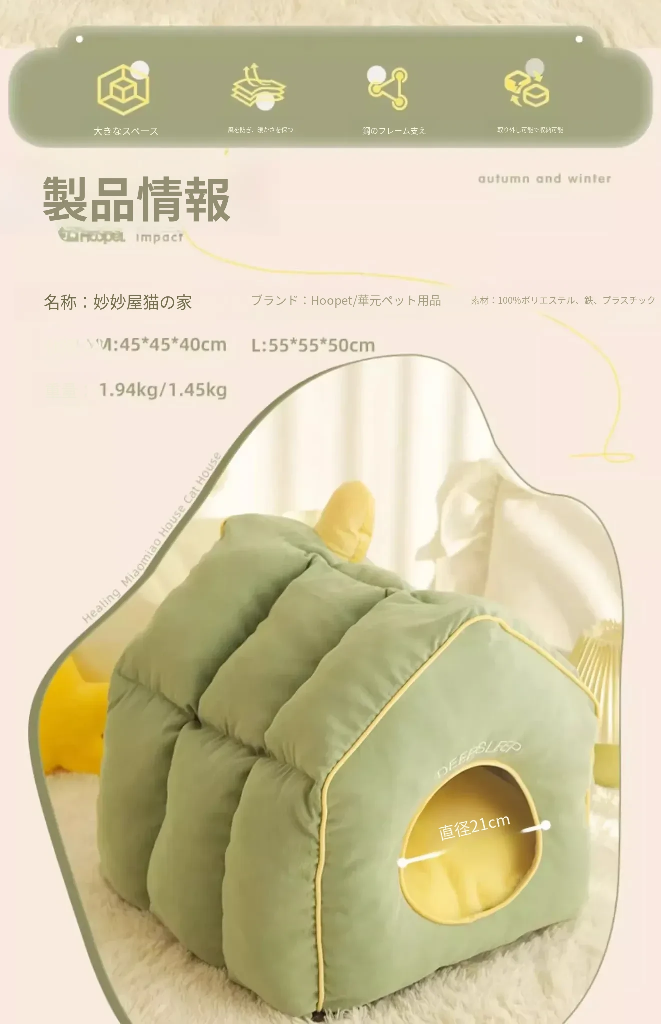 森のミャオミャオハウス猫用ハウス(支持棒なし)