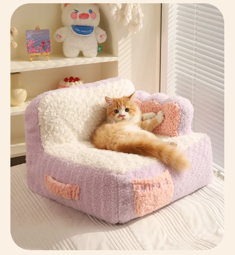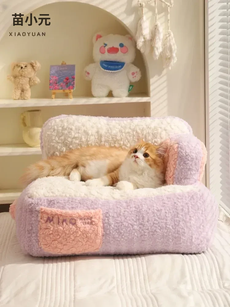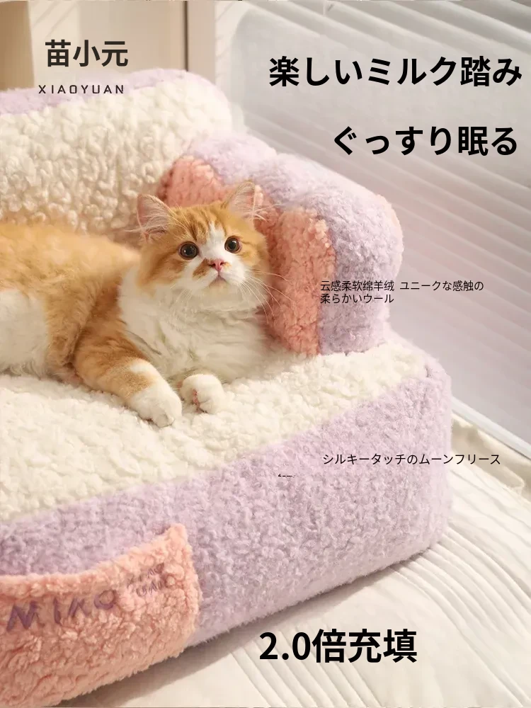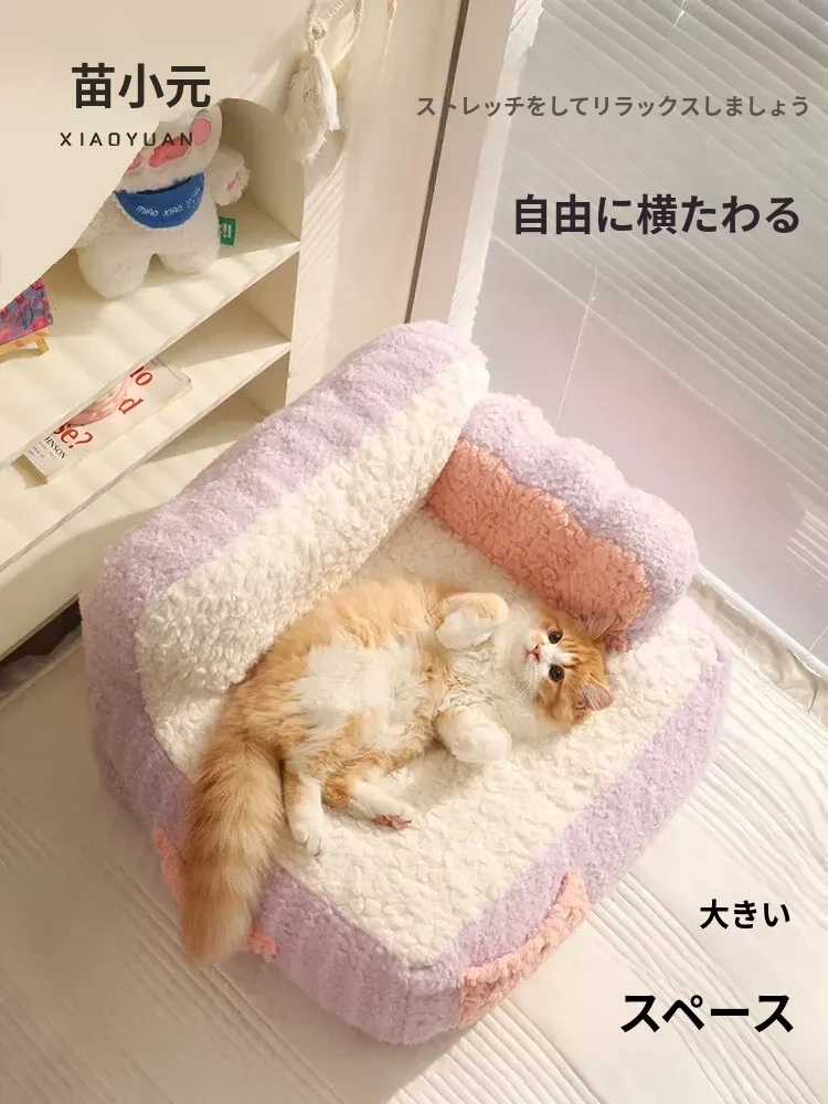 冬の必需品!喵小元の暖かい猫ベッド - 洗えるマット付き!人気のキャットハウスで、愛猫に快適な睡眠空間を提供。寒い季節も安心して過ごせるペットソファ。