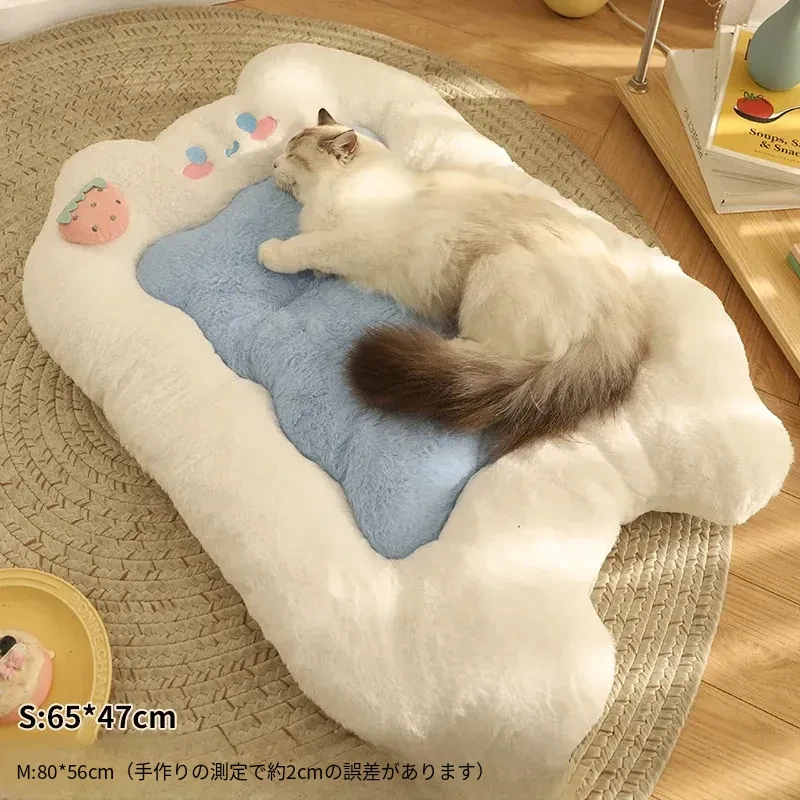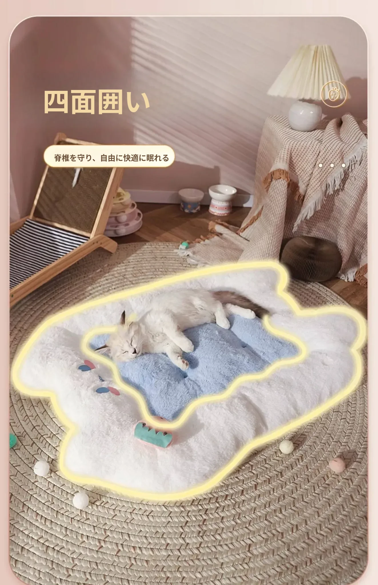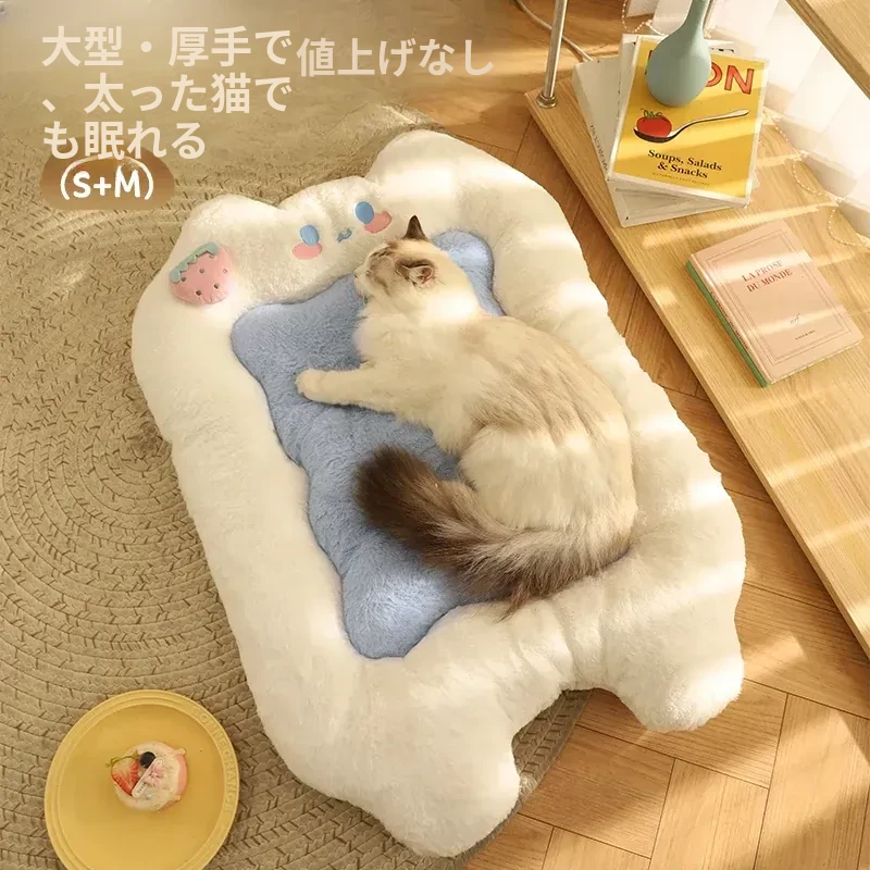 冬の寒さから愛猫を守る!厚手で暖かい四季用キャットベッド - 安心感を与えるふわふわソファ型ペットマットで、快適な眠りを提供します。猫ちゃんが喜ぶ理想的な睡眠空間!