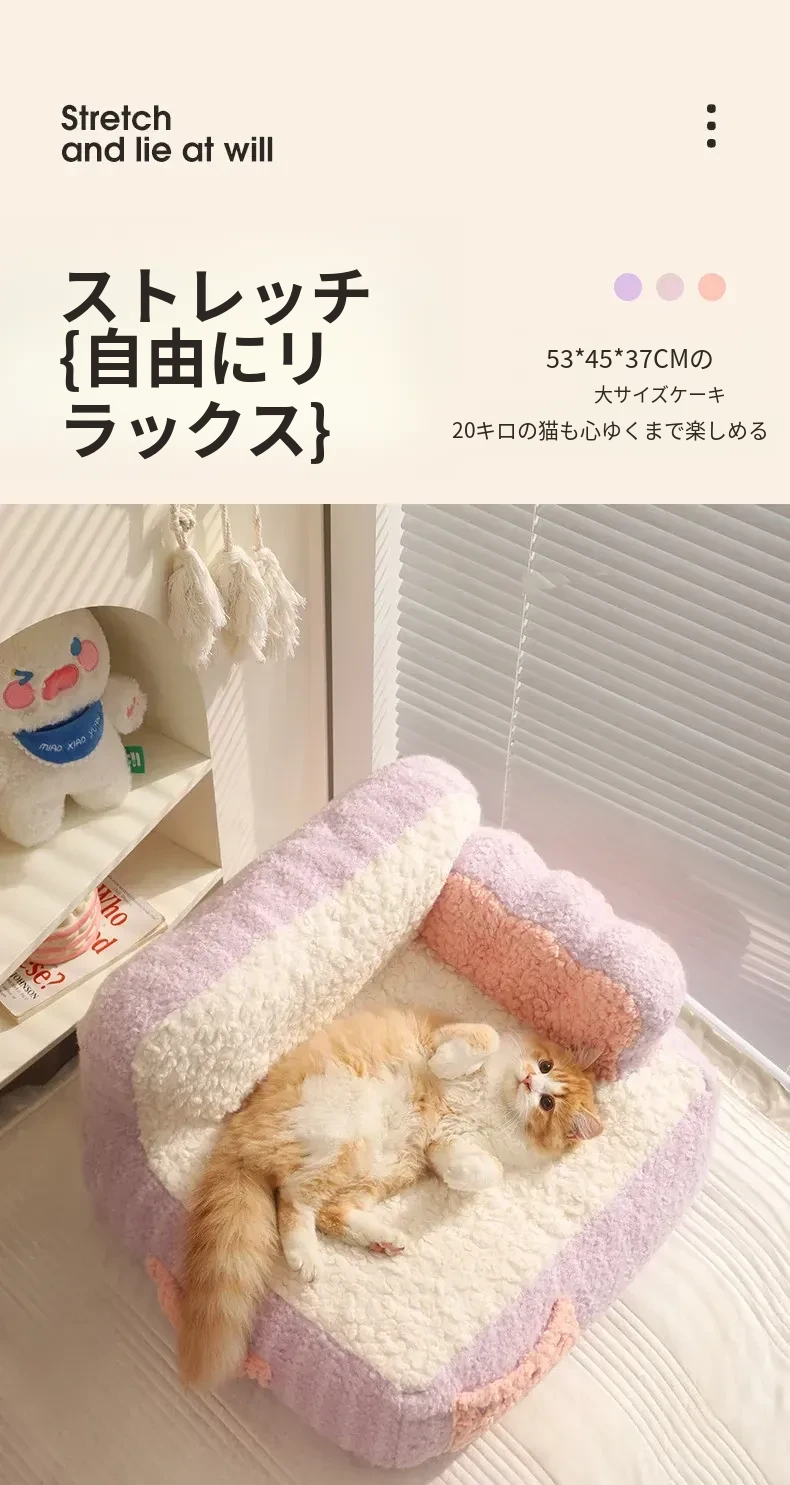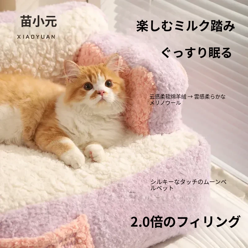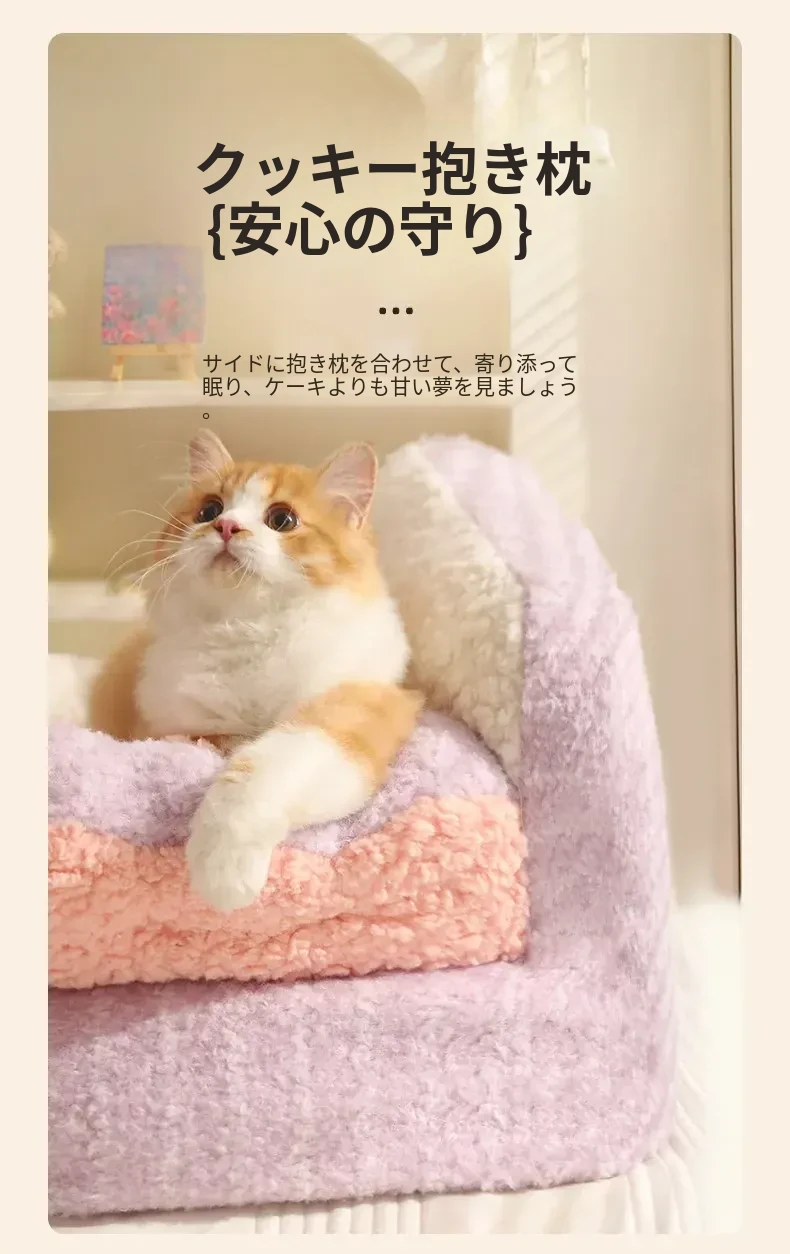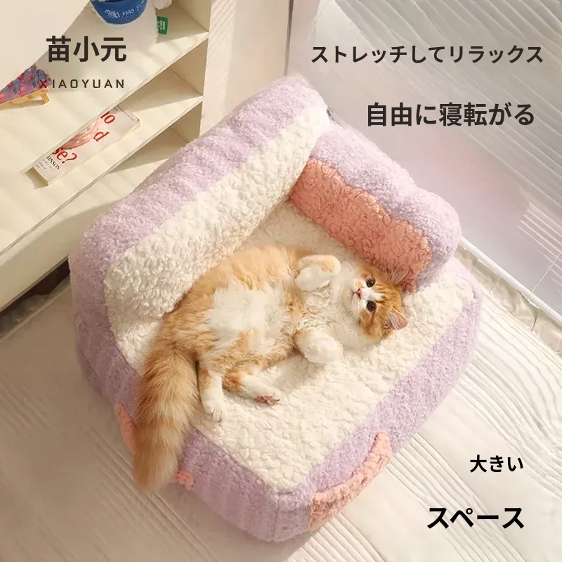 冬にぴったり!喵小元の厚手保温キャットベッド - 半封閉デザインで快適な寝床!洗えるペットソファで、寒い季節も愛猫をしっかり守ります。猫ちゃんのための理想的な冬の隠れ家!