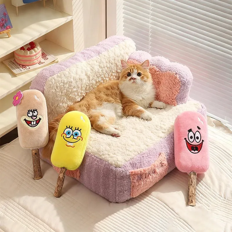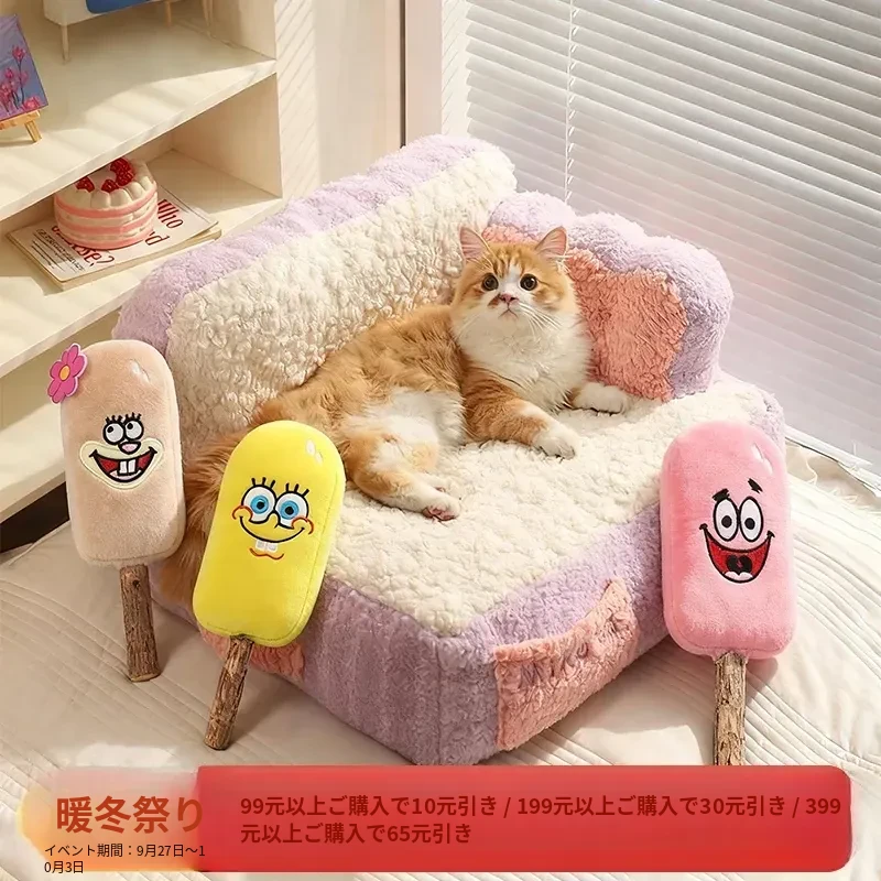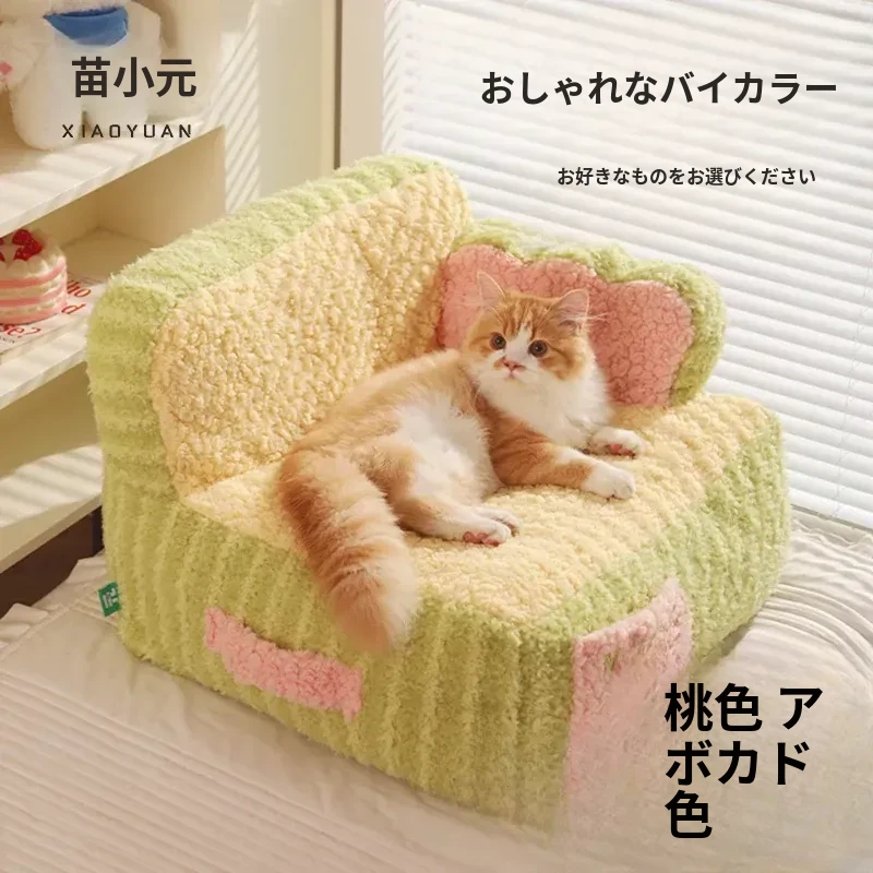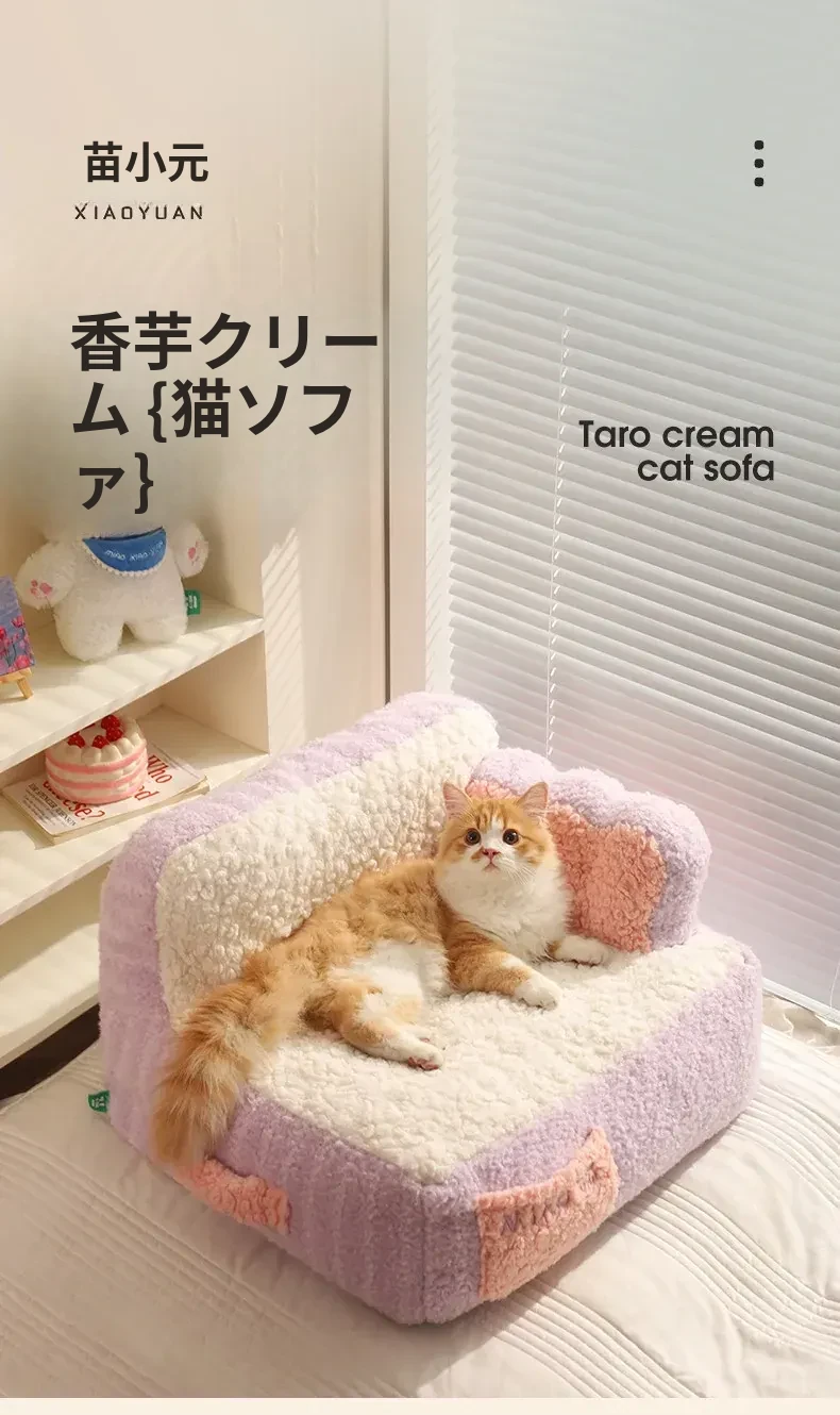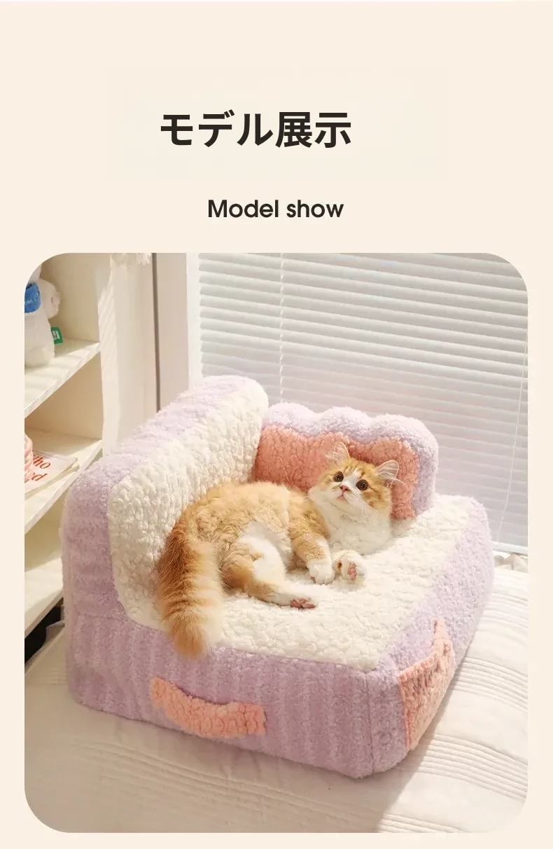 冬にぴったり!喵小元の厚手保温キャットベッド - 半封閉デザインで快適な寝床!洗えるペットソファで、寒い季節も愛猫をしっかり守ります。猫ちゃんのための理想的な冬の隠れ家!