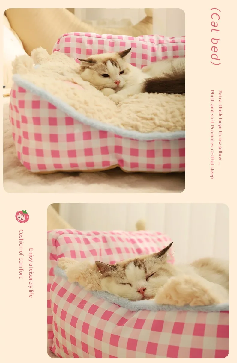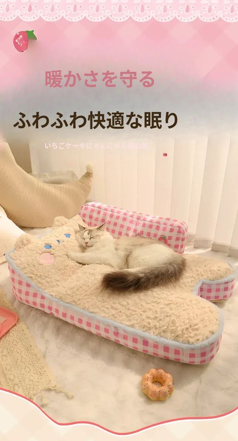 ストロベリーケーキ美人靠保温猫ハウス+毛布*1