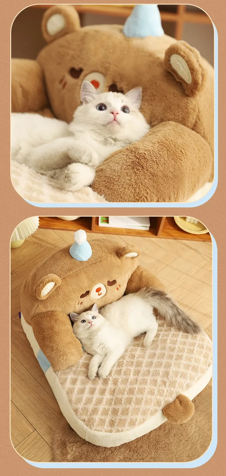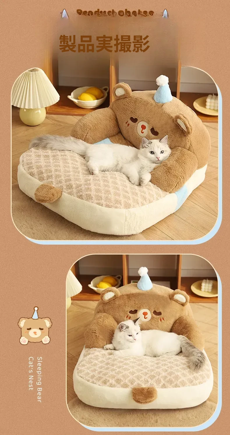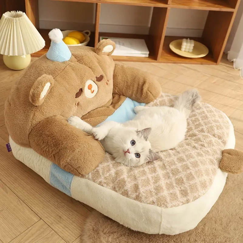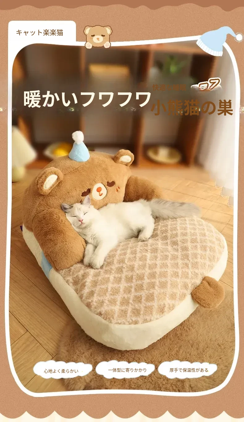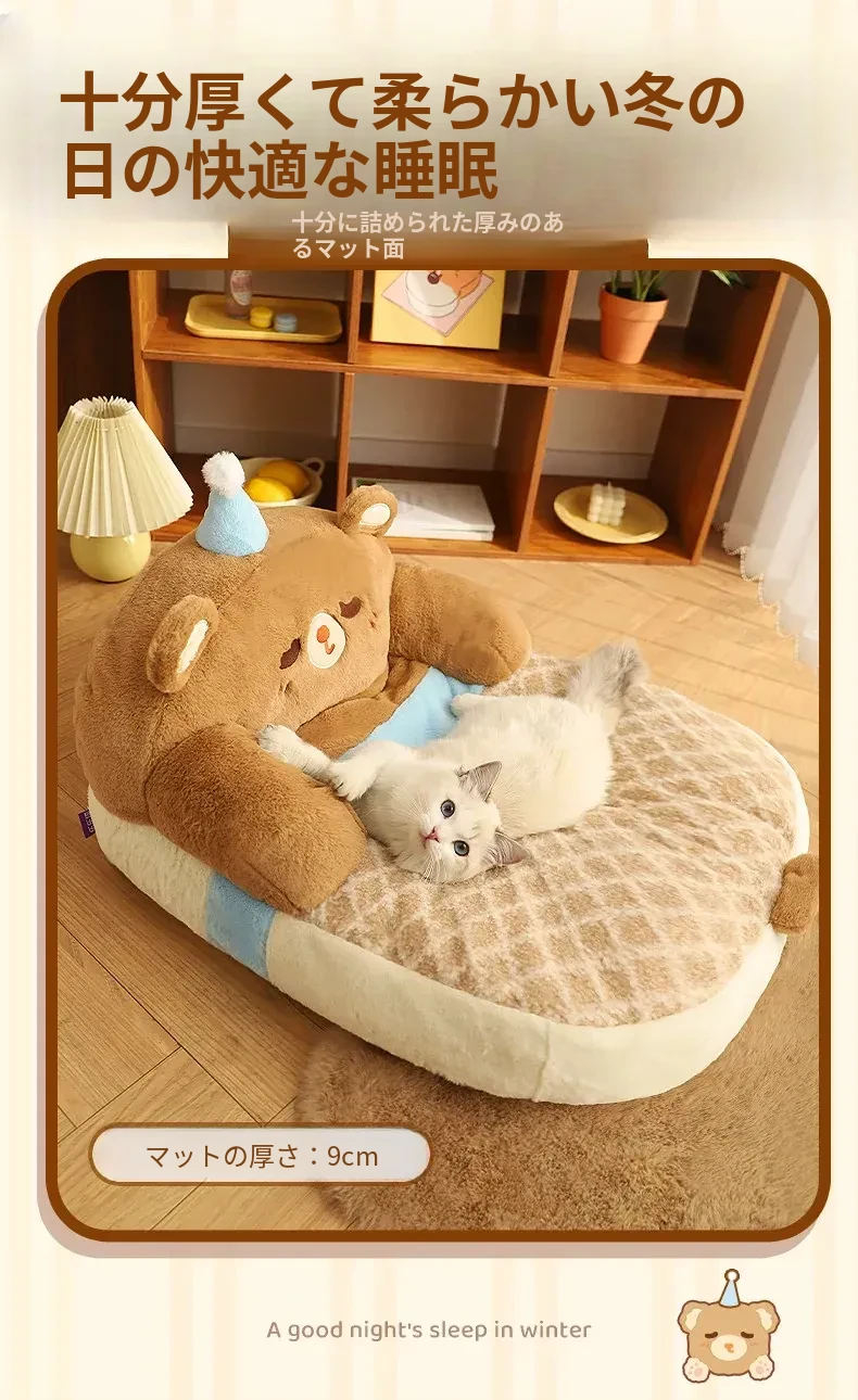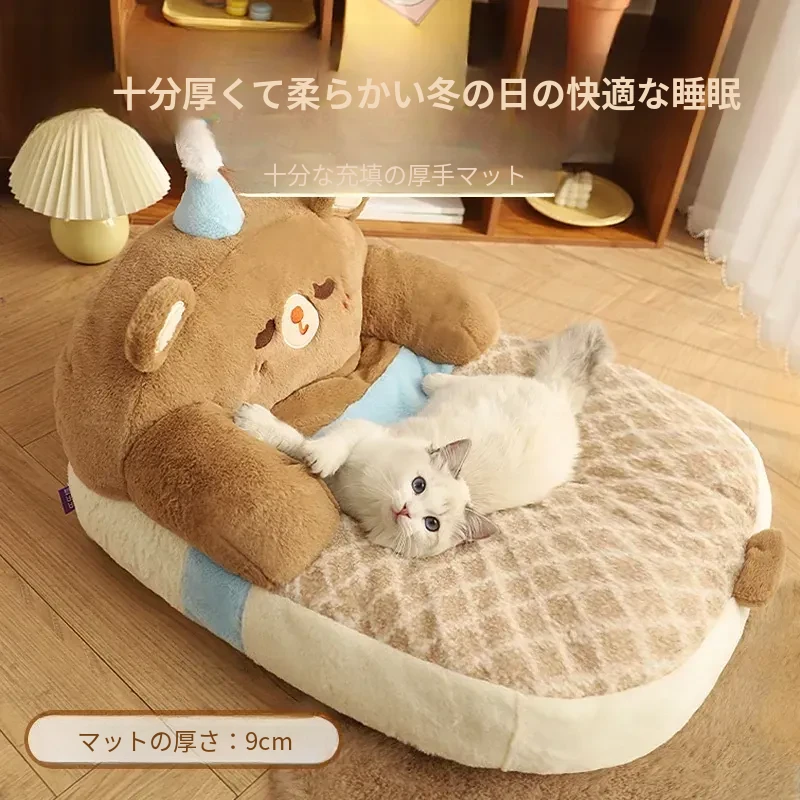 安睡小熊ソファベッド猫ハウス+毛布*1