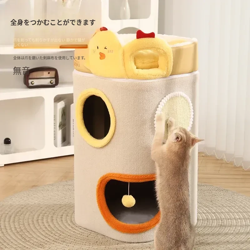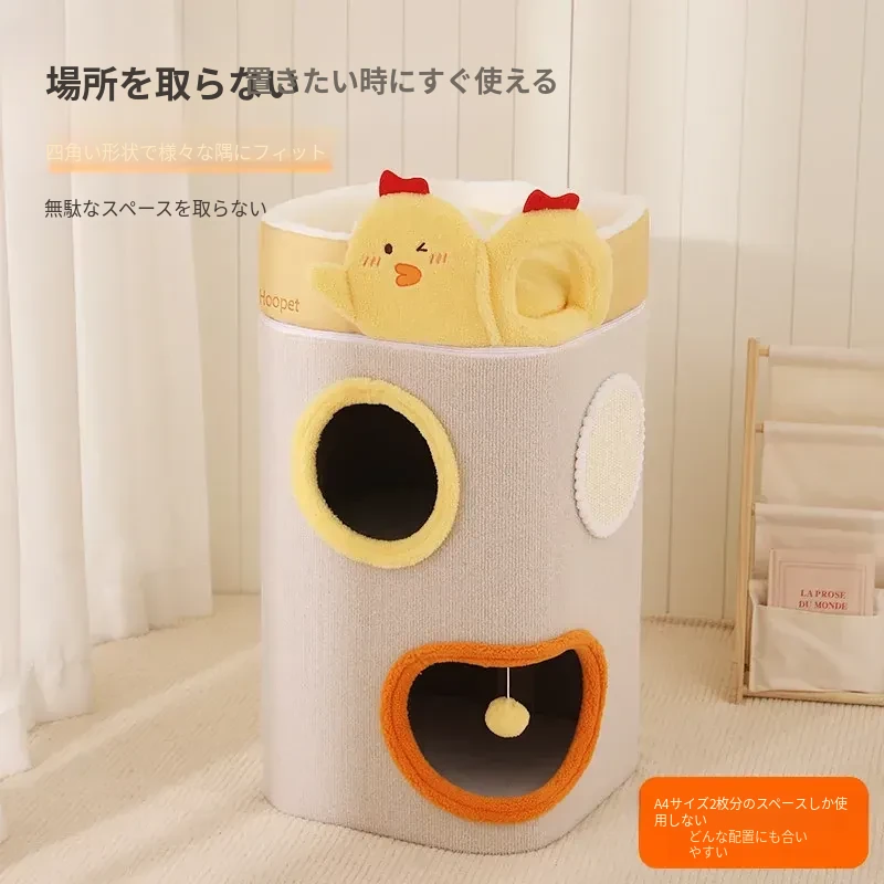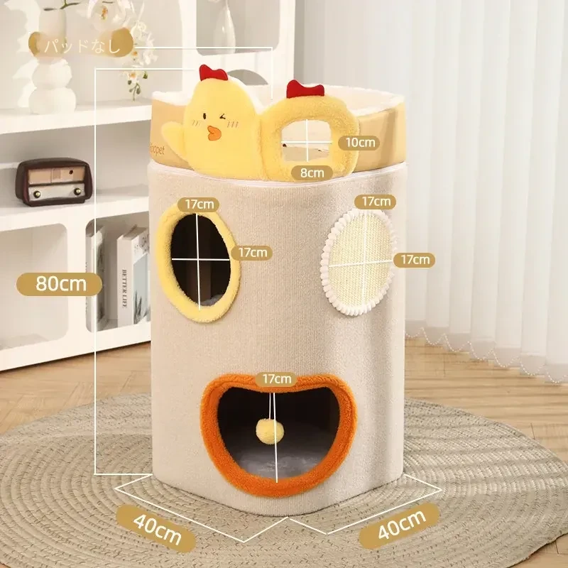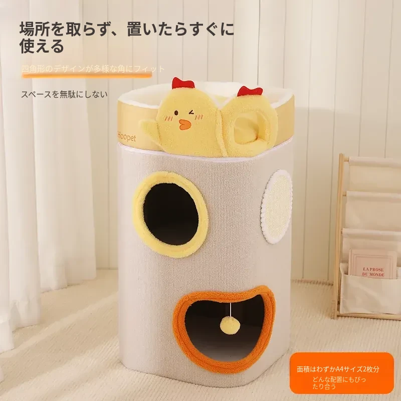 冬にぴったりの厚手閉鎖型キャットハウス!多層構造で暖かく、爪とぎもできるキャットタワー。上下2段のデザインで、猫ちゃんが遊びながらくつろげる新しいお家です。寒い季節も安心して過ごせる快適空間を提供します!