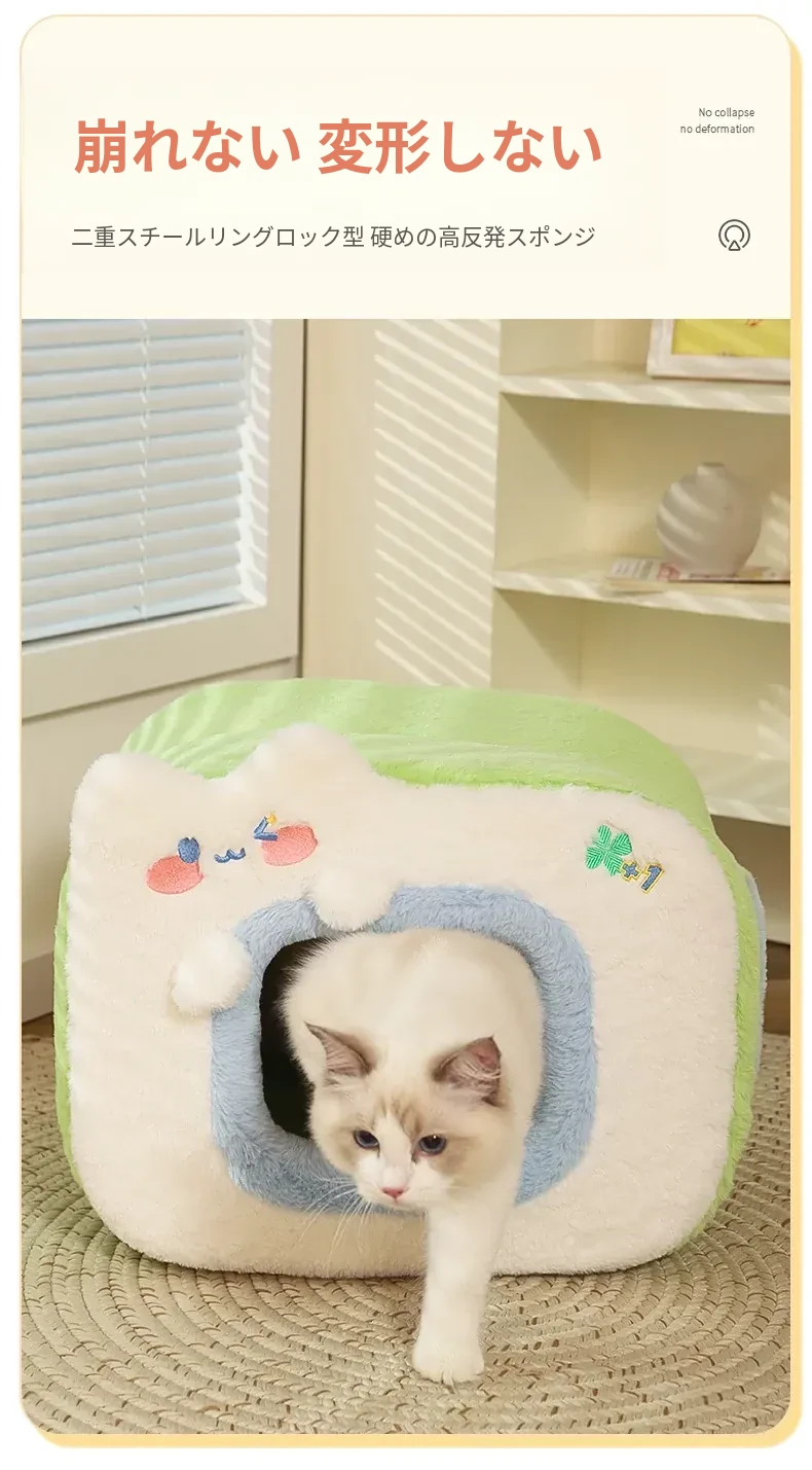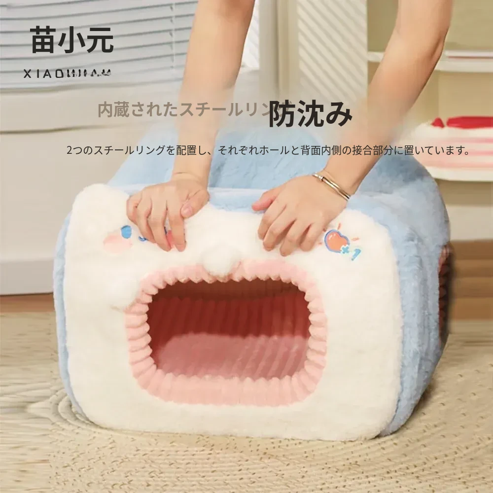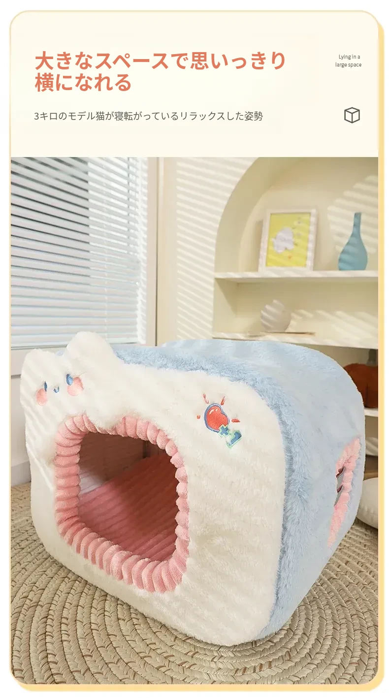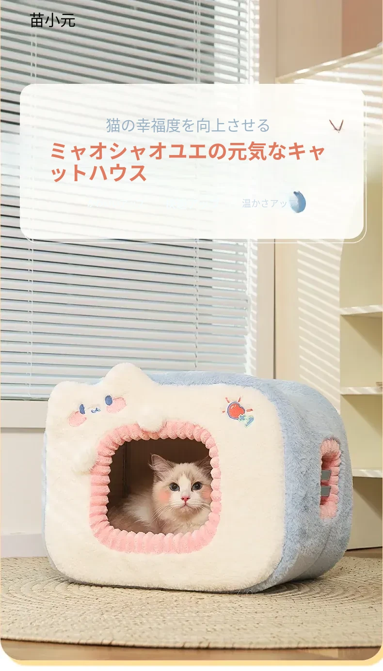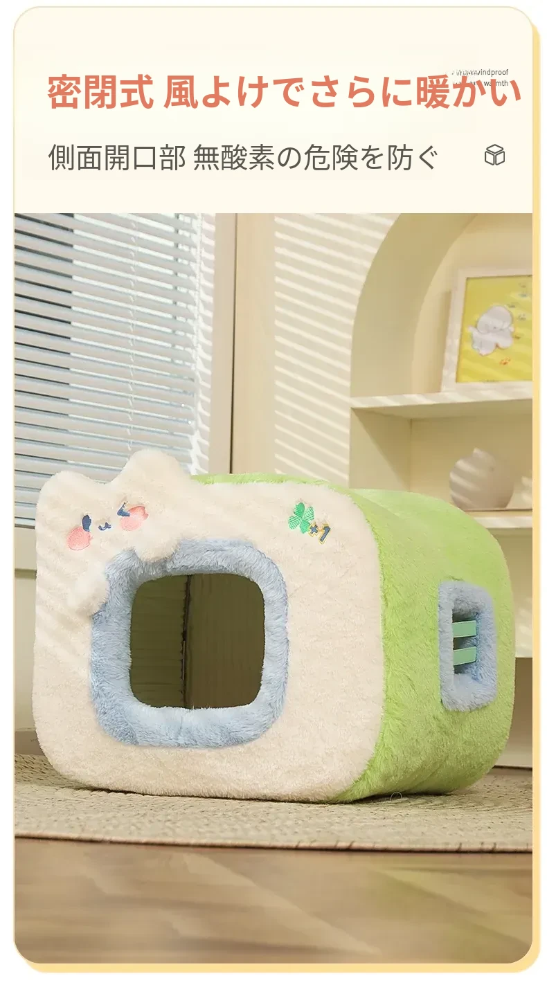 みゃお小元のエネルギー満点な冬用猫ハウス!四季兼用の快適なペット用キャットハウス、寒い冬も暖かく過ごせる封閉式デザイン!子猫も安心してくつろげる理想の空間です。