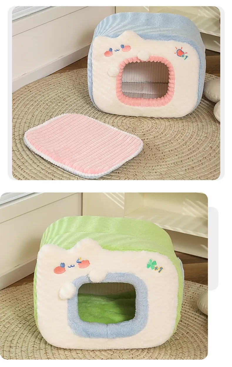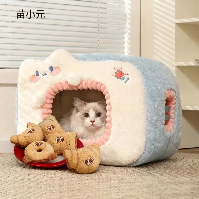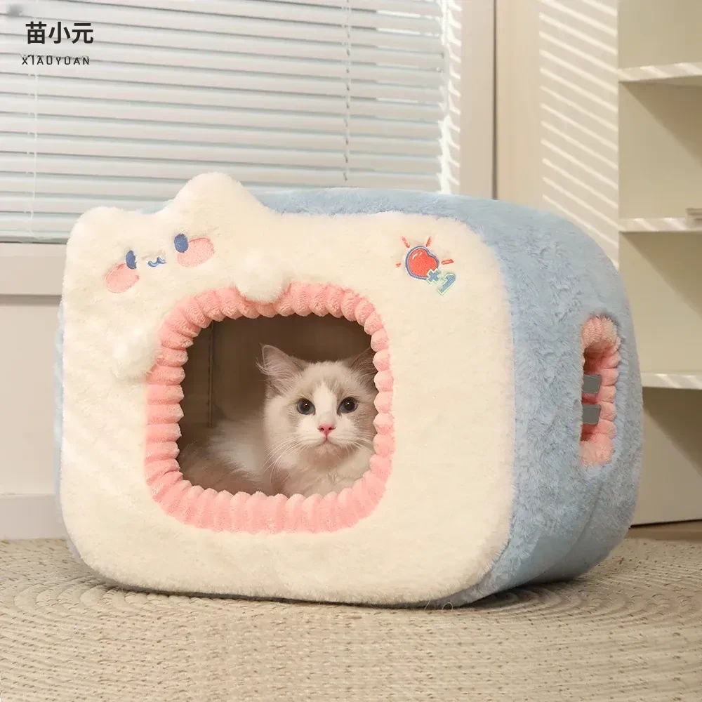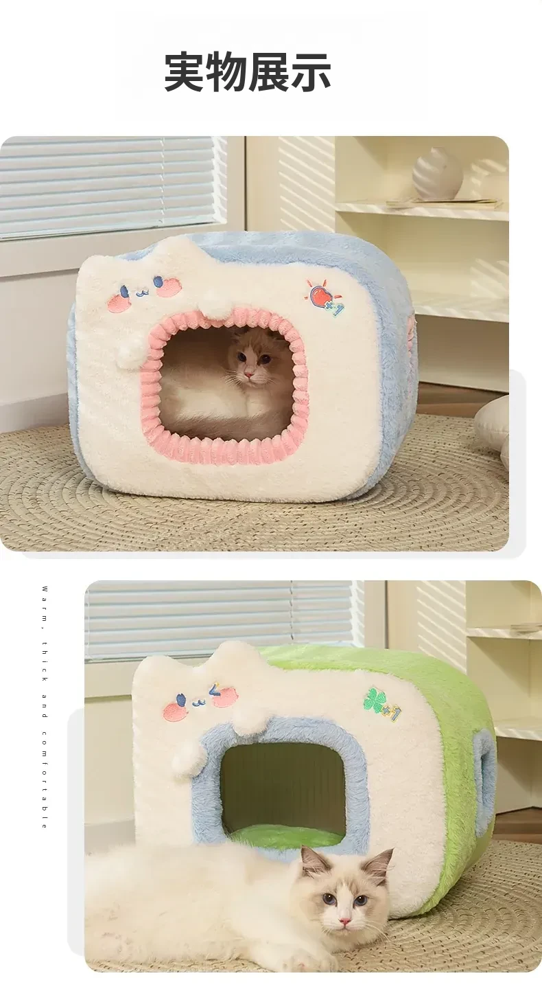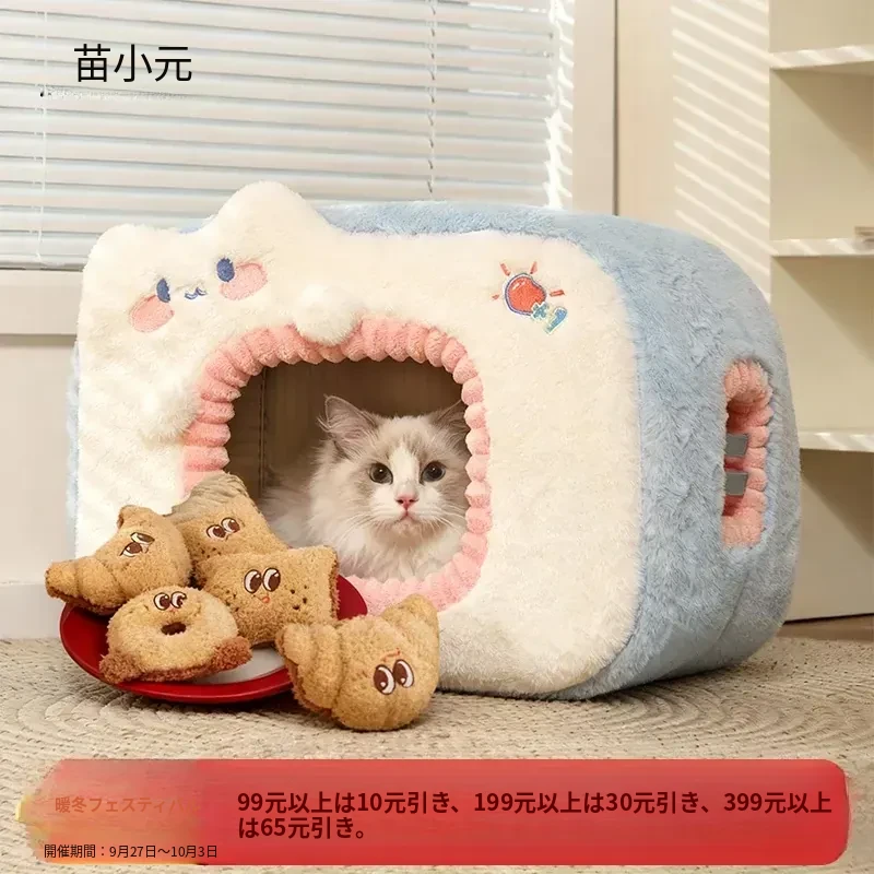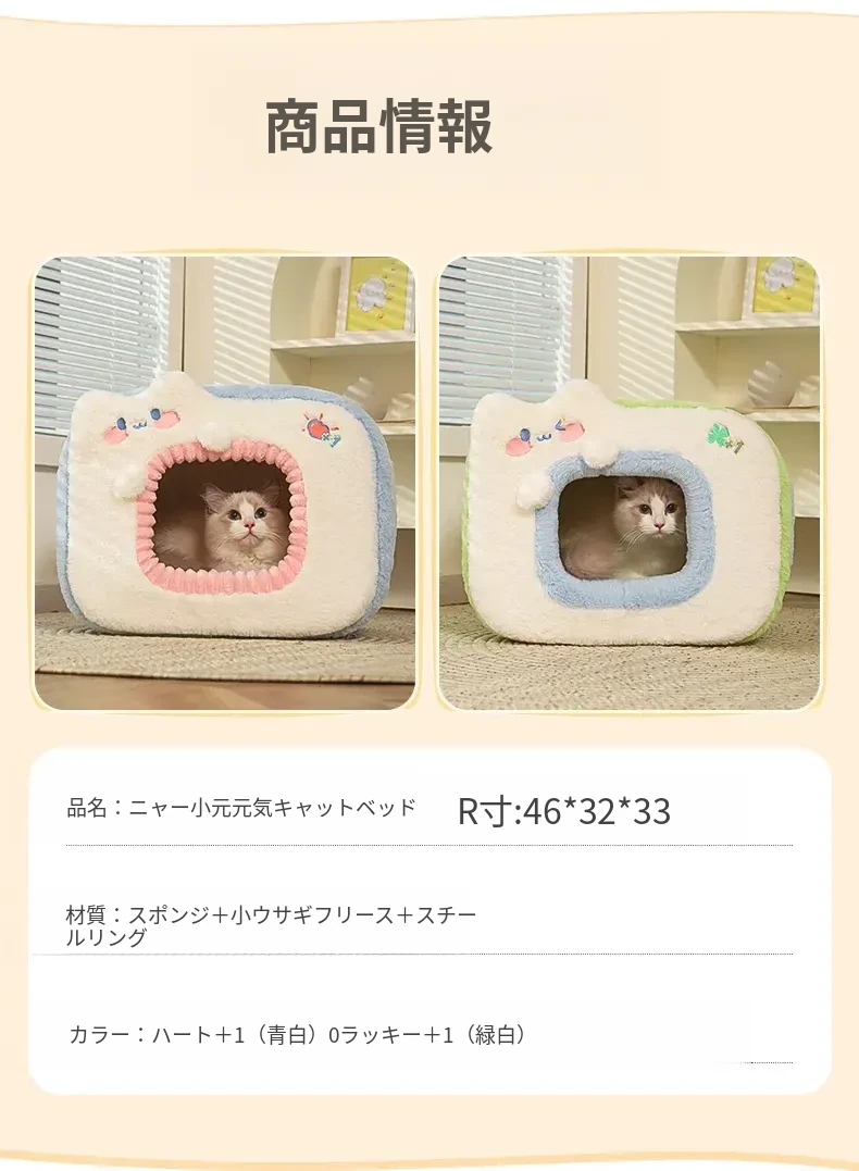 みゃお小元のエネルギー満点な冬用猫ハウス!四季兼用の快適なペット用キャットハウス、寒い冬も暖かく過ごせる封閉式デザイン!子猫も安心してくつろげる理想の空間です。