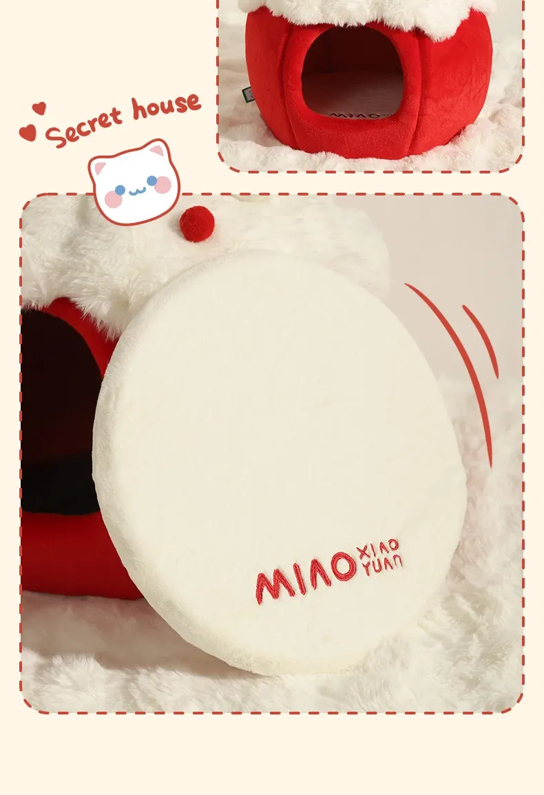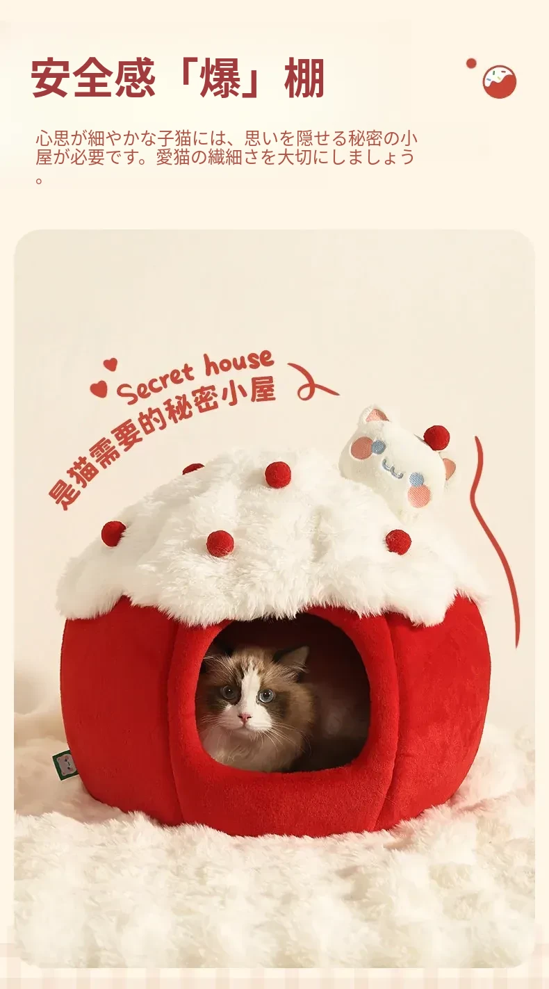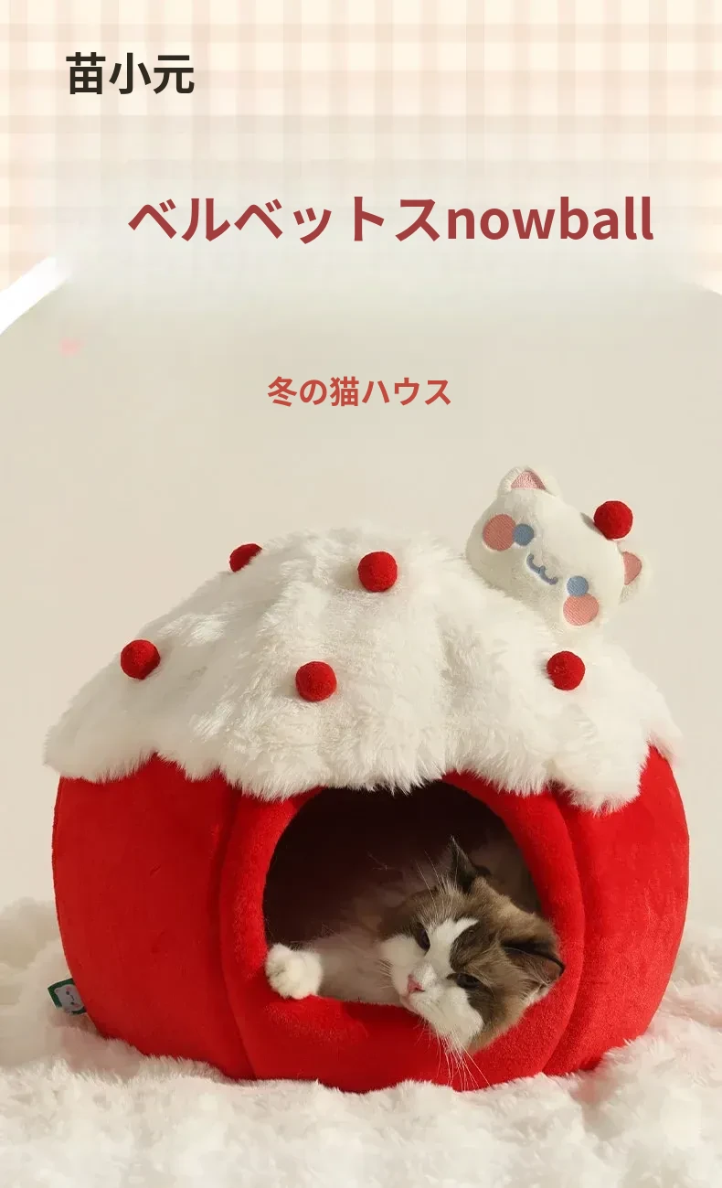 冬の暖かさを提供!喵小元キャットテント - 大型猫にも最適な封閉式デザイン、ペット用マット付き。寒い季節に愛猫に安心感を!