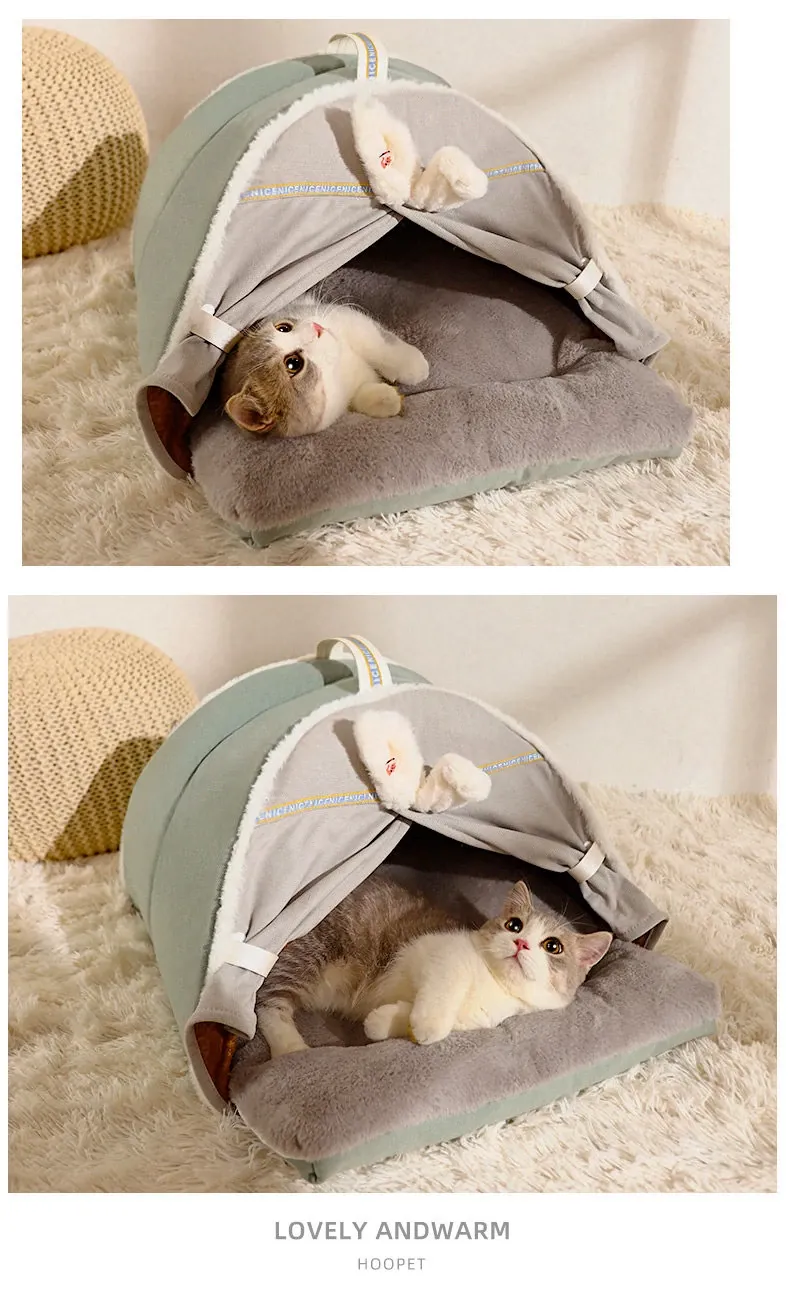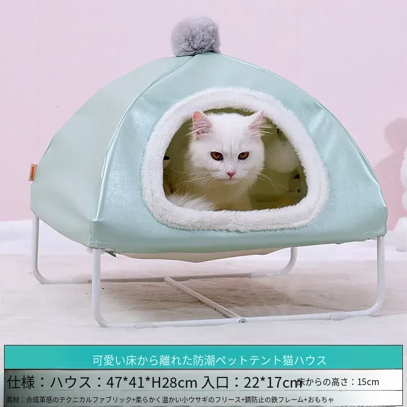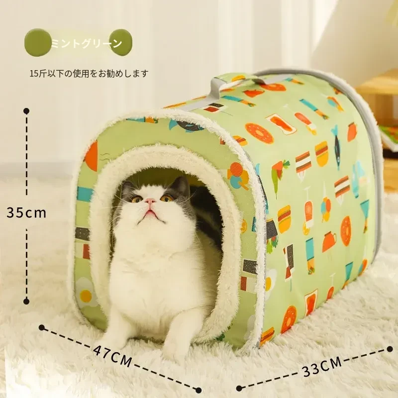 ペット用フリース付きテント型キャットハウス(ミントグリーン)