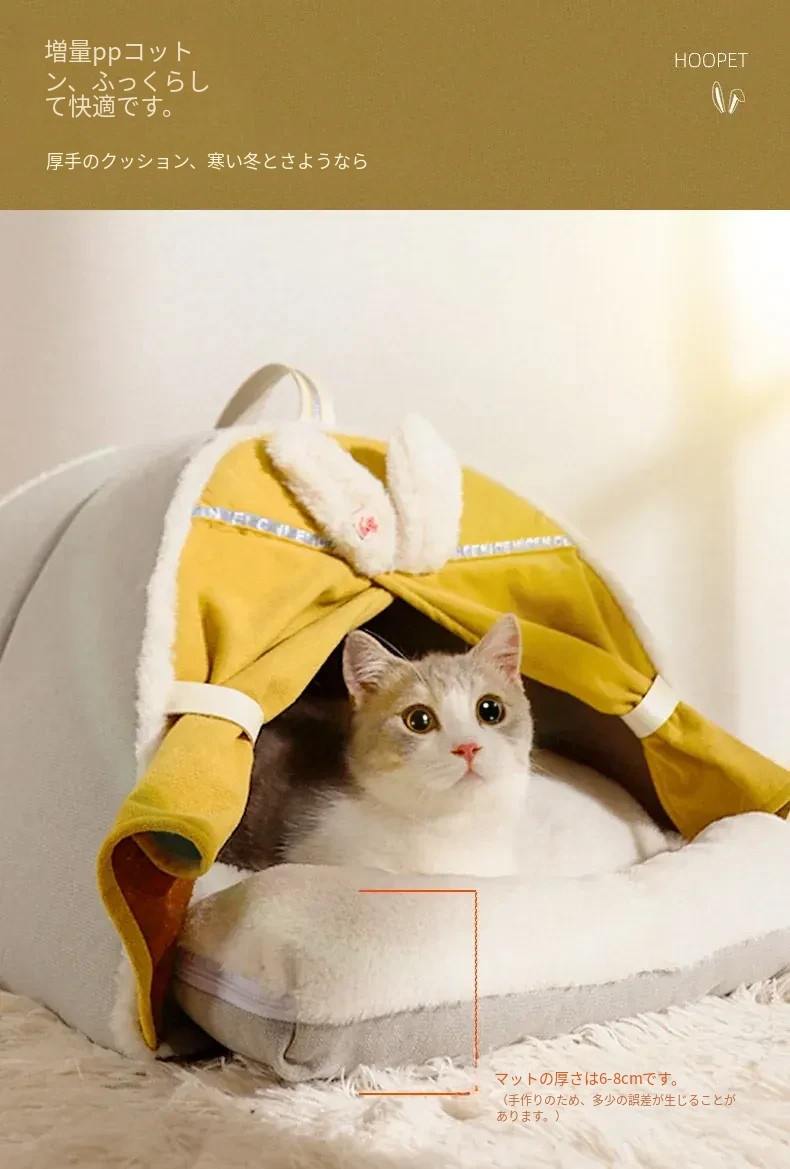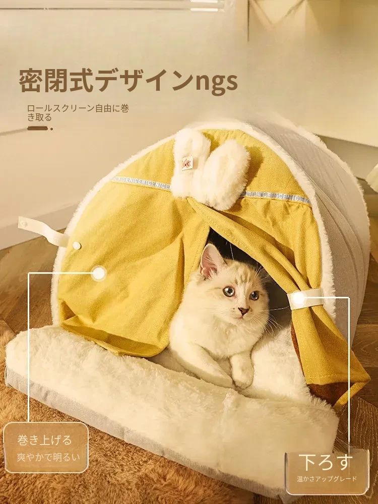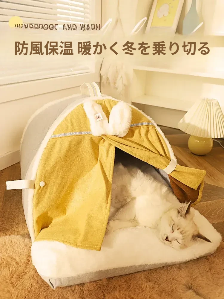 冬の寒さから守る!猫用暖かい寝袋とテント—愛猫のための快適な隠れ家、ペット用ドッグハウスにも最適な冬季封閉式猫ルーム!