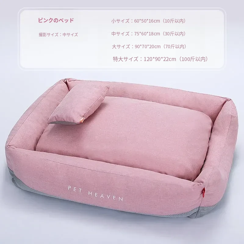 【四季通用】犬用ベッドソファ - ピンクグレー
