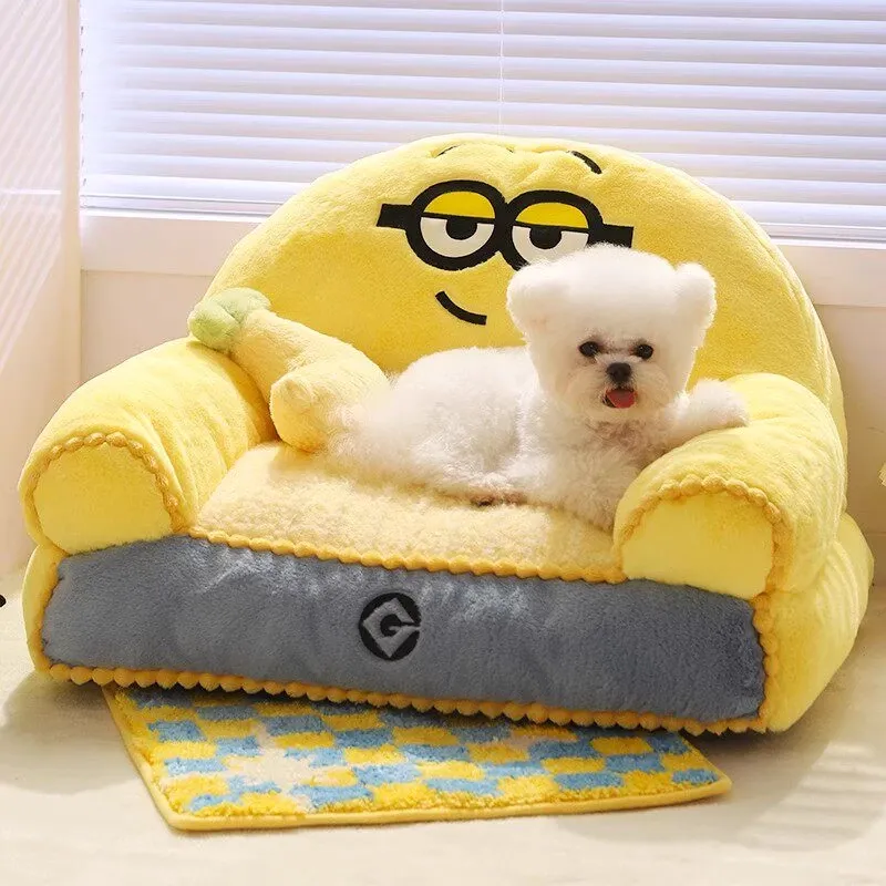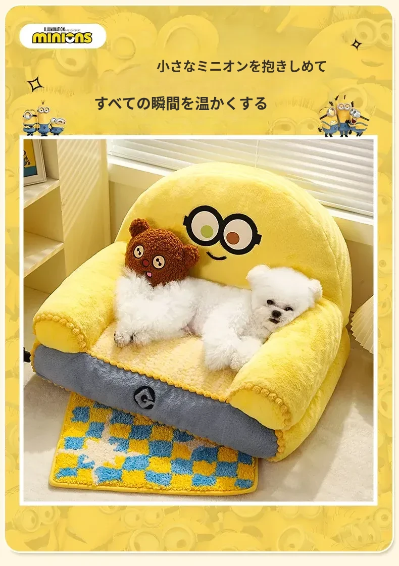 冬の小黄人ペットベッド|厚手で暖かい犬用寝床|オールシーズン対応・洗濯可能|小型犬に最適な快適な寝場所!