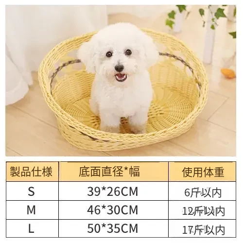 ナチュラルカラー-透かし藤編みペットハウス(通気性抜群・四季用)